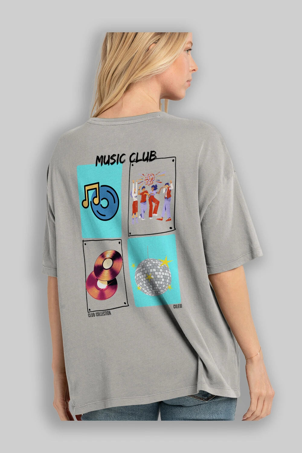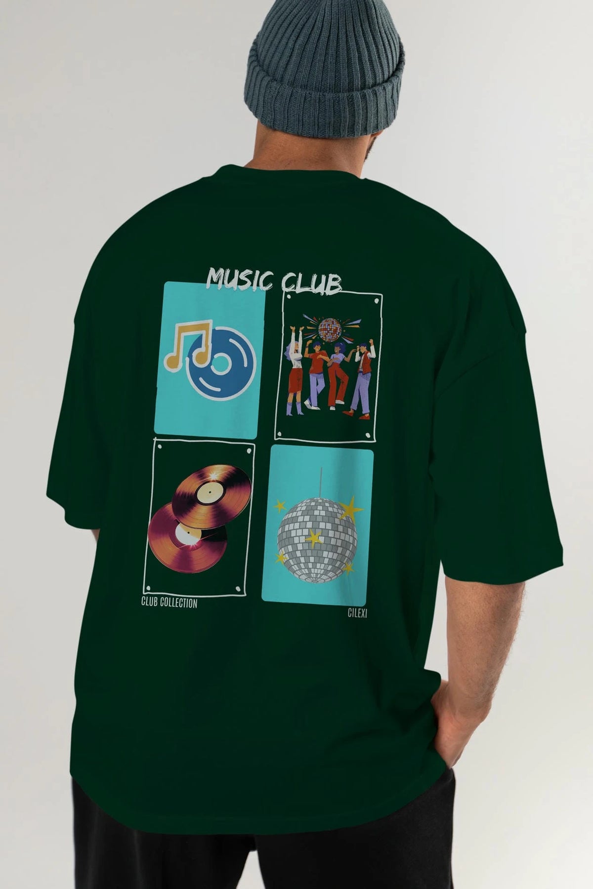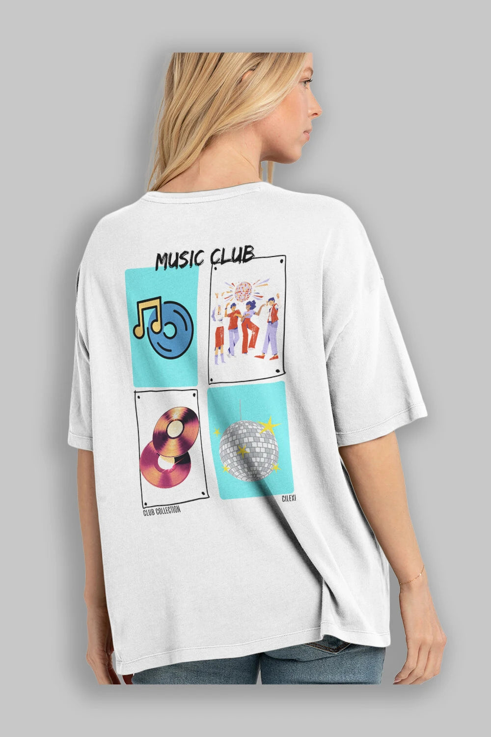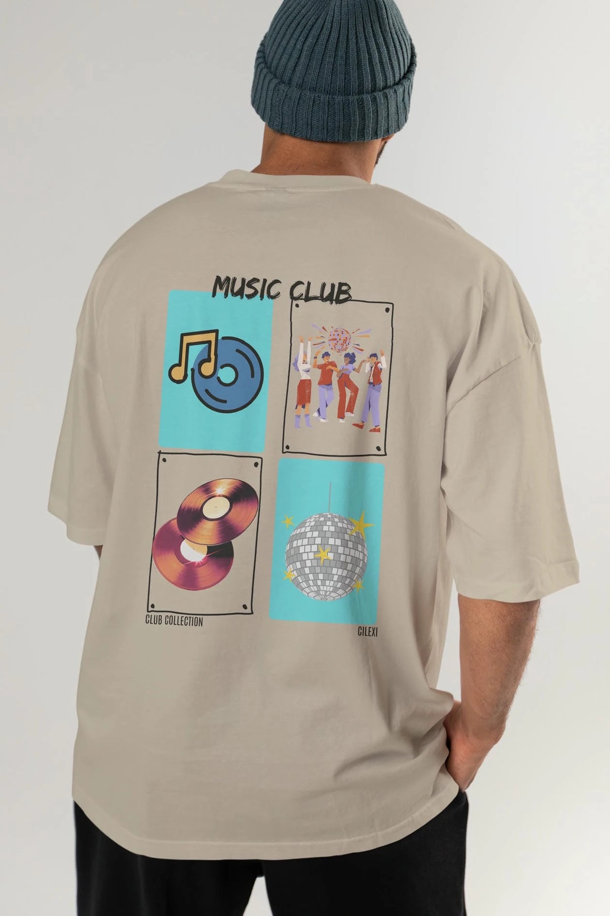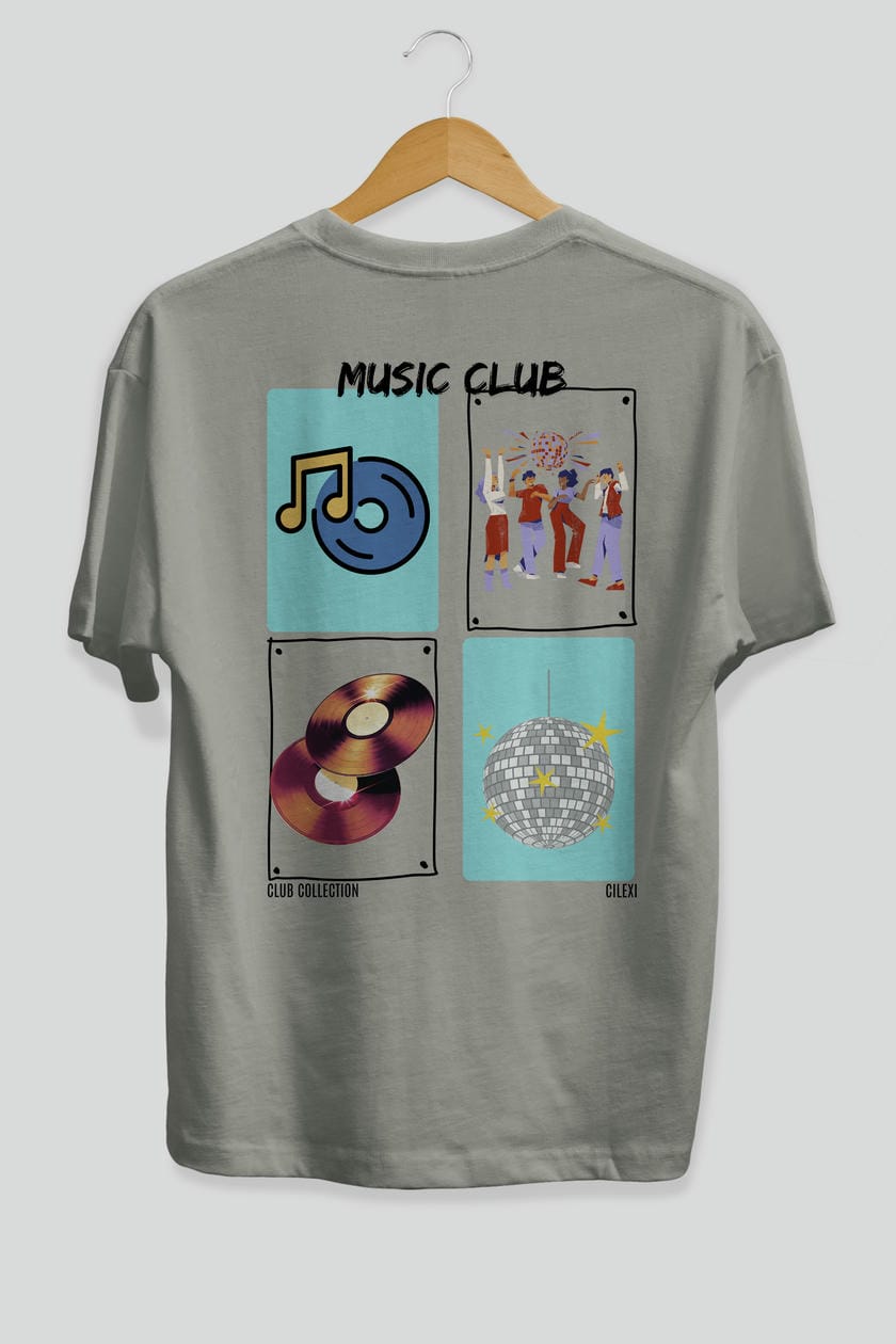 Music Club Arka Baskılı Oversize t-shirt Erkek Kadın %100 Pamuk Bisiklet Yaka tişort