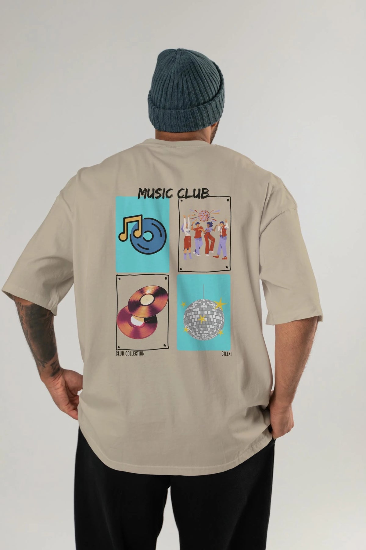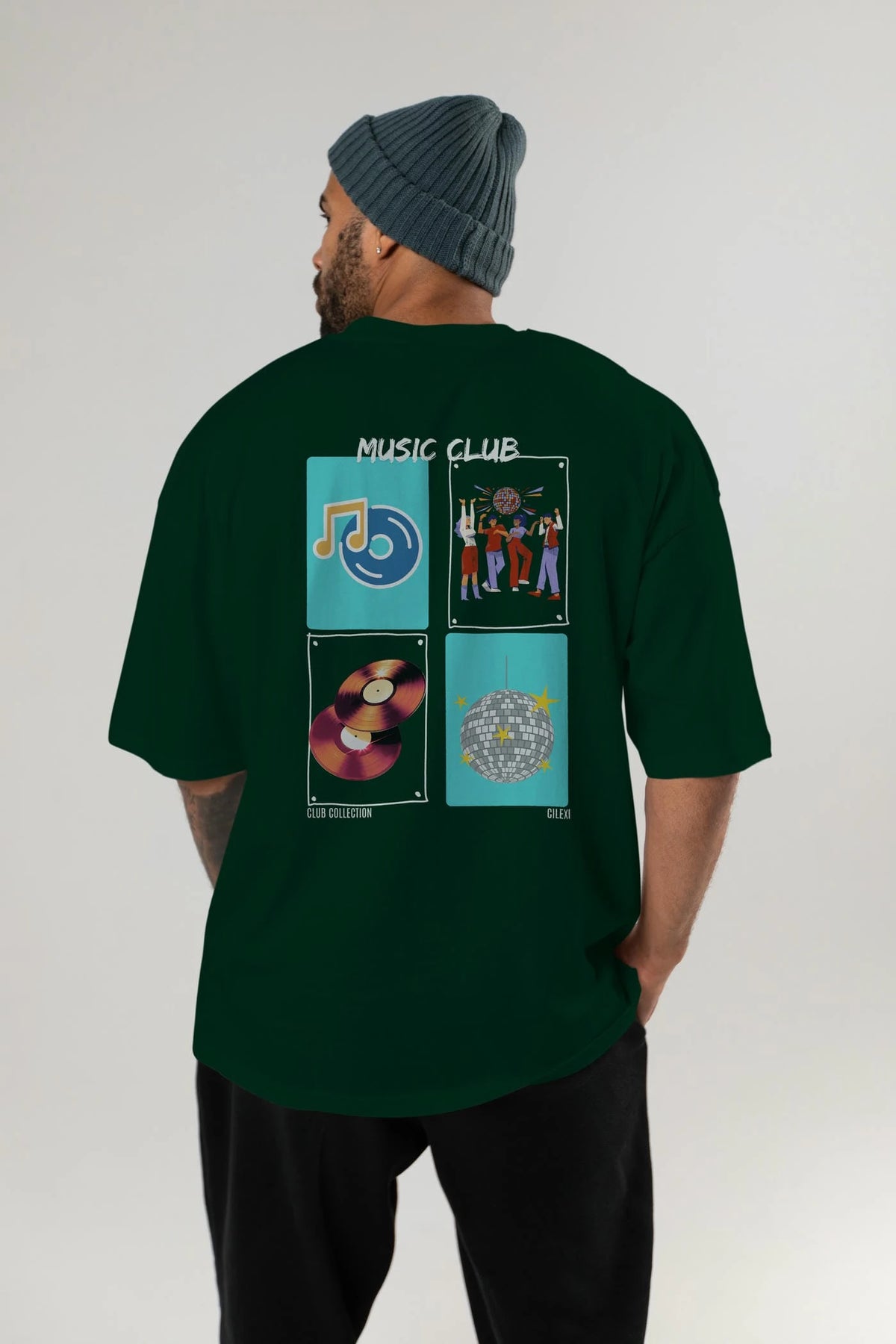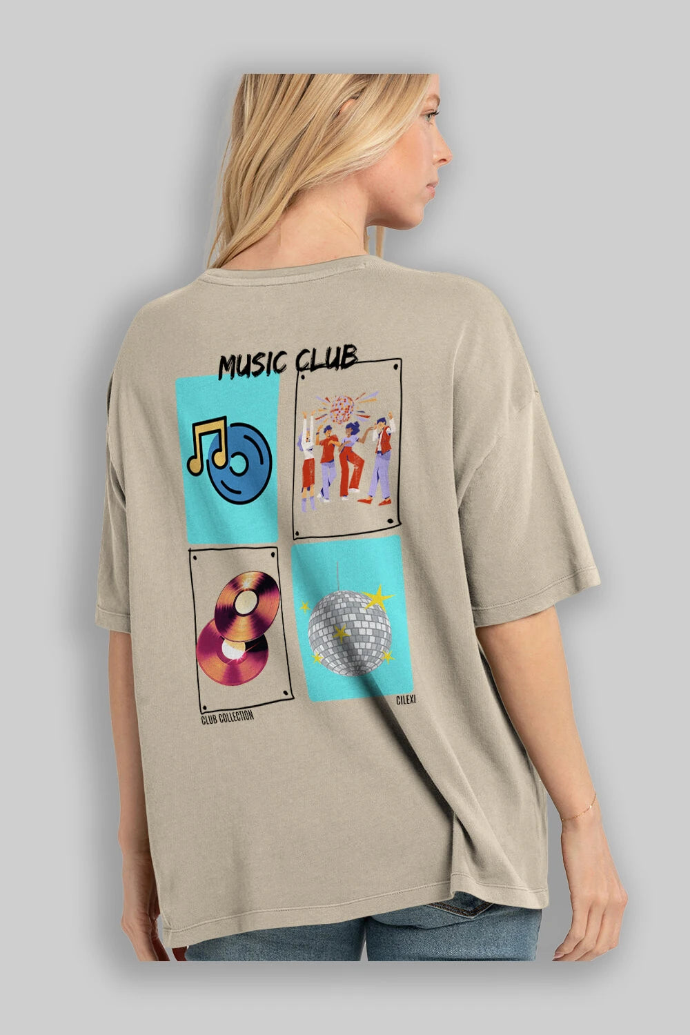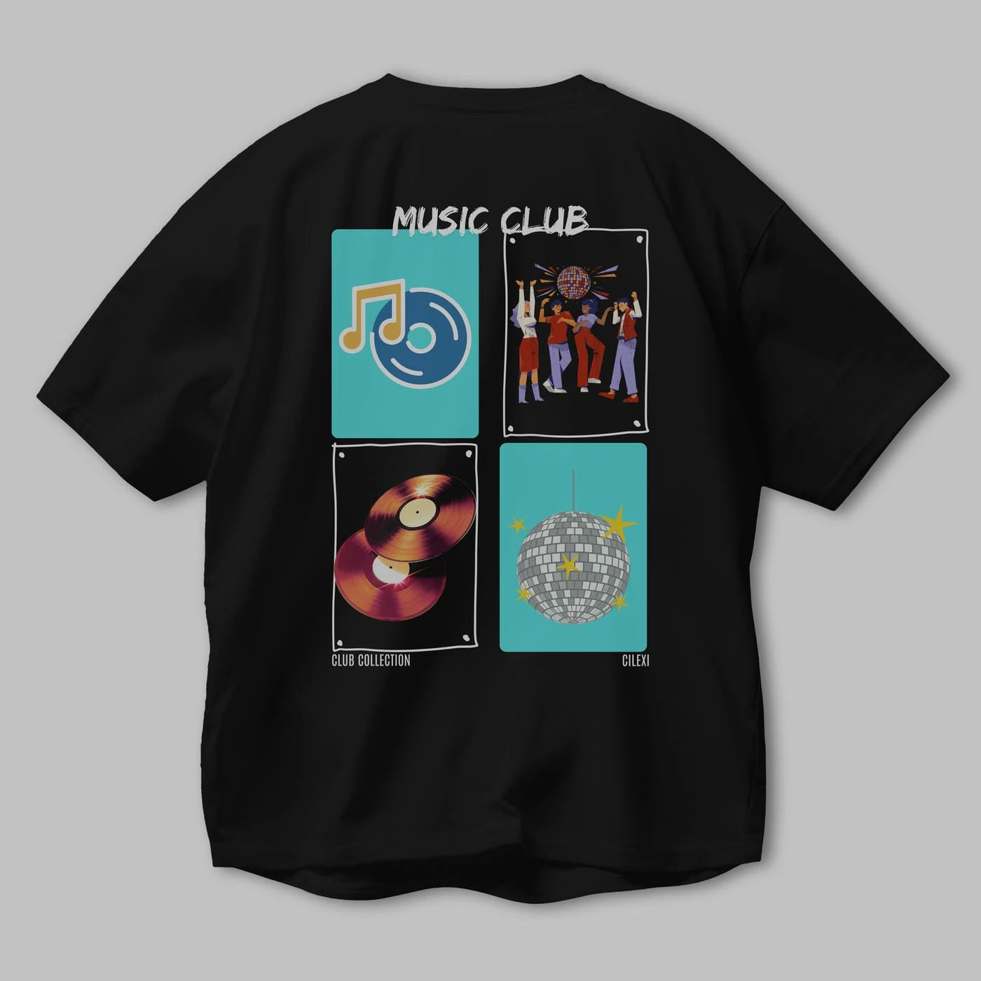 Music Club Arka Baskılı Oversize t-shirt Erkek Kadın %100 Pamuk Bisiklet Yaka tişort