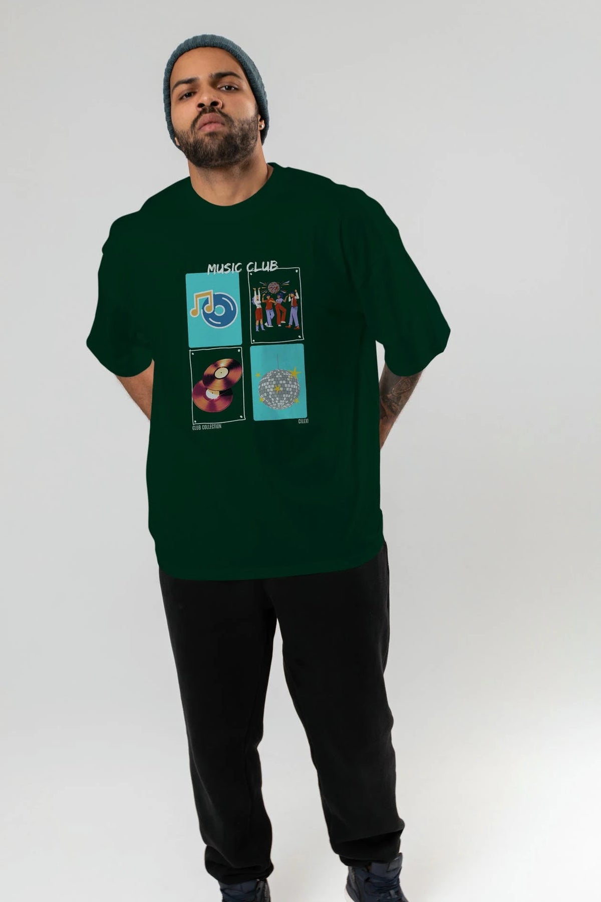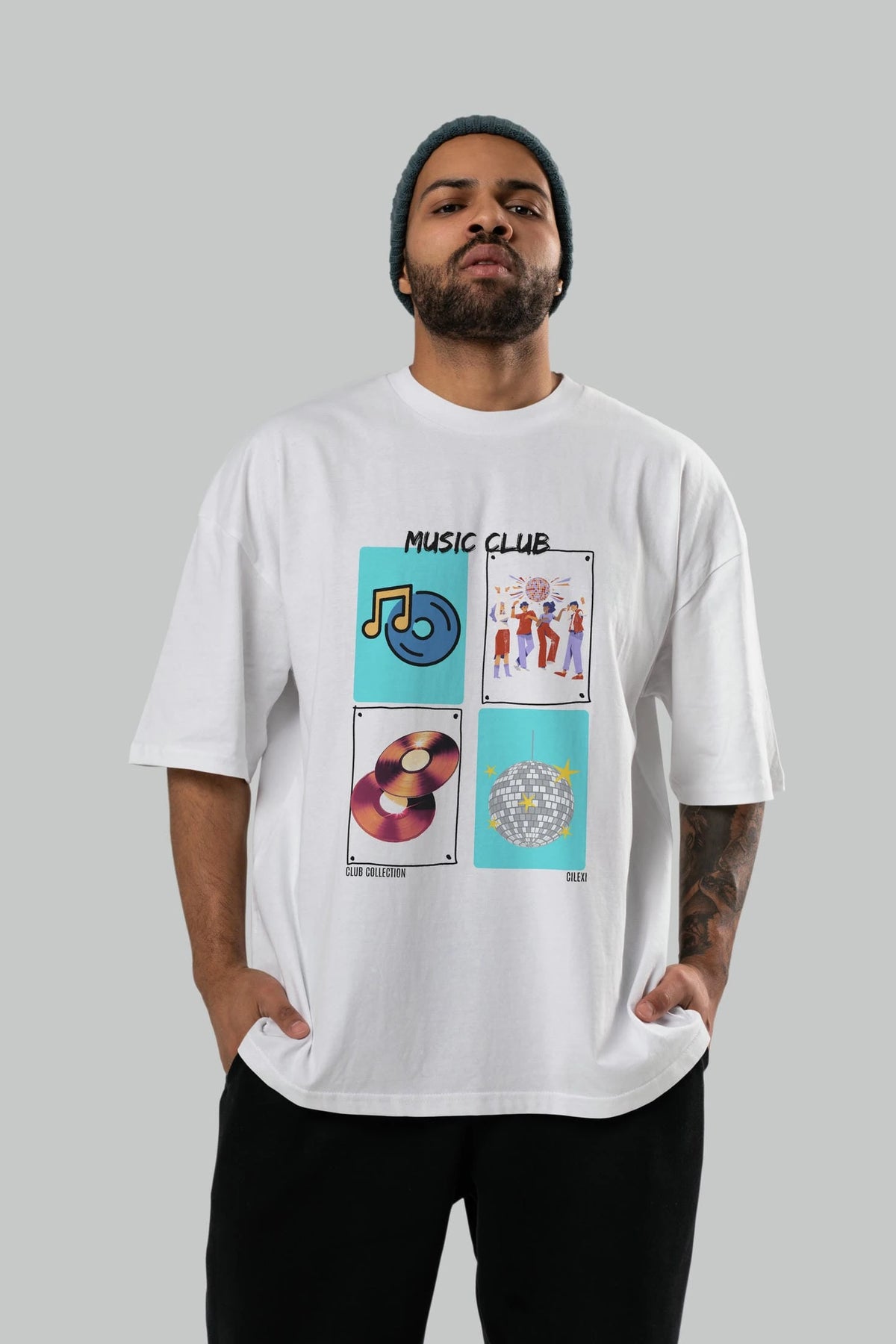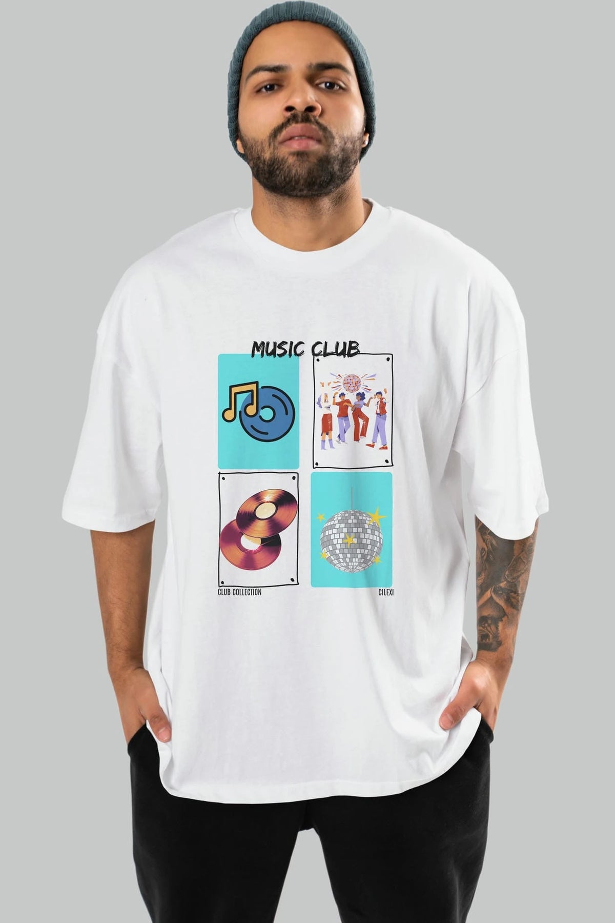 Music Club ön Baskılı Oversize t-shirt Erkek Kadın %100 Pamuk Bisiklet Yaka tişort