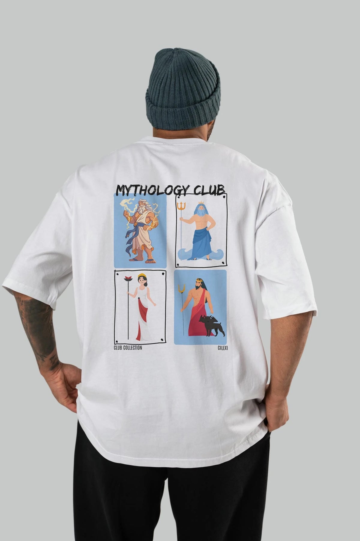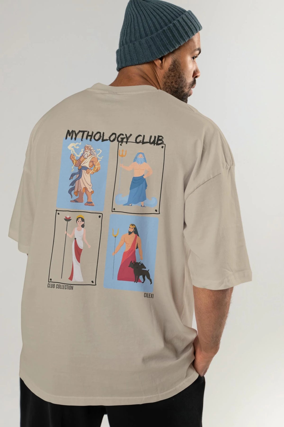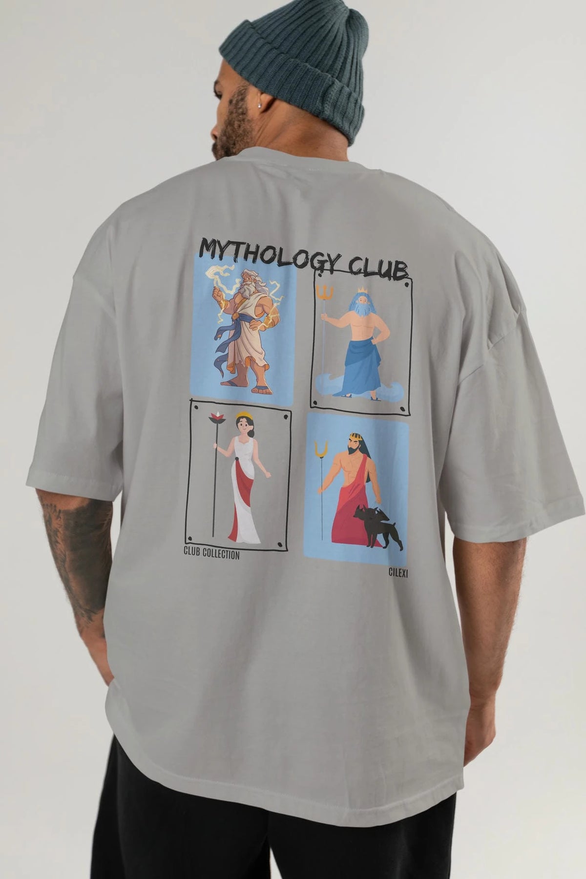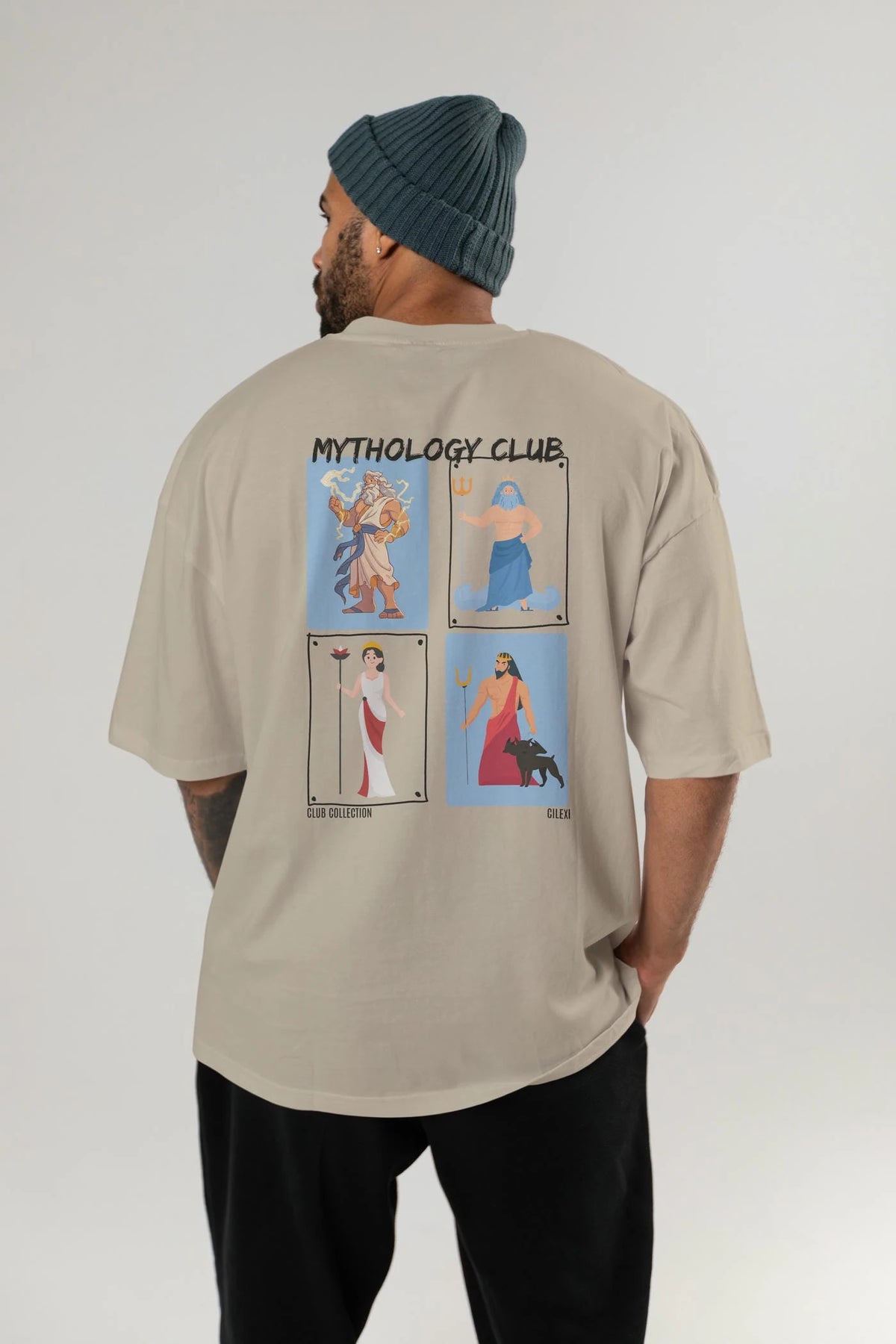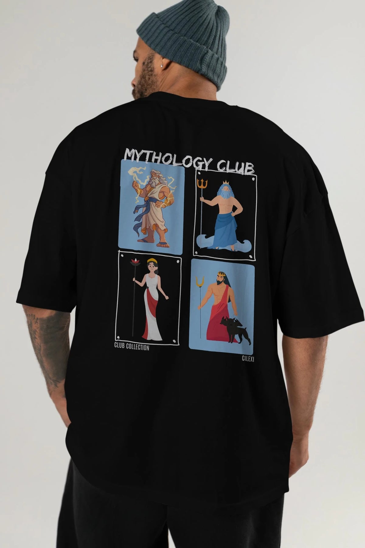 Mythology Club 2 Arka Baskılı Oversize t-shirt Erkek Kadın %100 Pamuk Bisiklet Yaka tişort