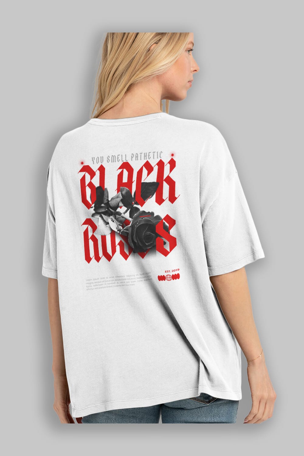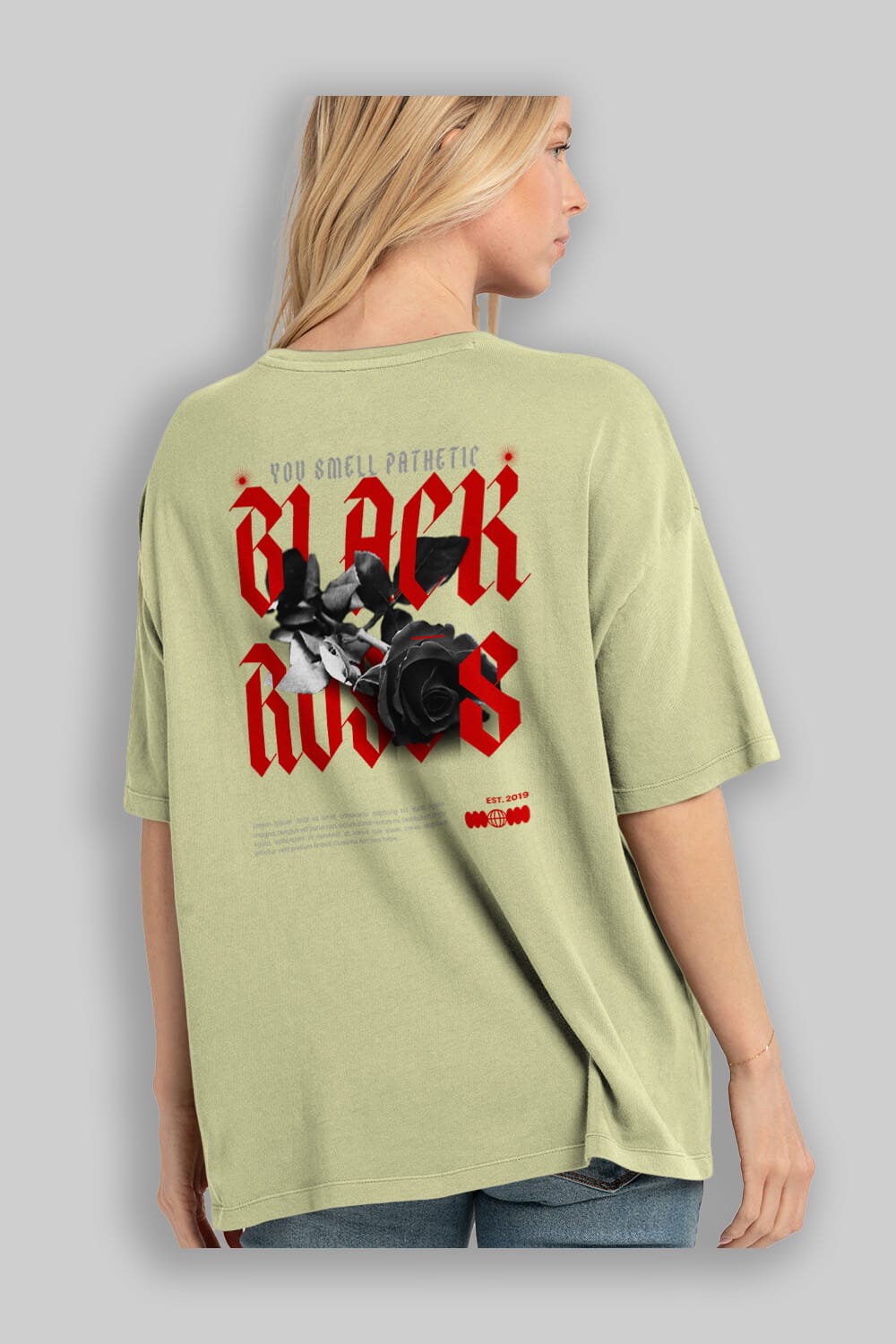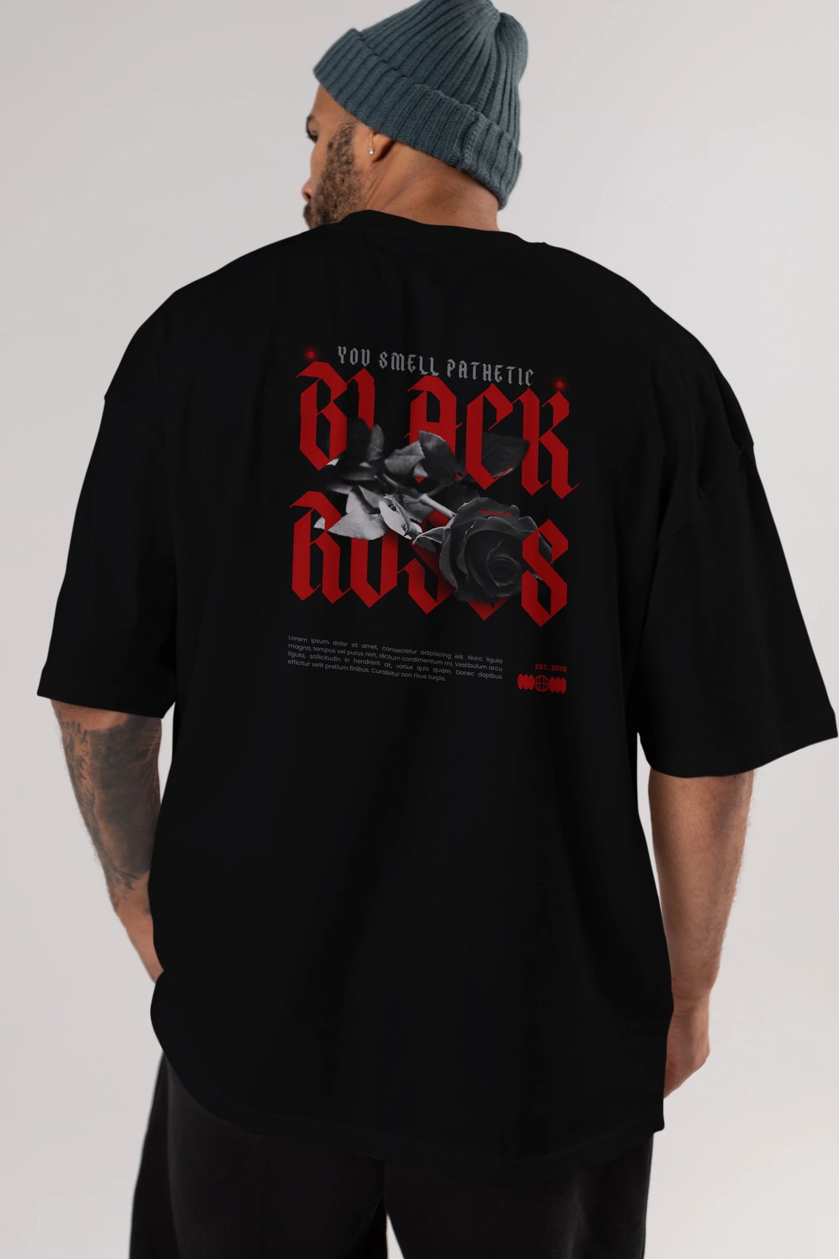 Black Roses Arka Baskılı Oversize t-shirt Erkek Kadın Unisex