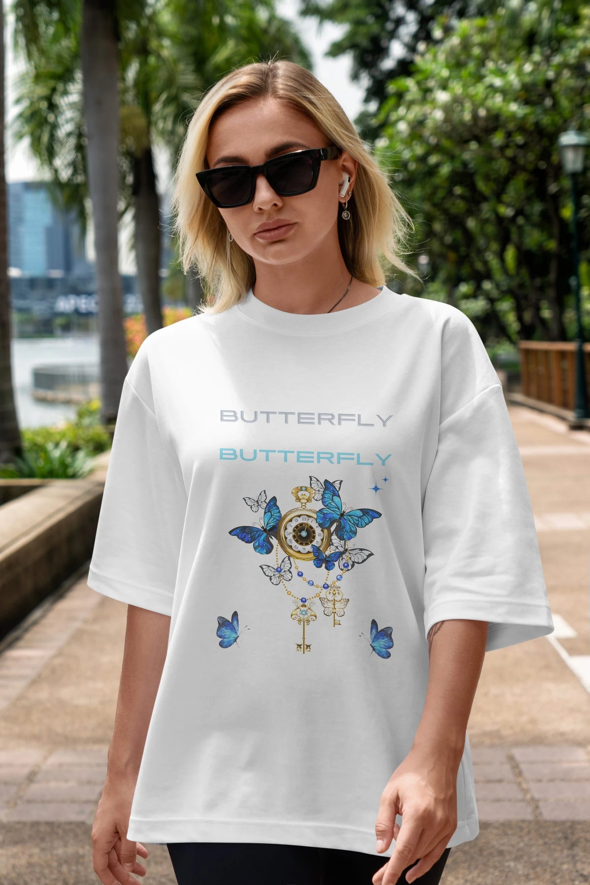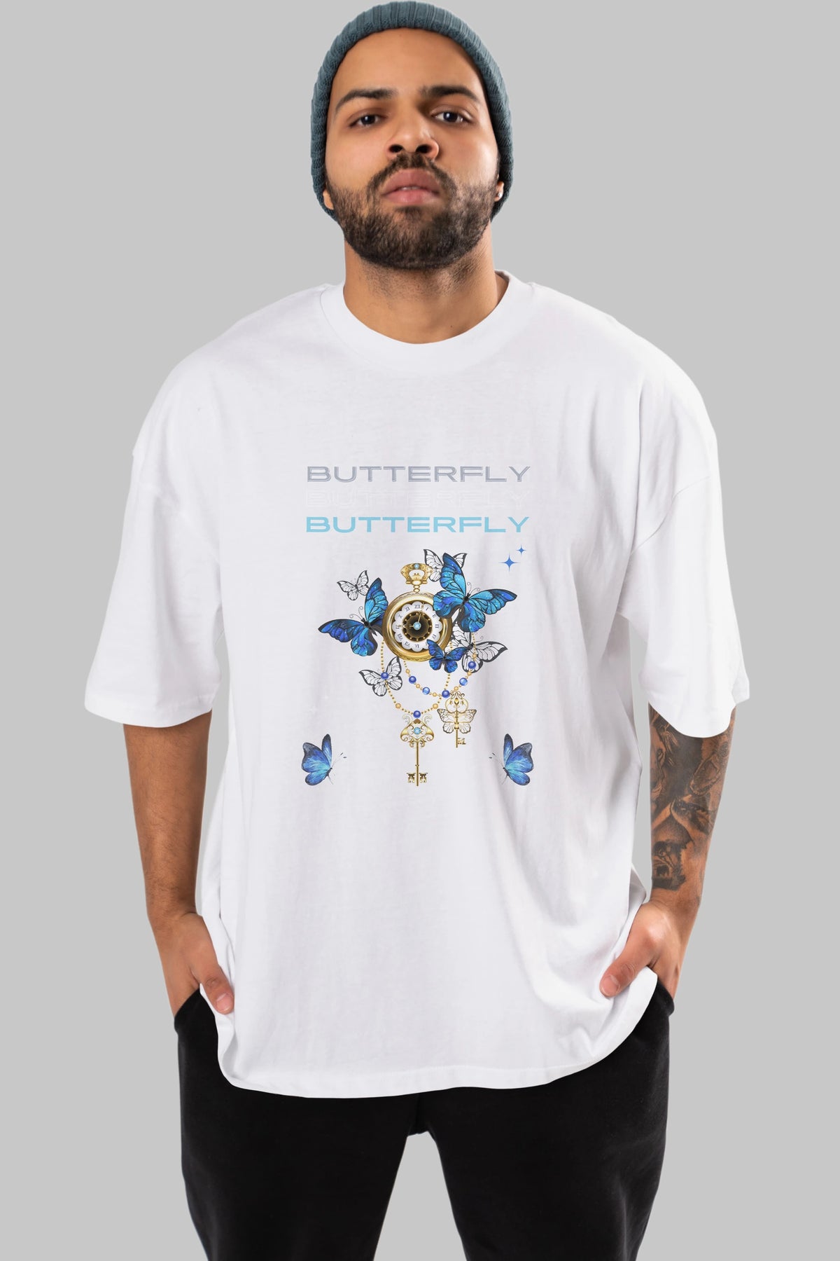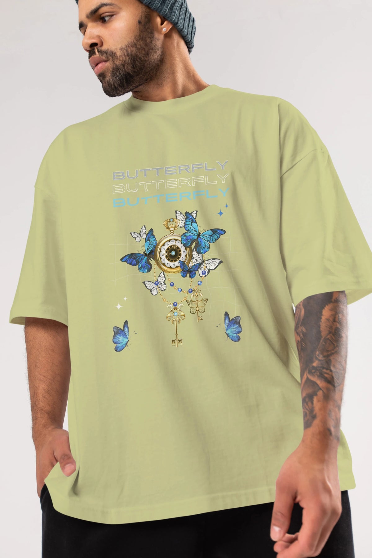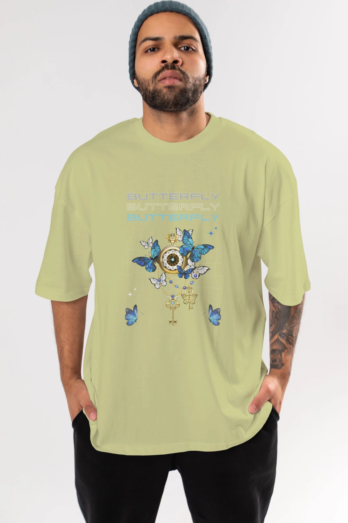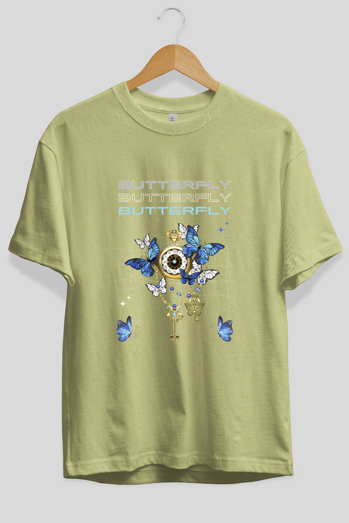 Butterfly Yazılı Ön Baskılı Oversize t-shirt Erkek Kadın Unisex