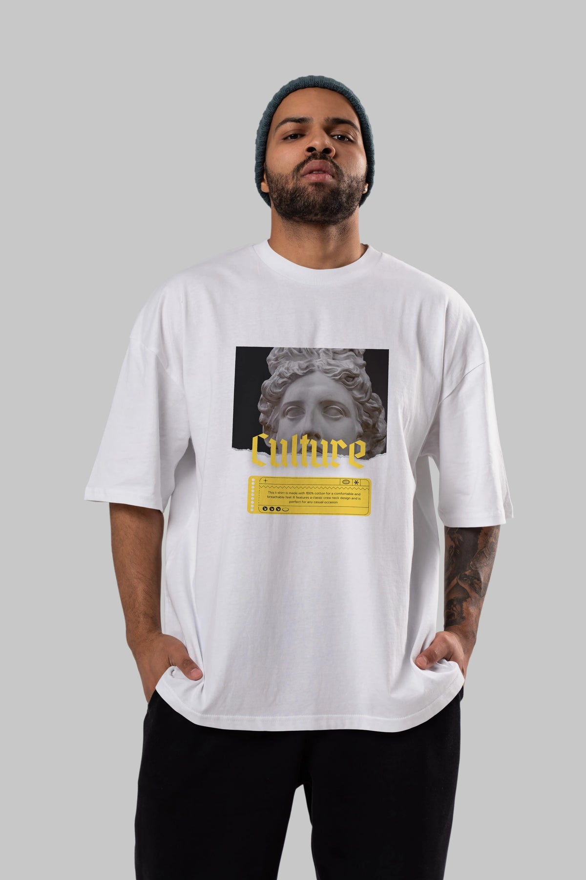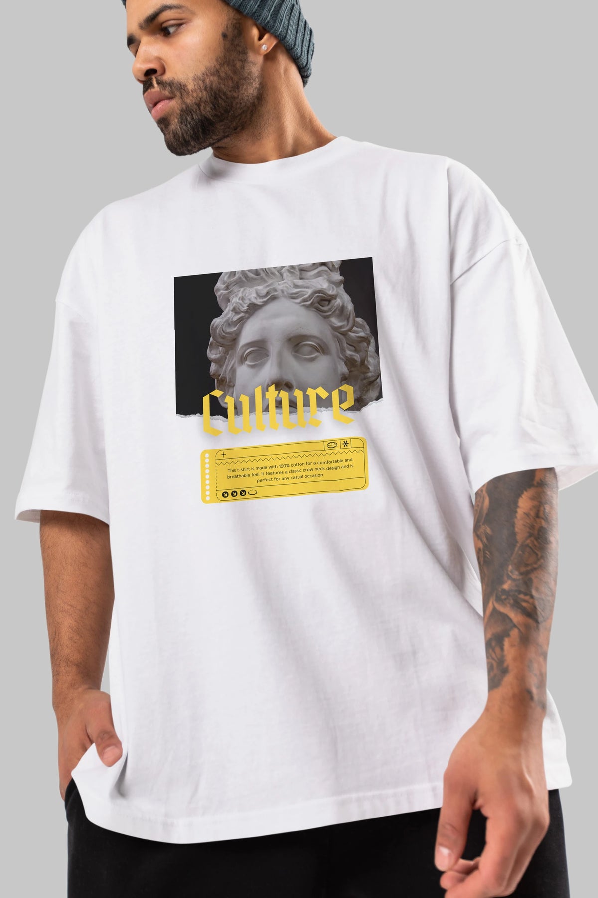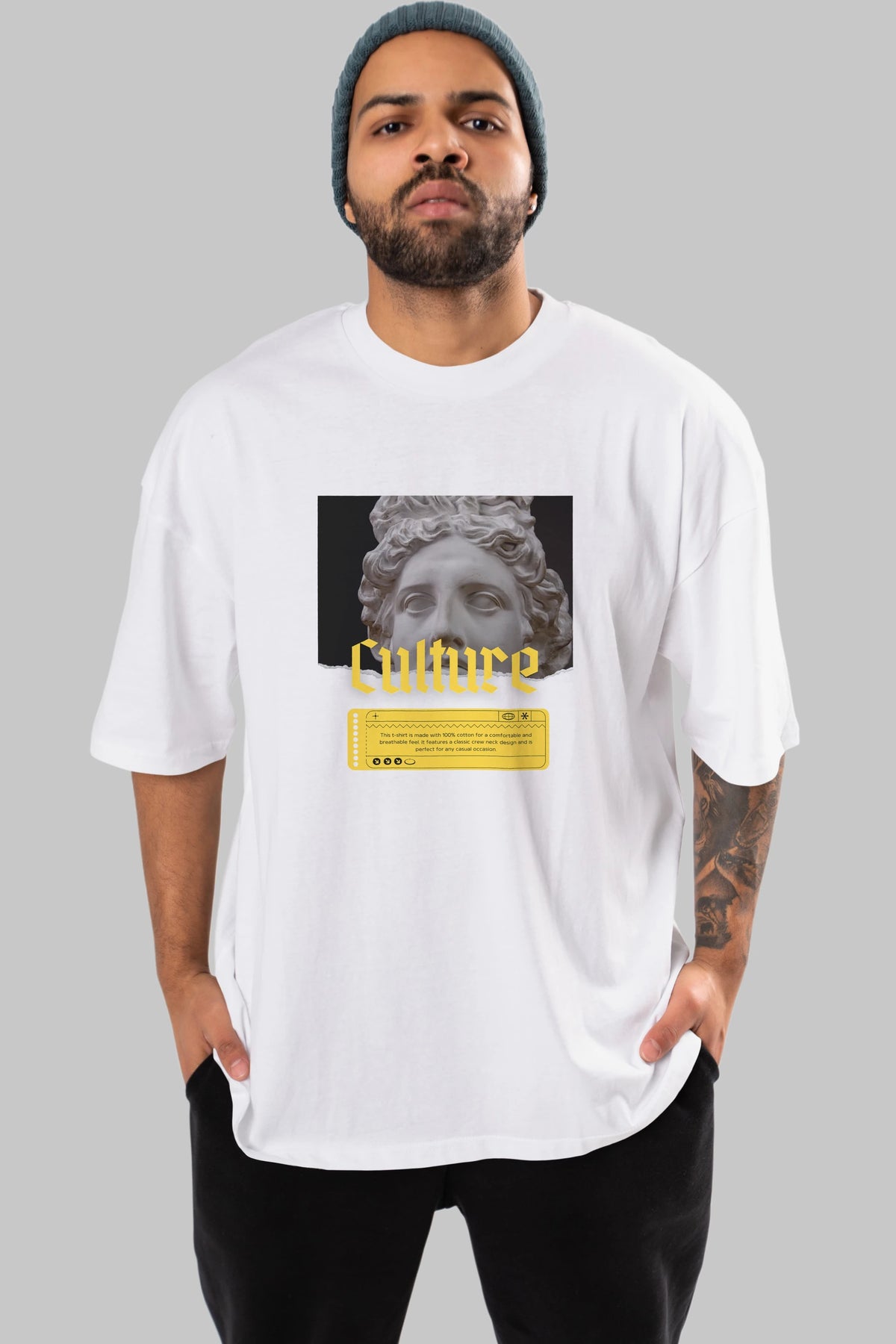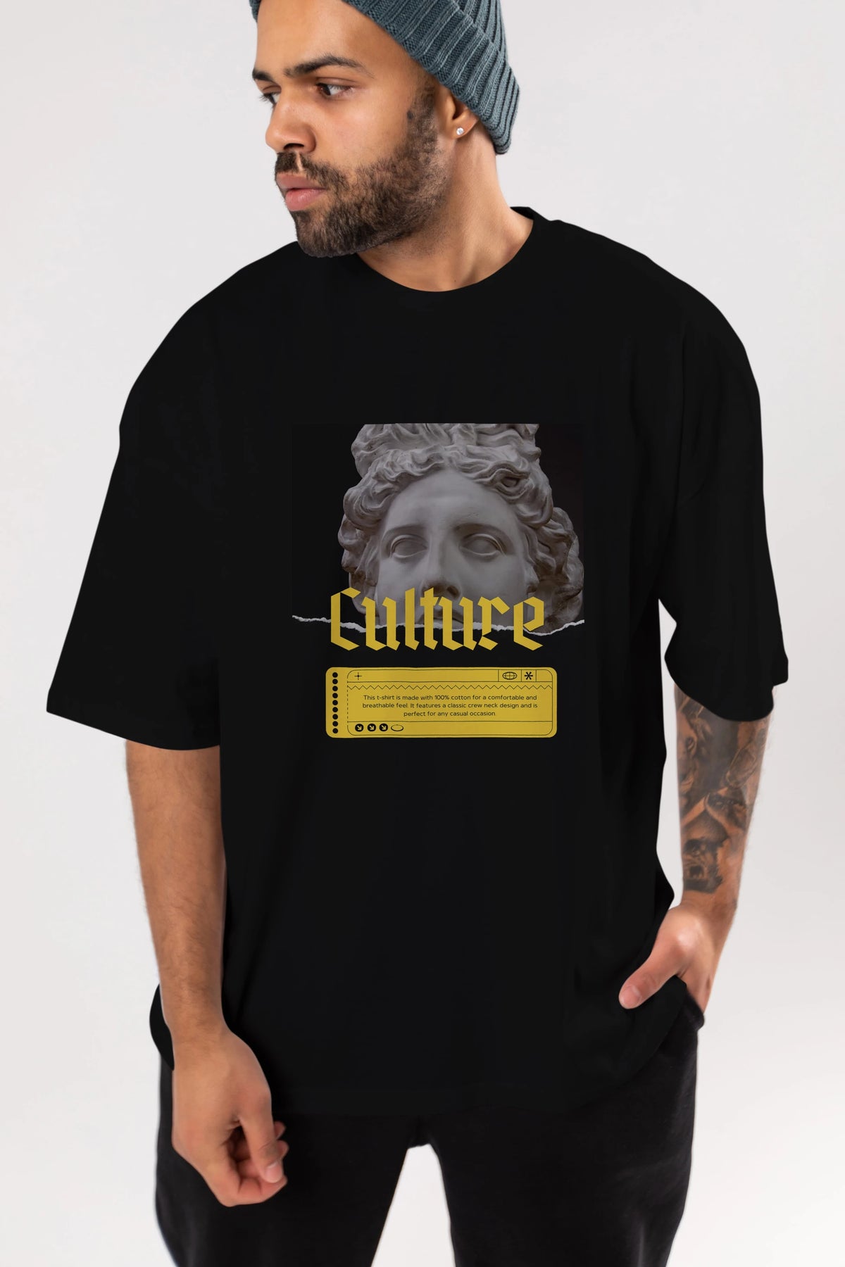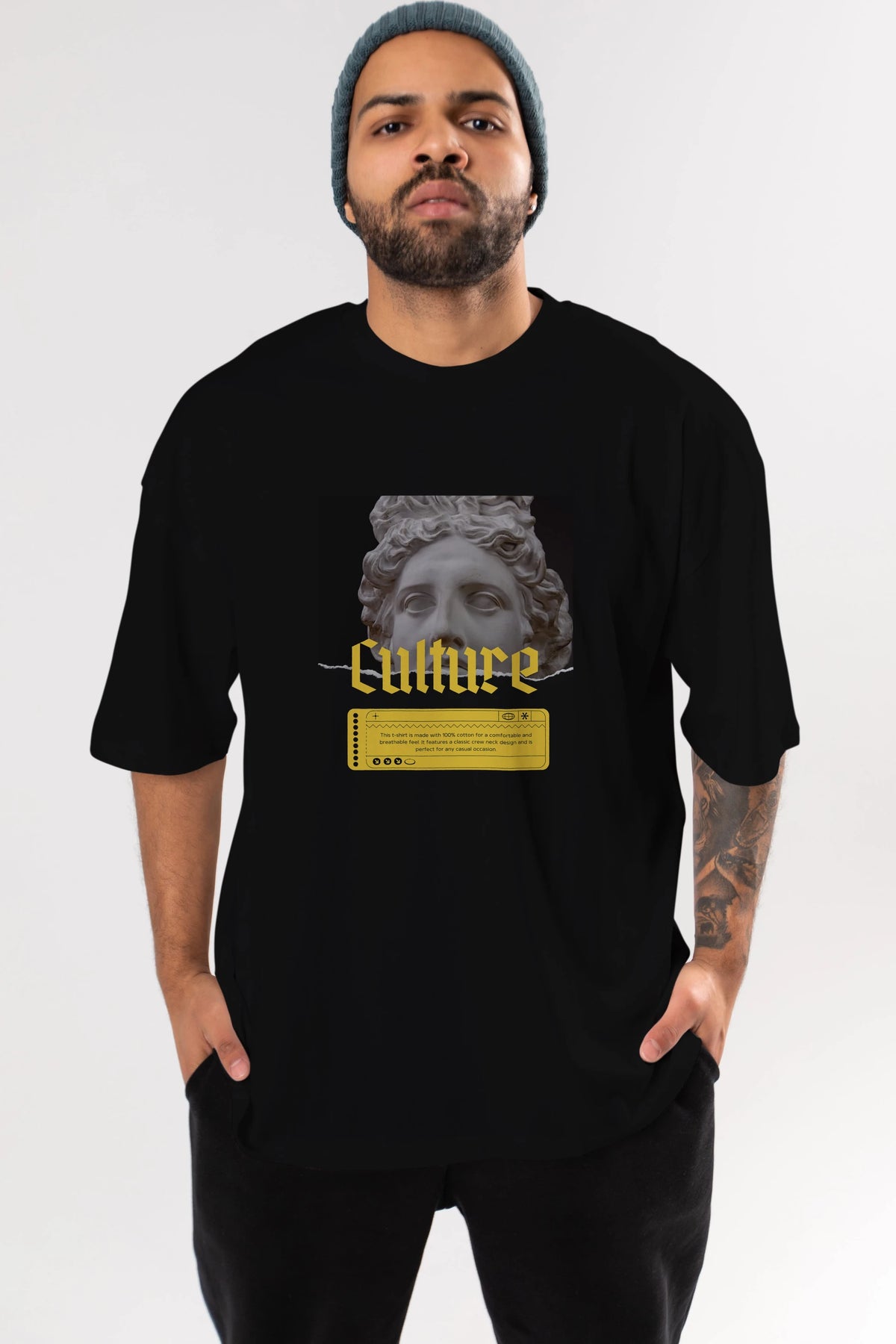 Culture Yazılı Ön Baskılı Oversize t-shirt Erkek Kadın Unisex
