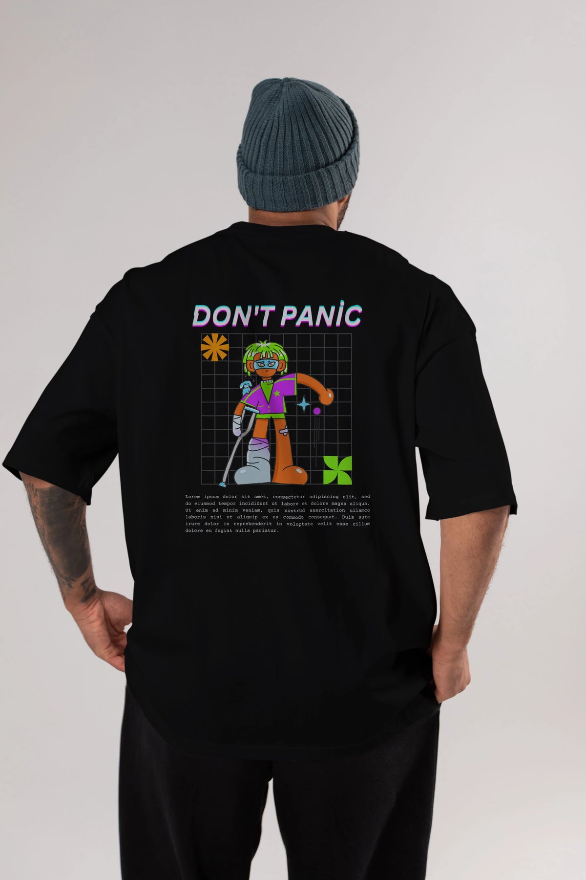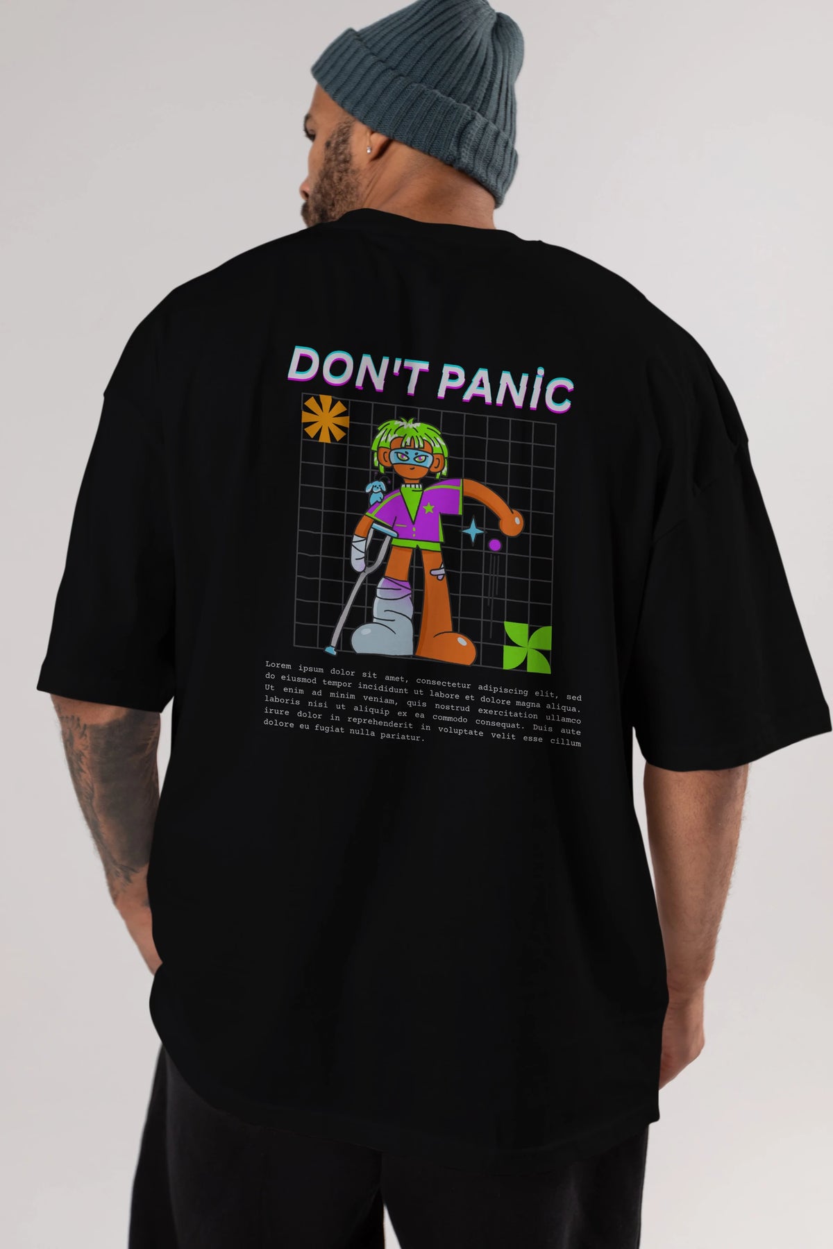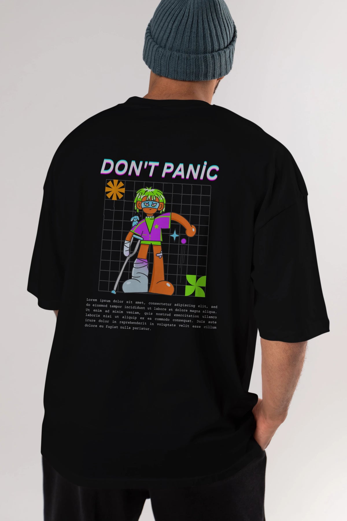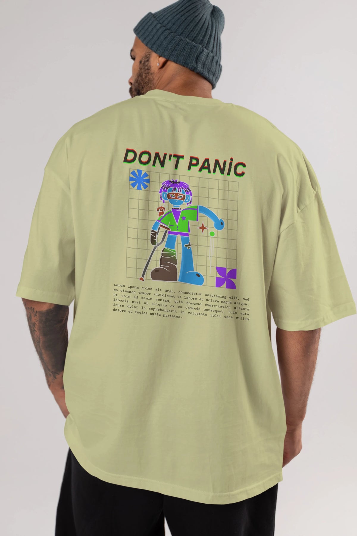 Dont Panic Yazılı Arka Baskılı Oversize t-shirt Erkek Kadın Unisex