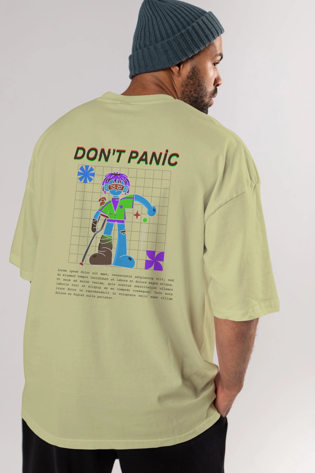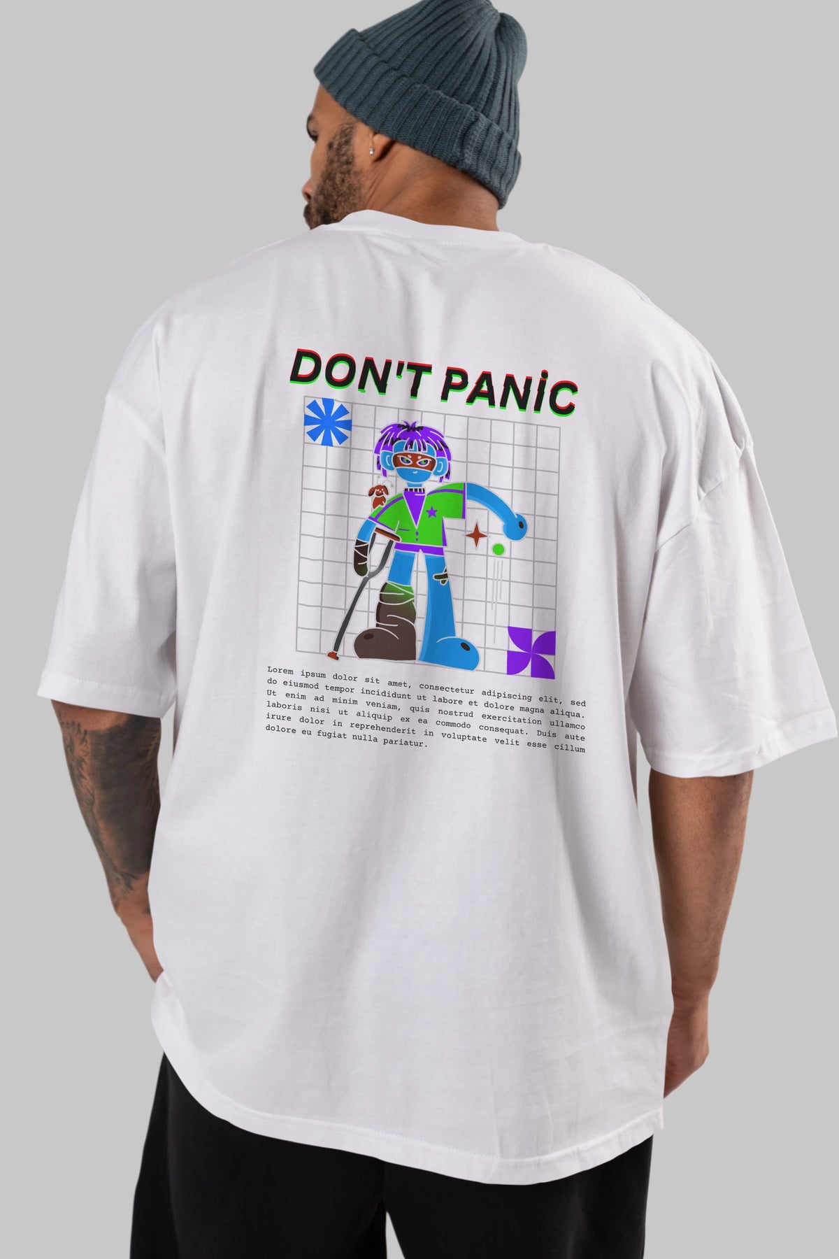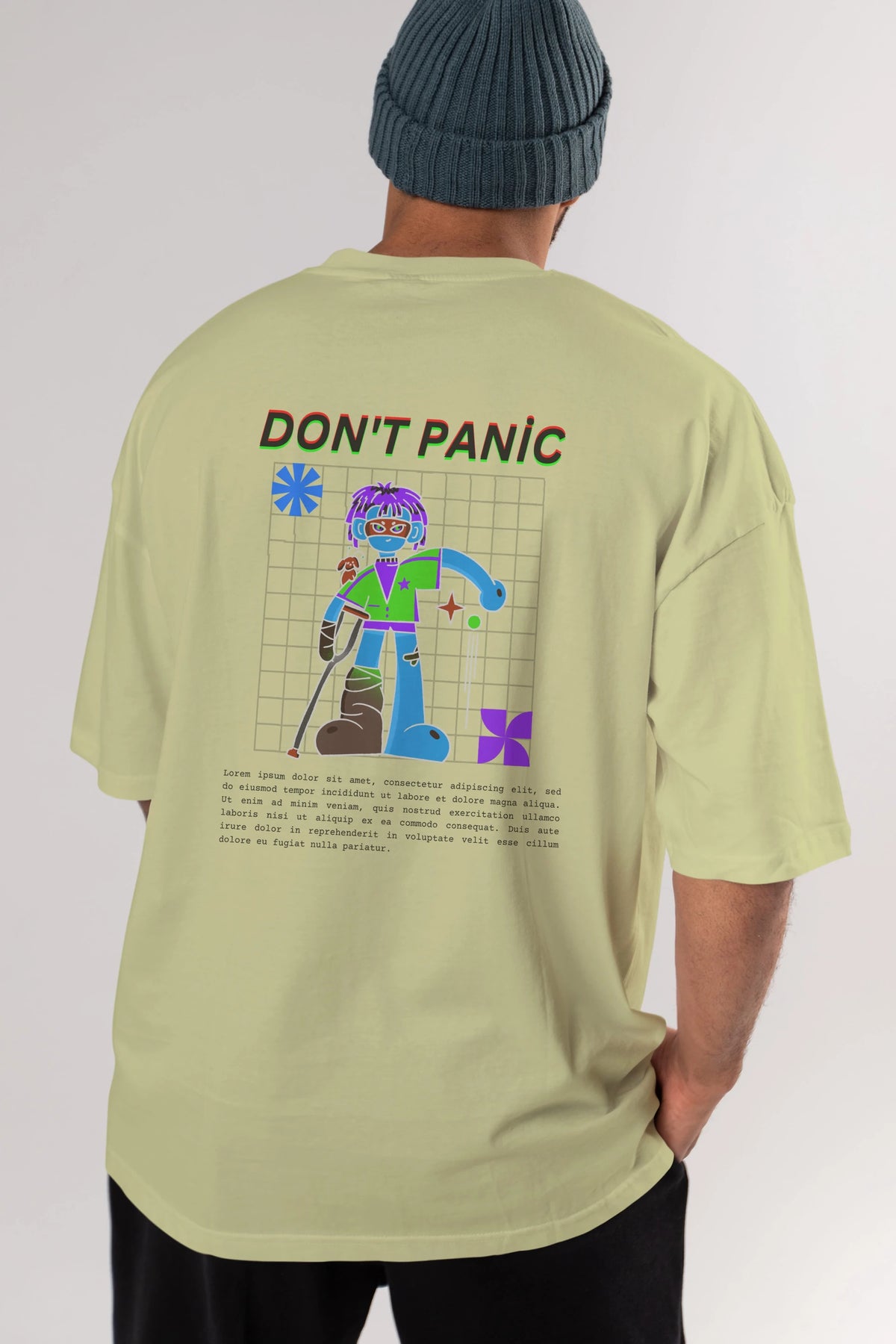 Dont Panic Yazılı Arka Baskılı Oversize t-shirt Erkek Kadın Unisex