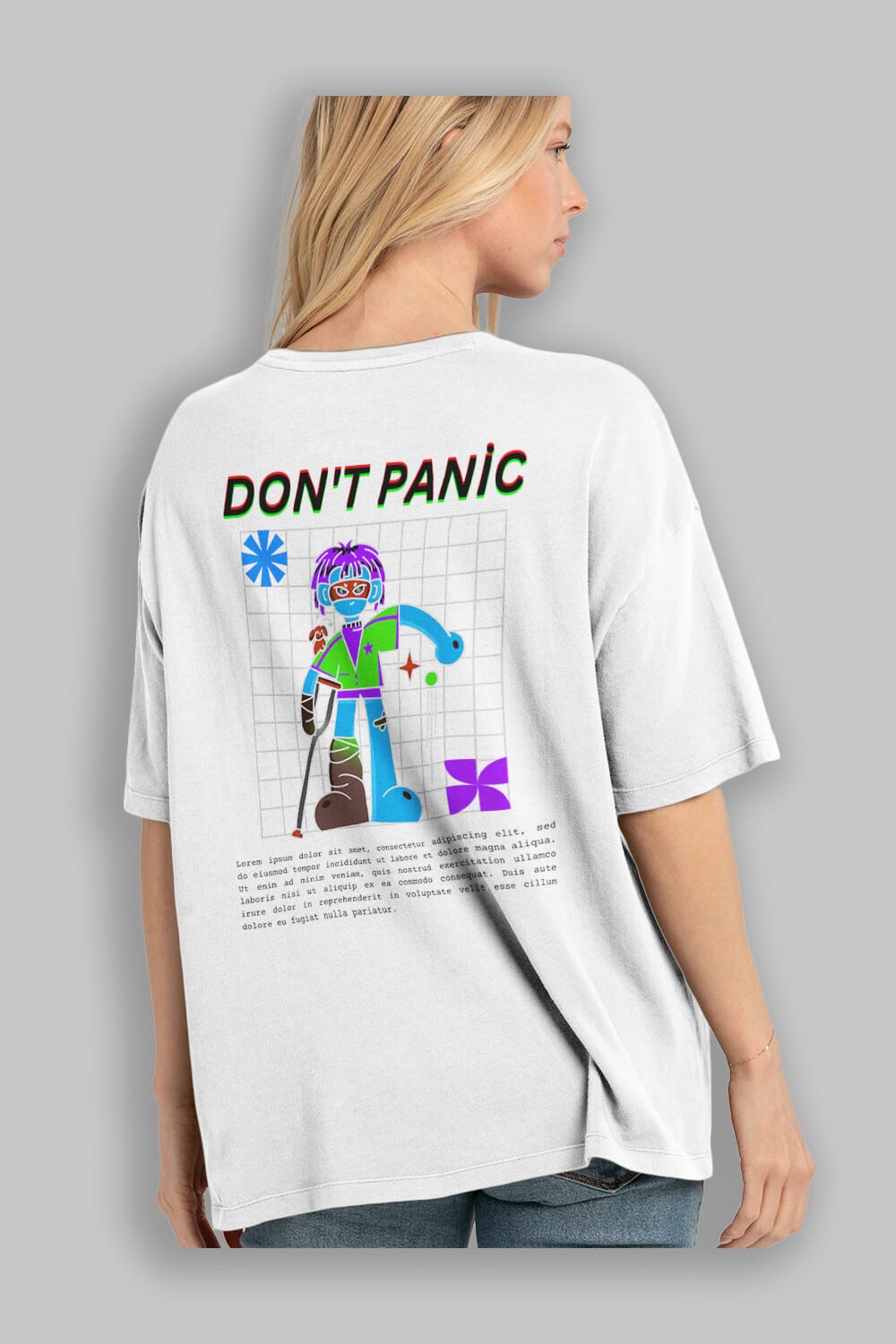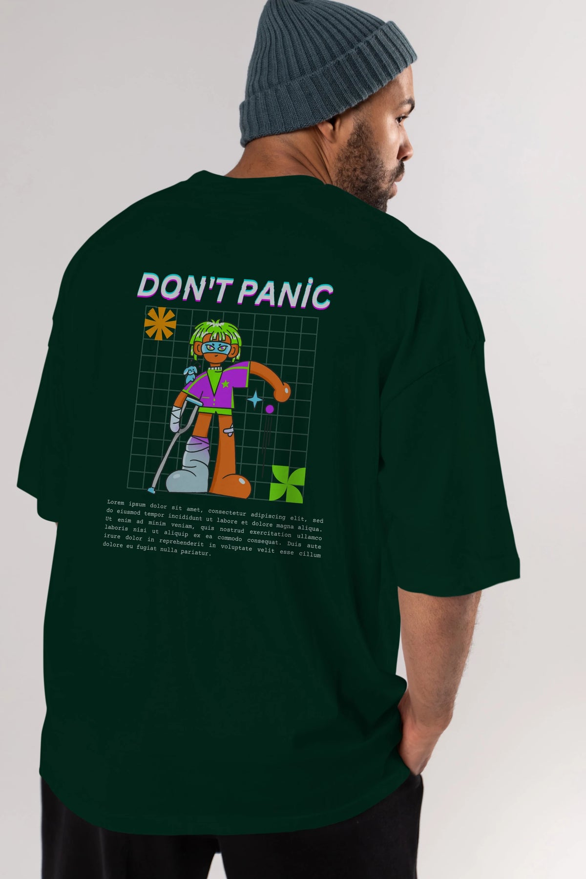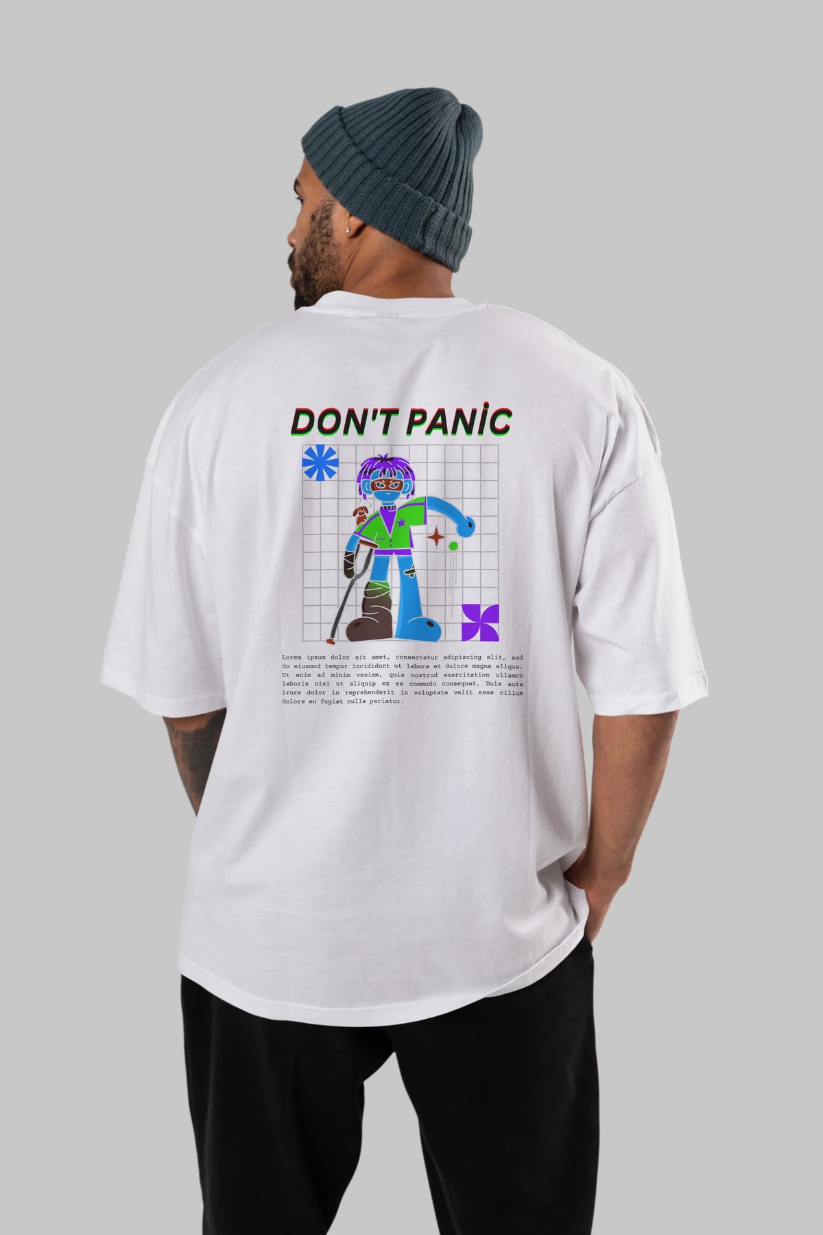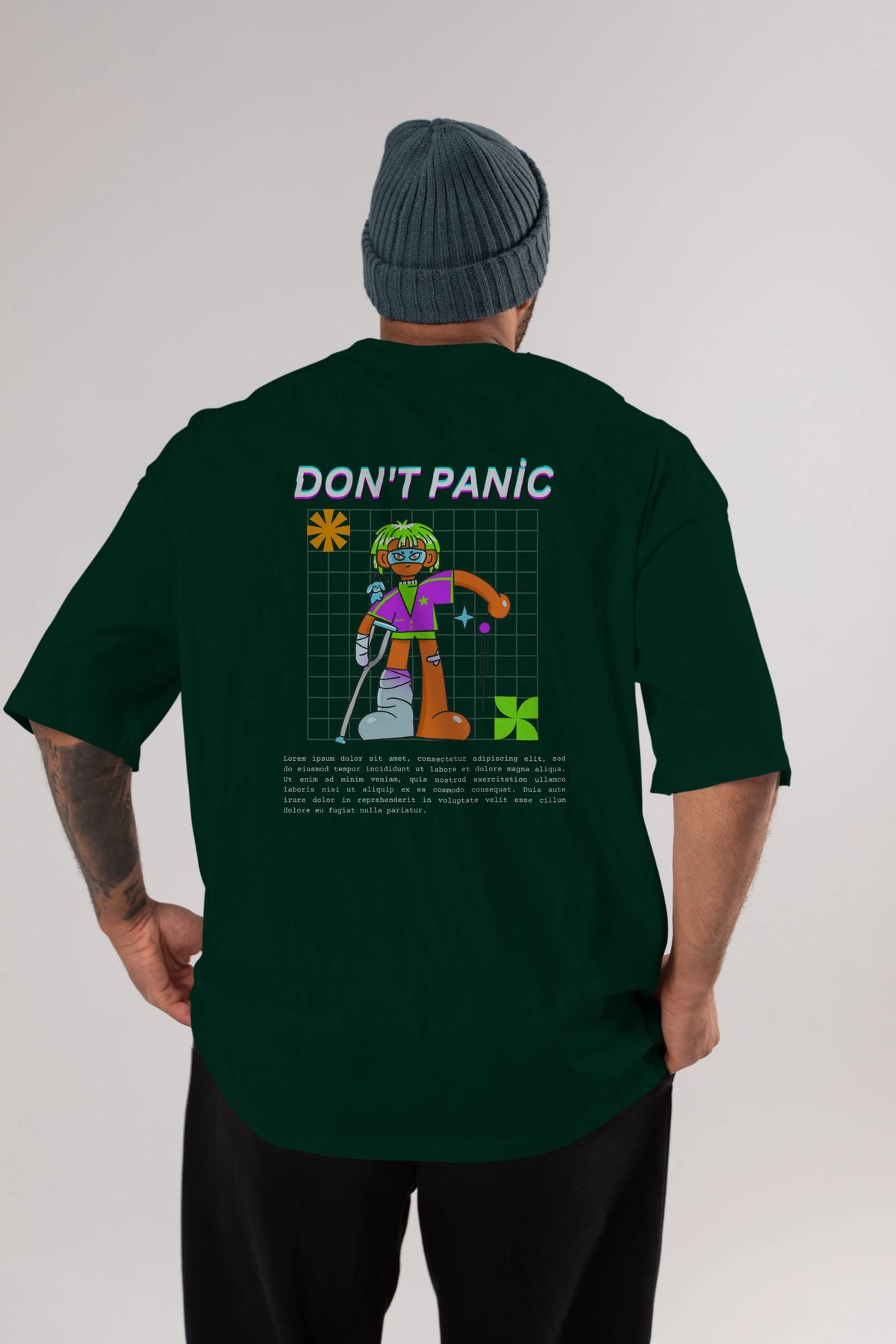 Dont Panic Yazılı Arka Baskılı Oversize t-shirt Erkek Kadın Unisex