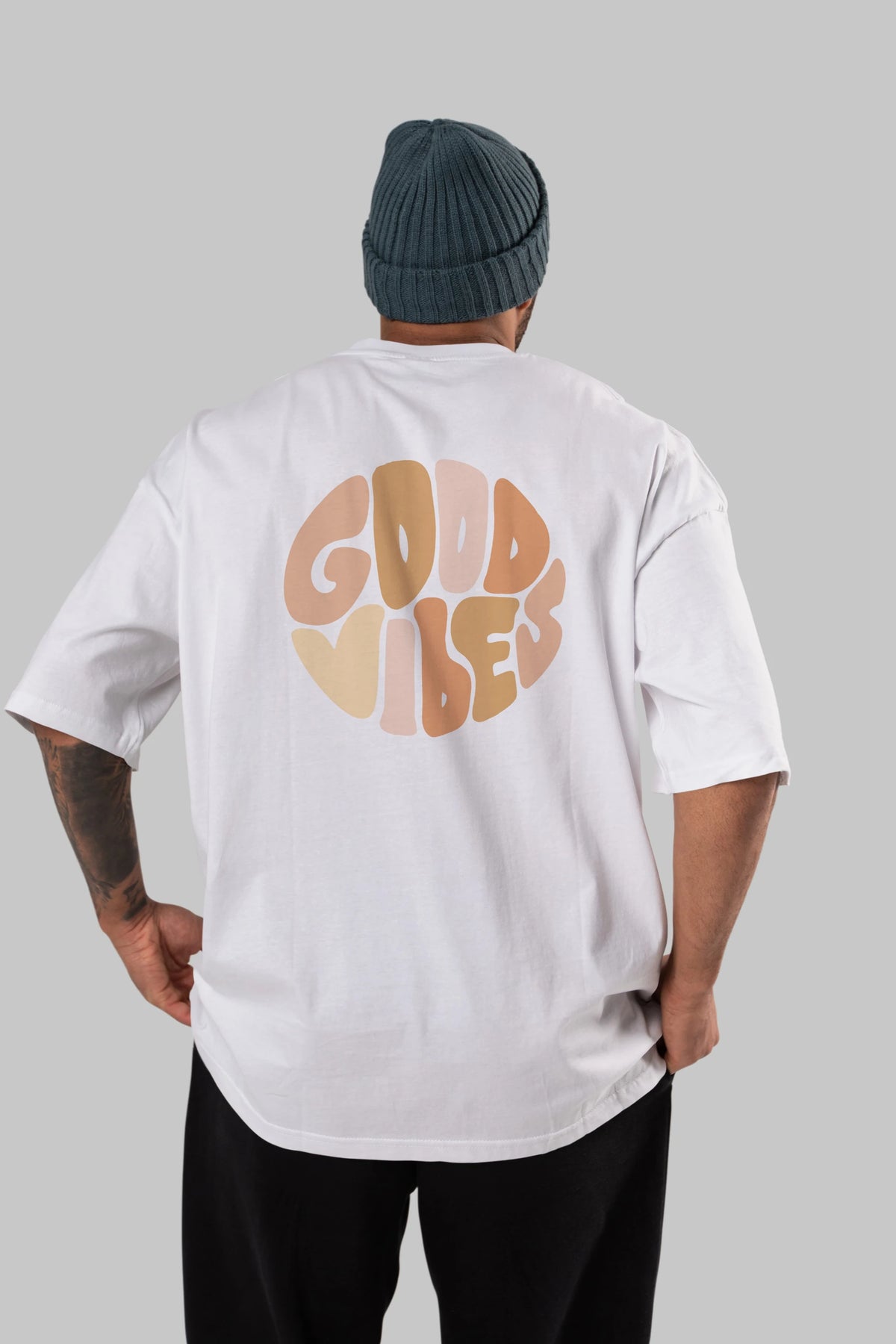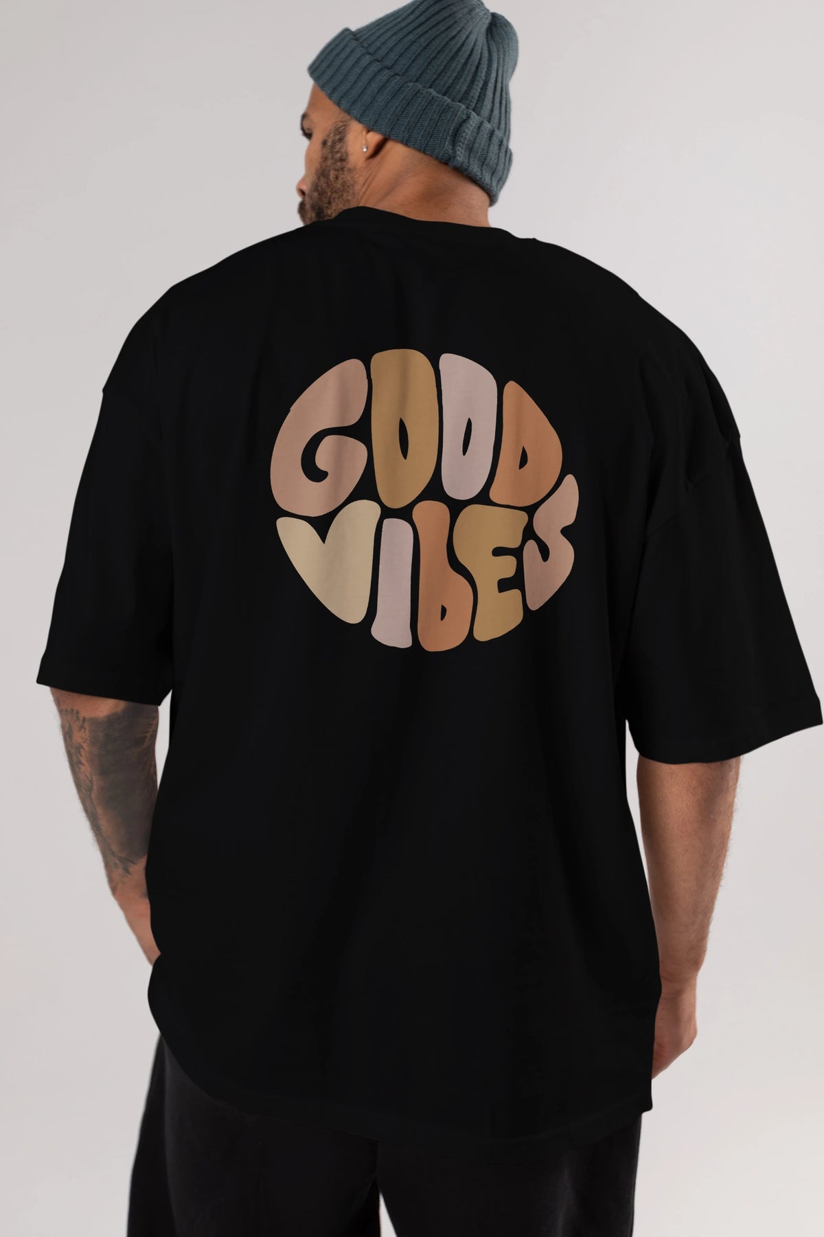Good Vibes Yazılı 3 Arka Baskılı Oversize t-shirt Erkek Kadın Unisex