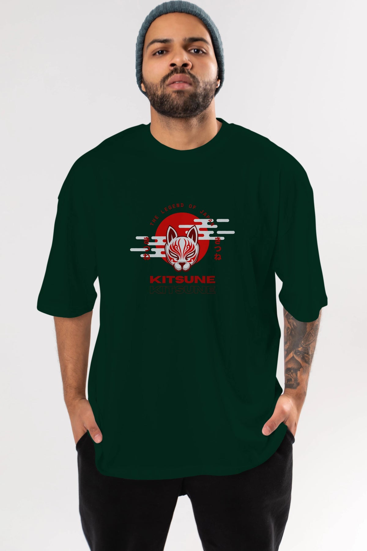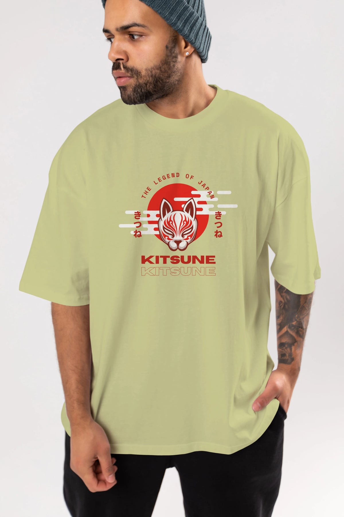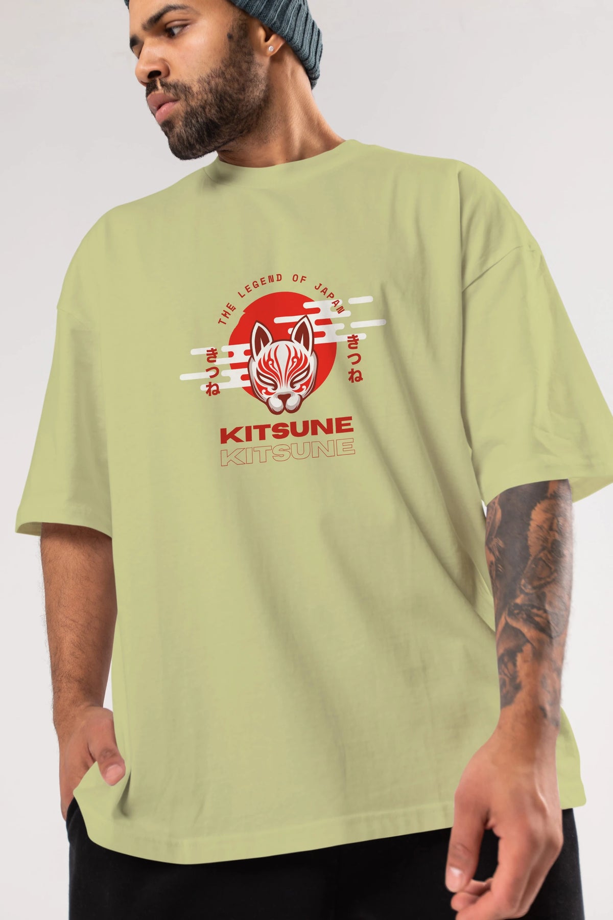 Kitsune Mask Ön Baskılı Oversize t-shirt Erkek Kadın Unisex