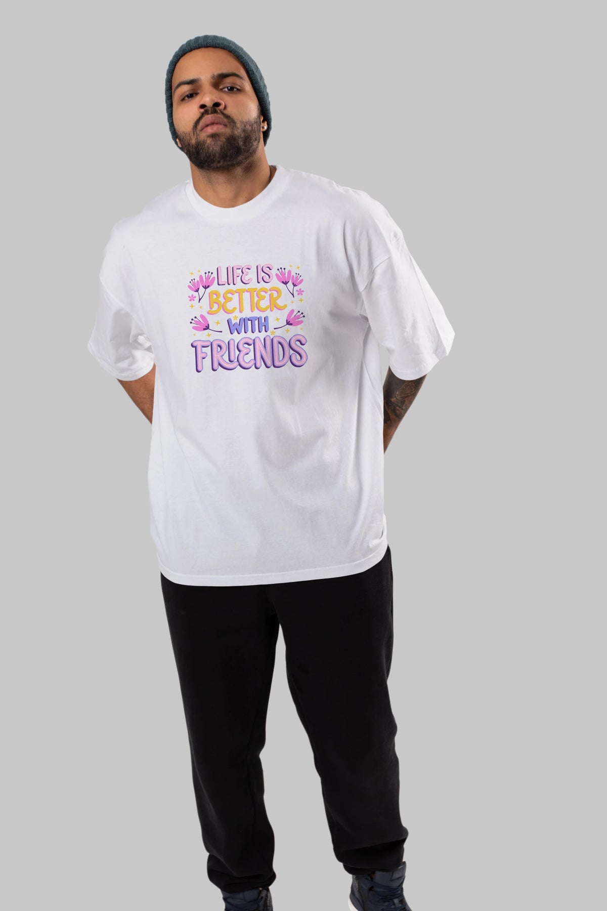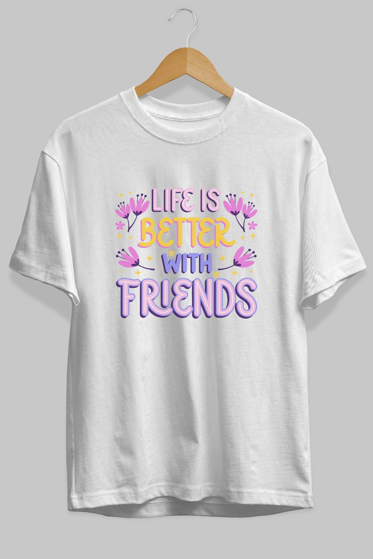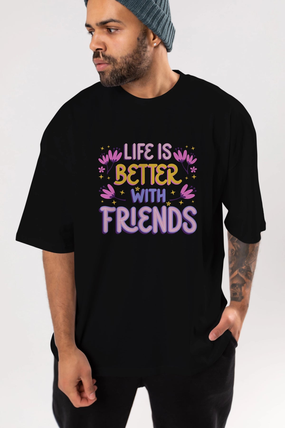 Life is Better With Friends Yazılı Ön Baskılı Oversize t-shirt Erkek Kadın Unisex