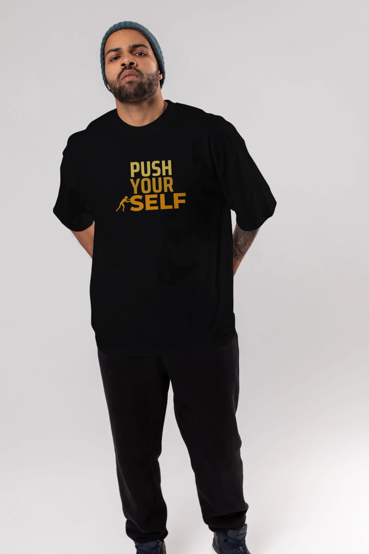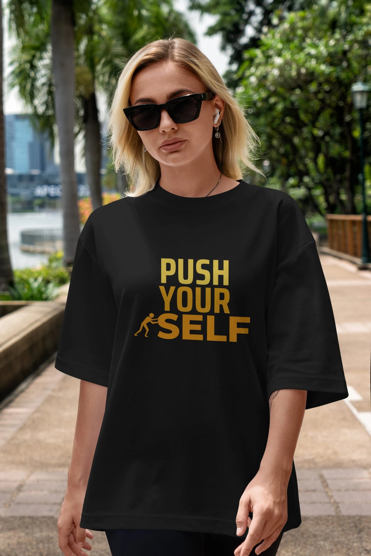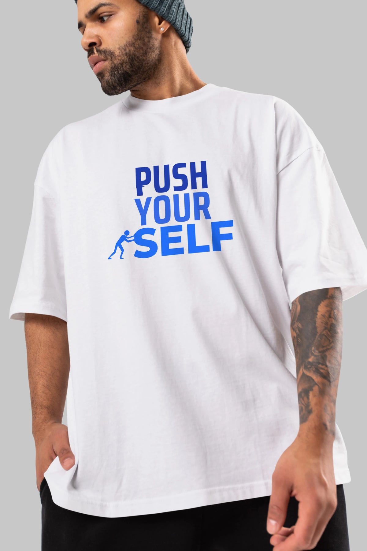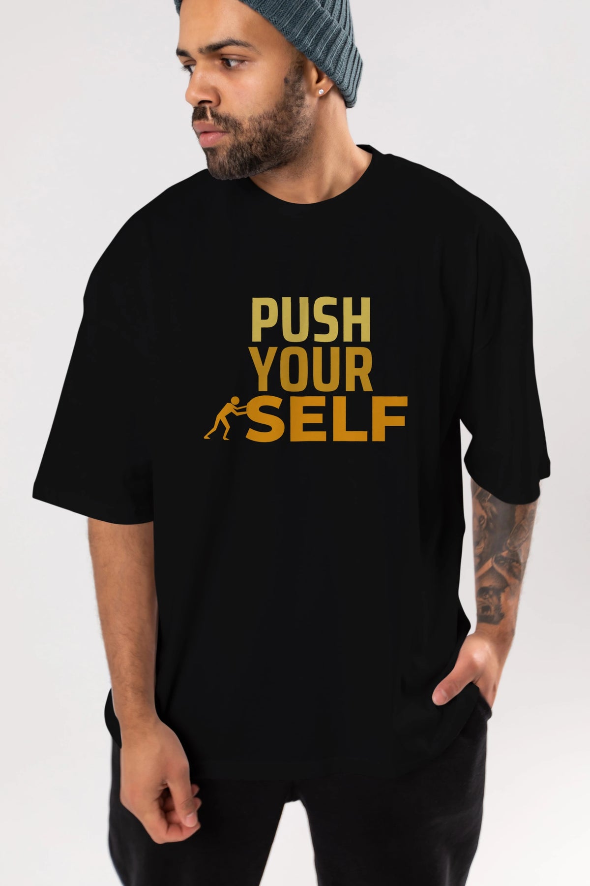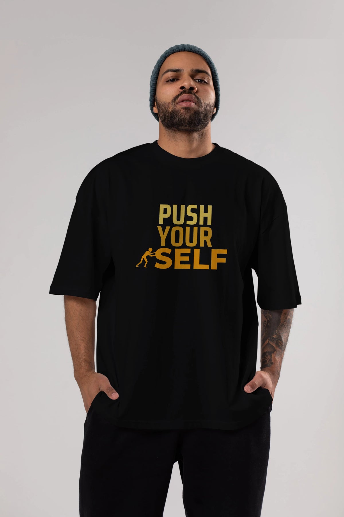 Push Yourself Yazılı Ön Baskılı Oversize t-shirt Erkek Kadın Unisex