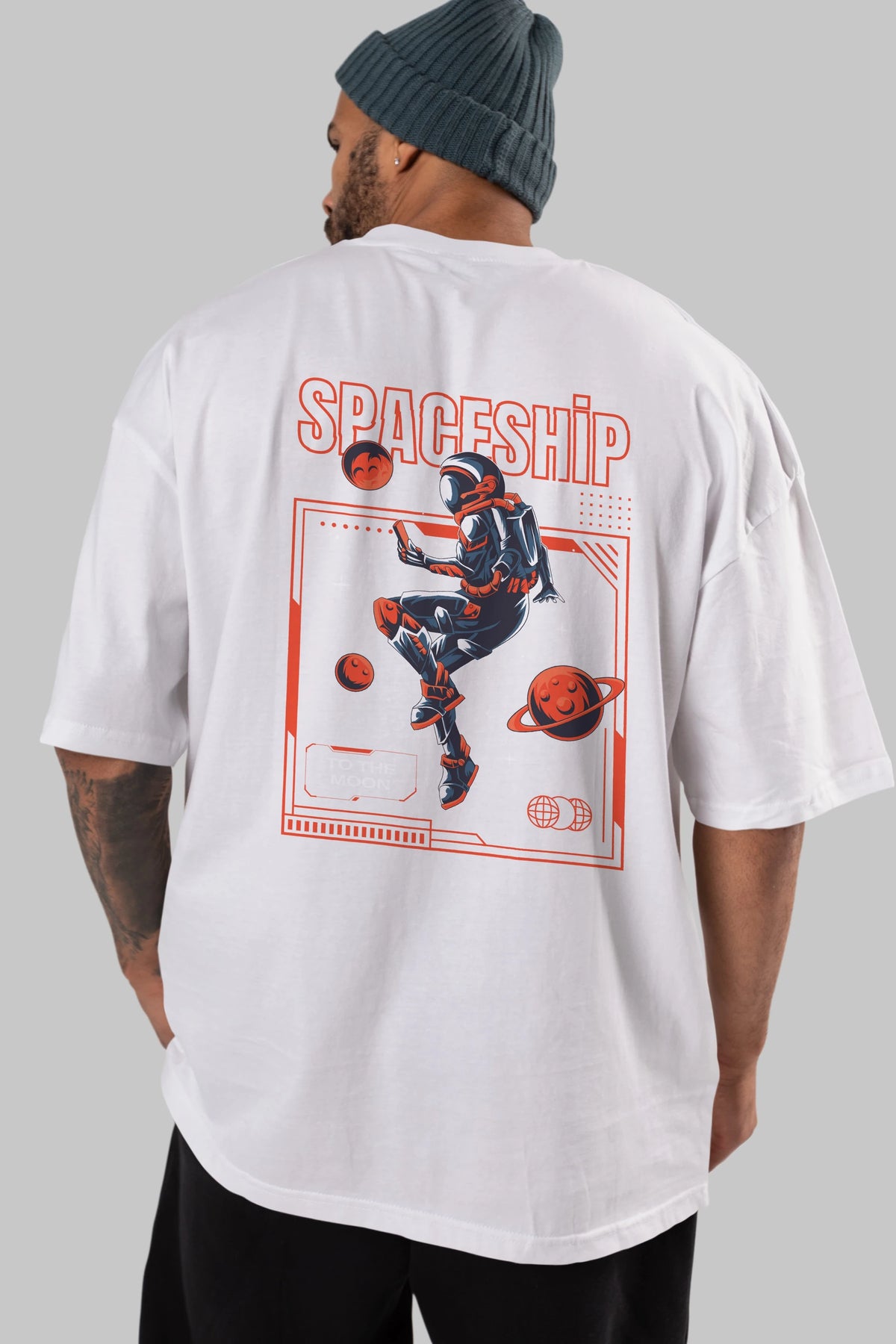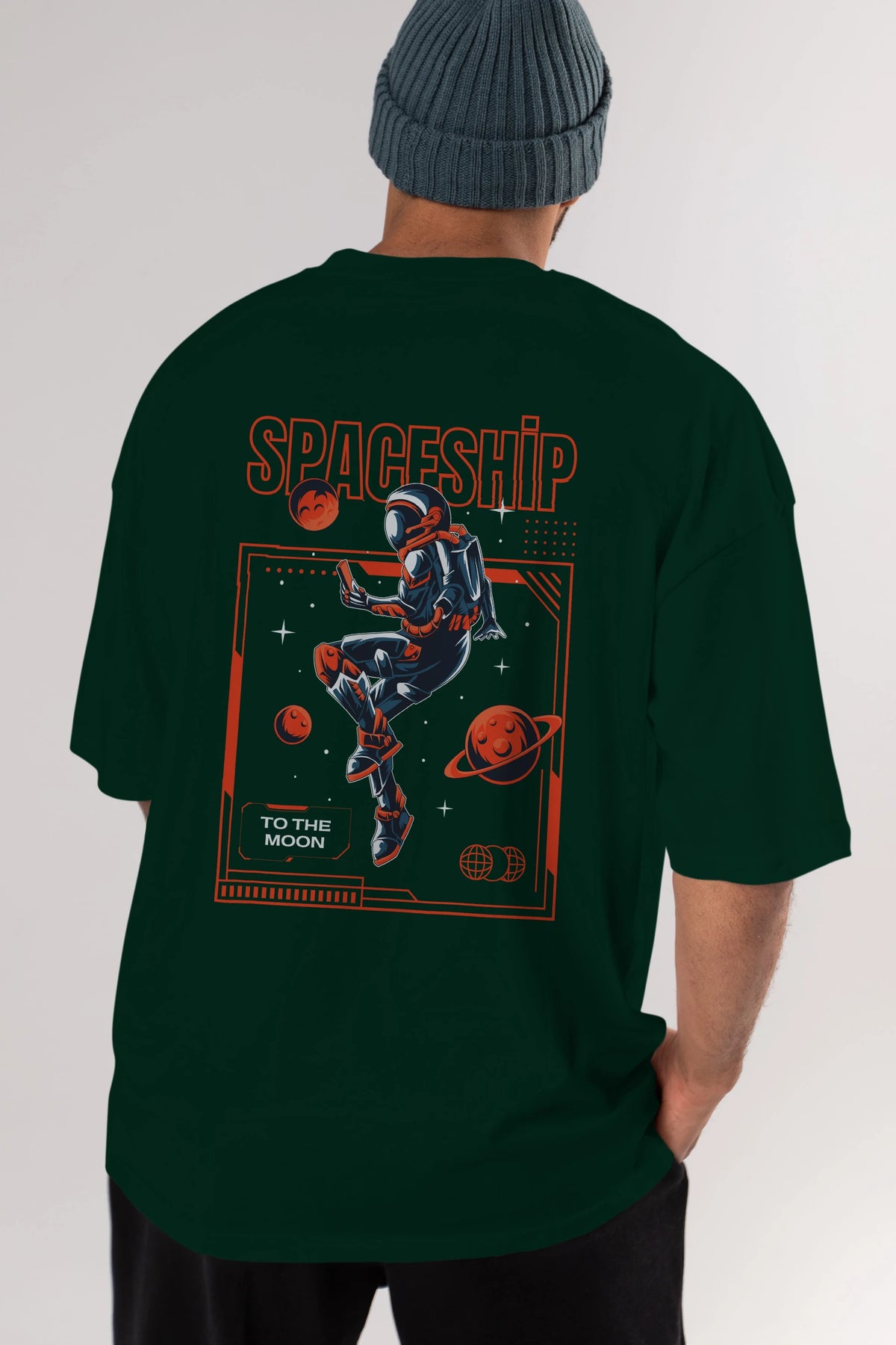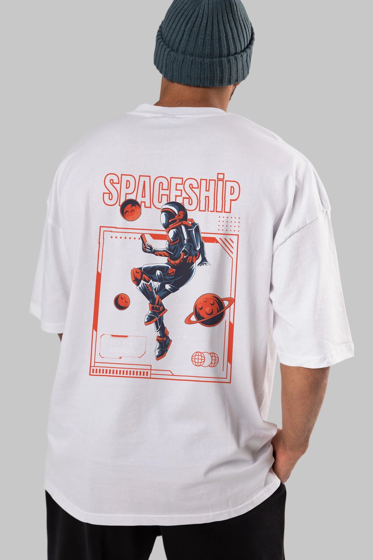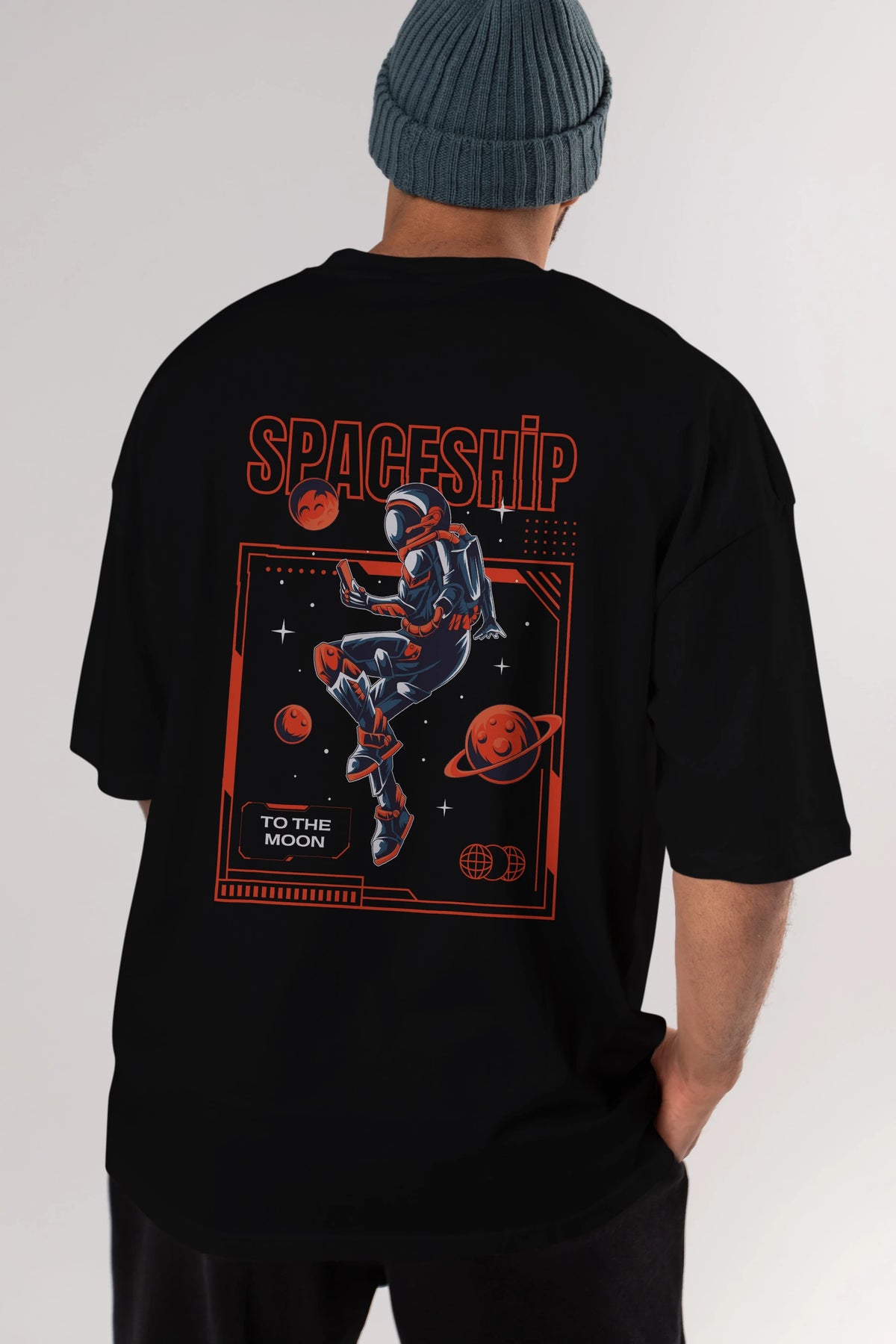 Spaceship Arka Baskılı Oversize t-shirt Erkek Kadın Unisex