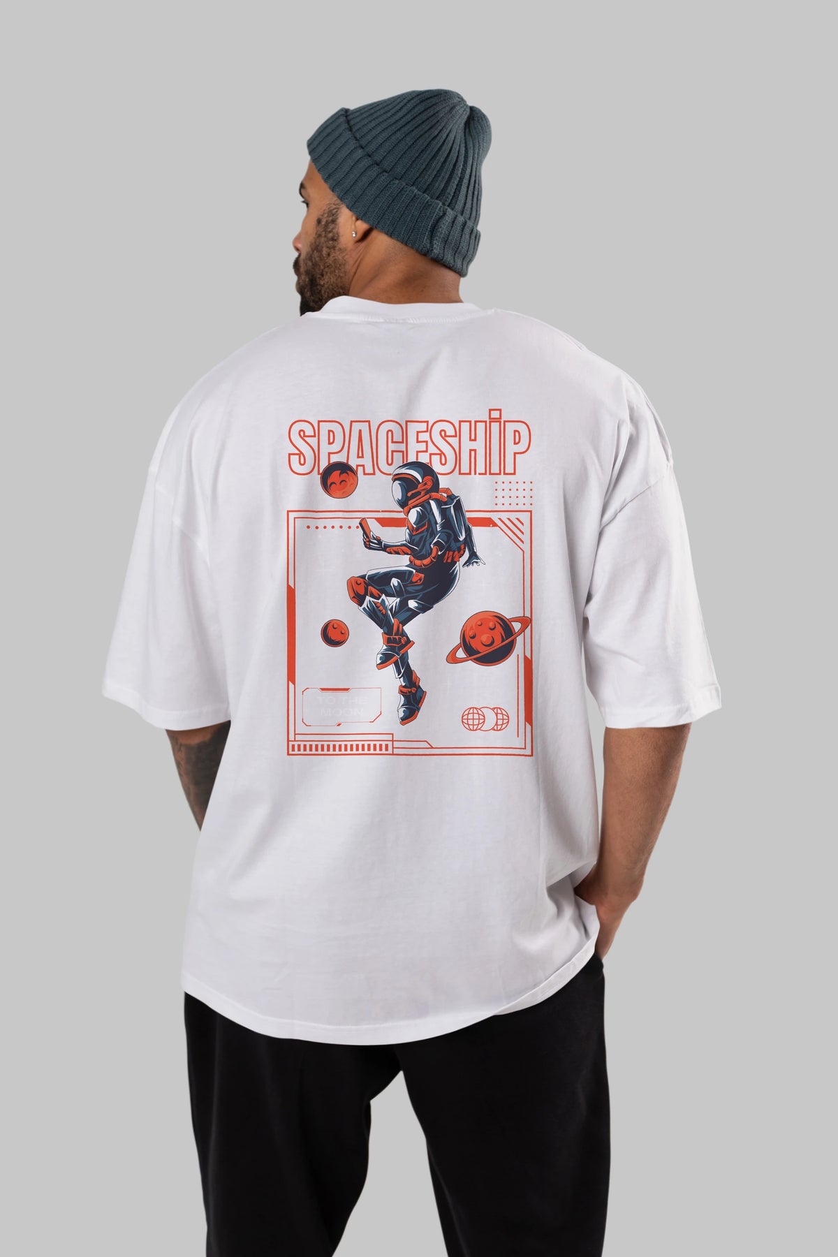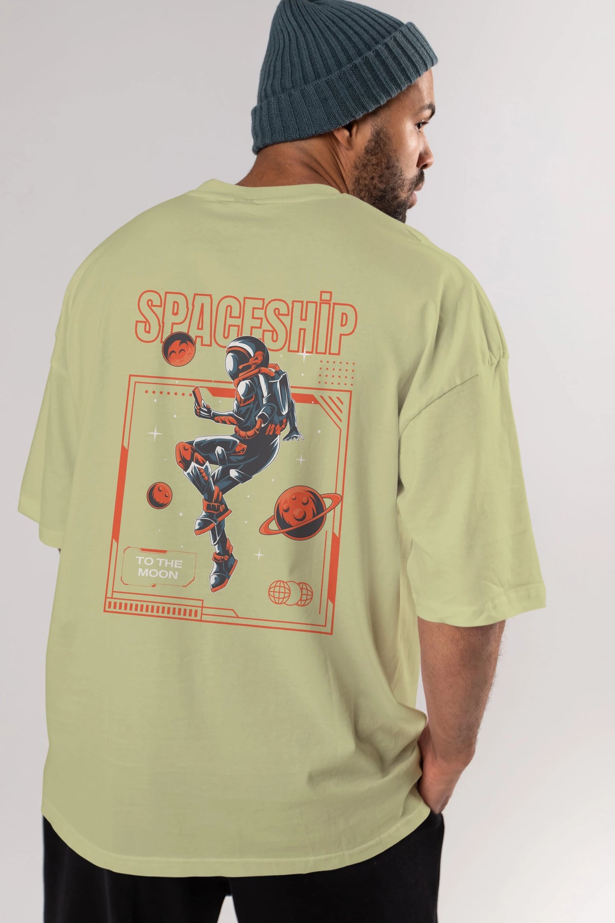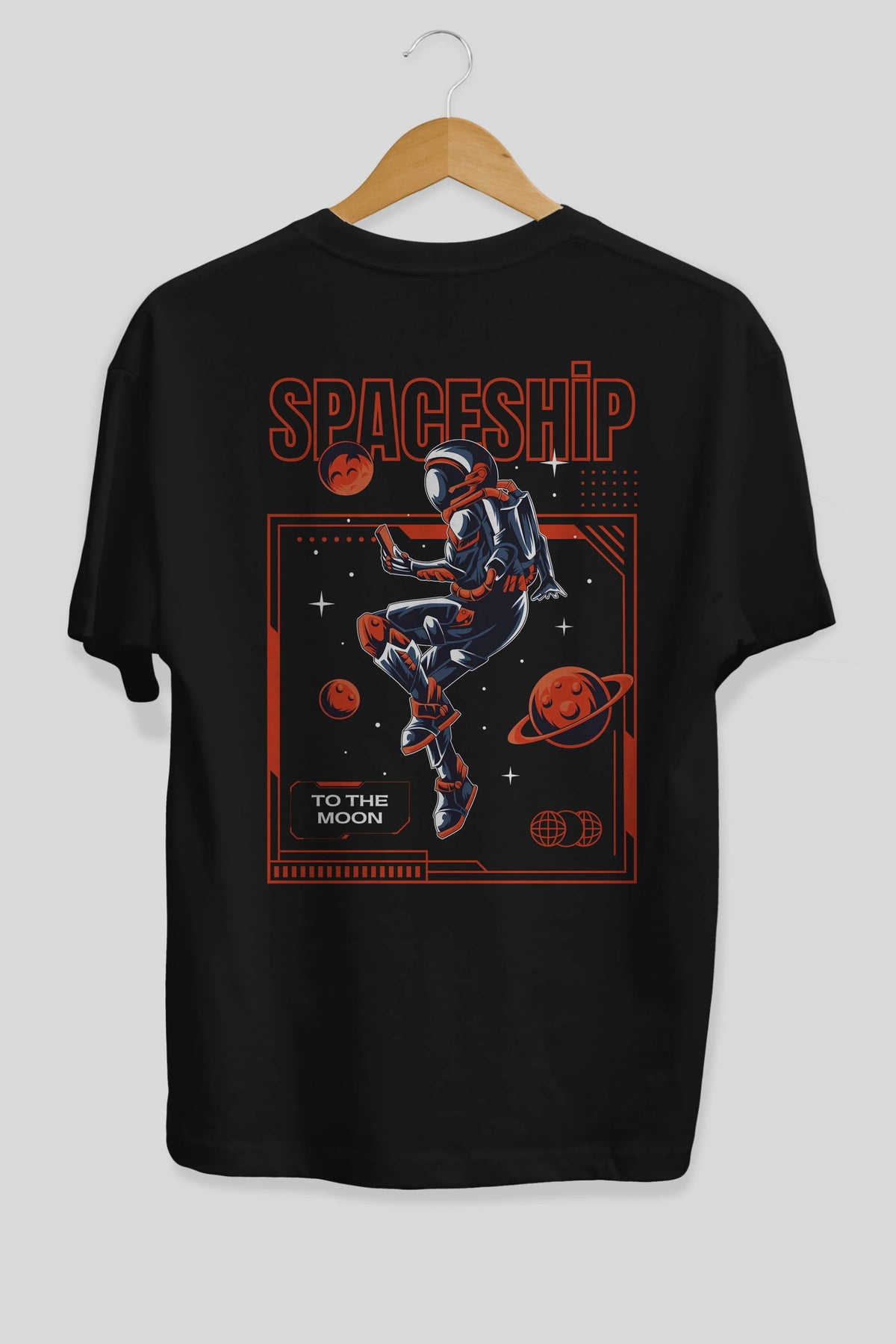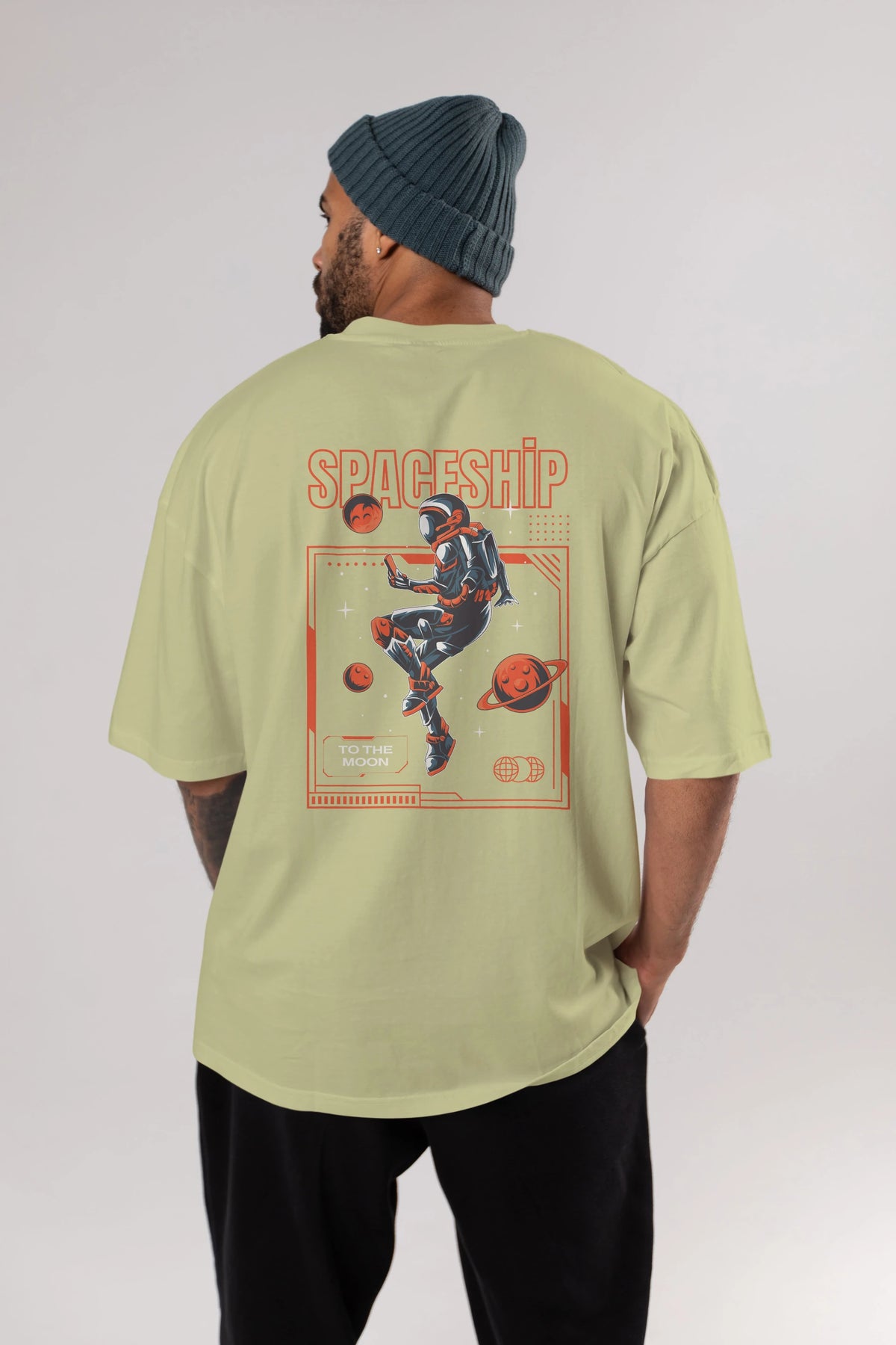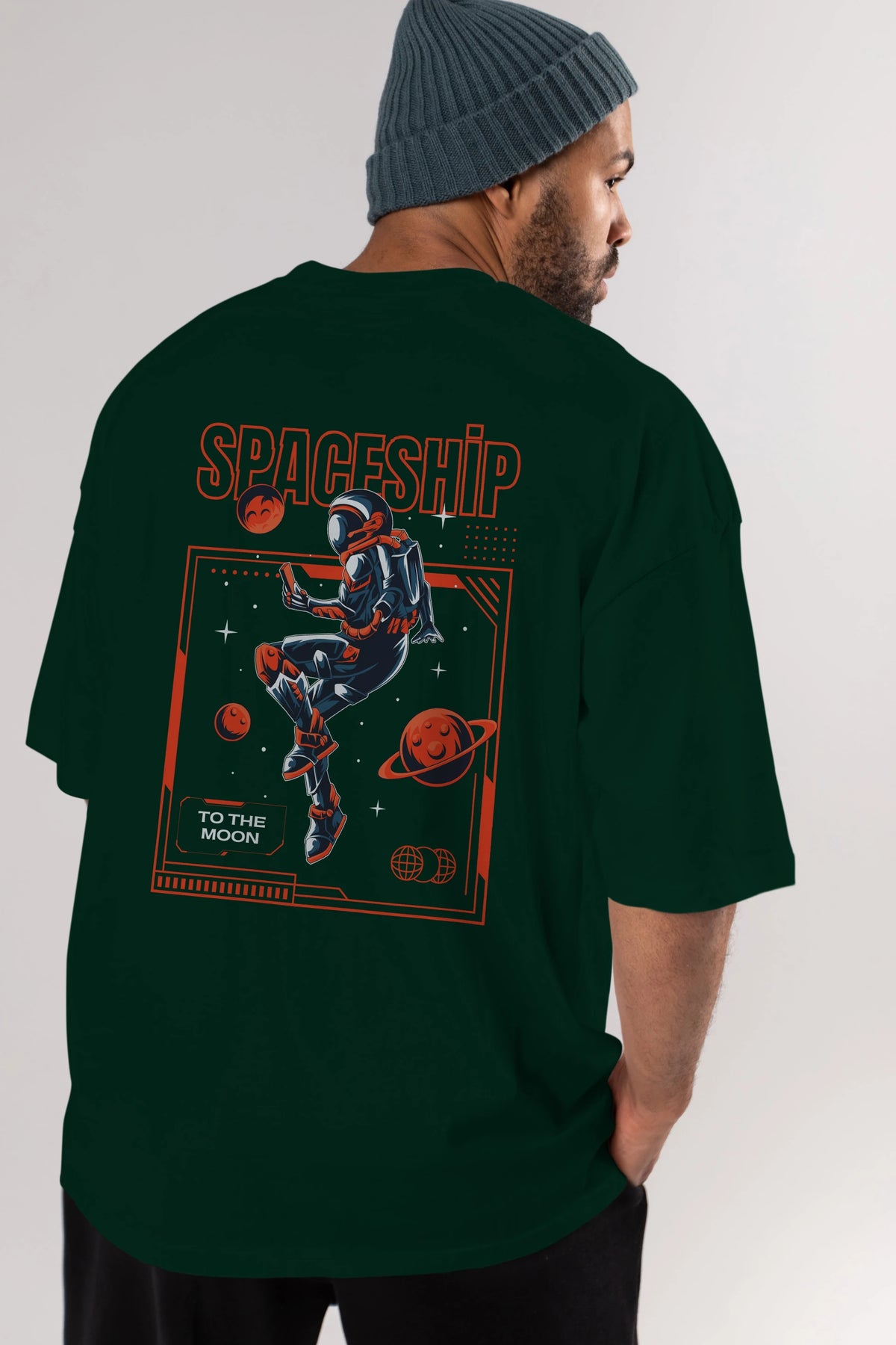 Spaceship Arka Baskılı Oversize t-shirt Erkek Kadın Unisex