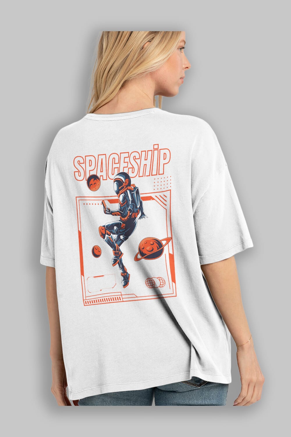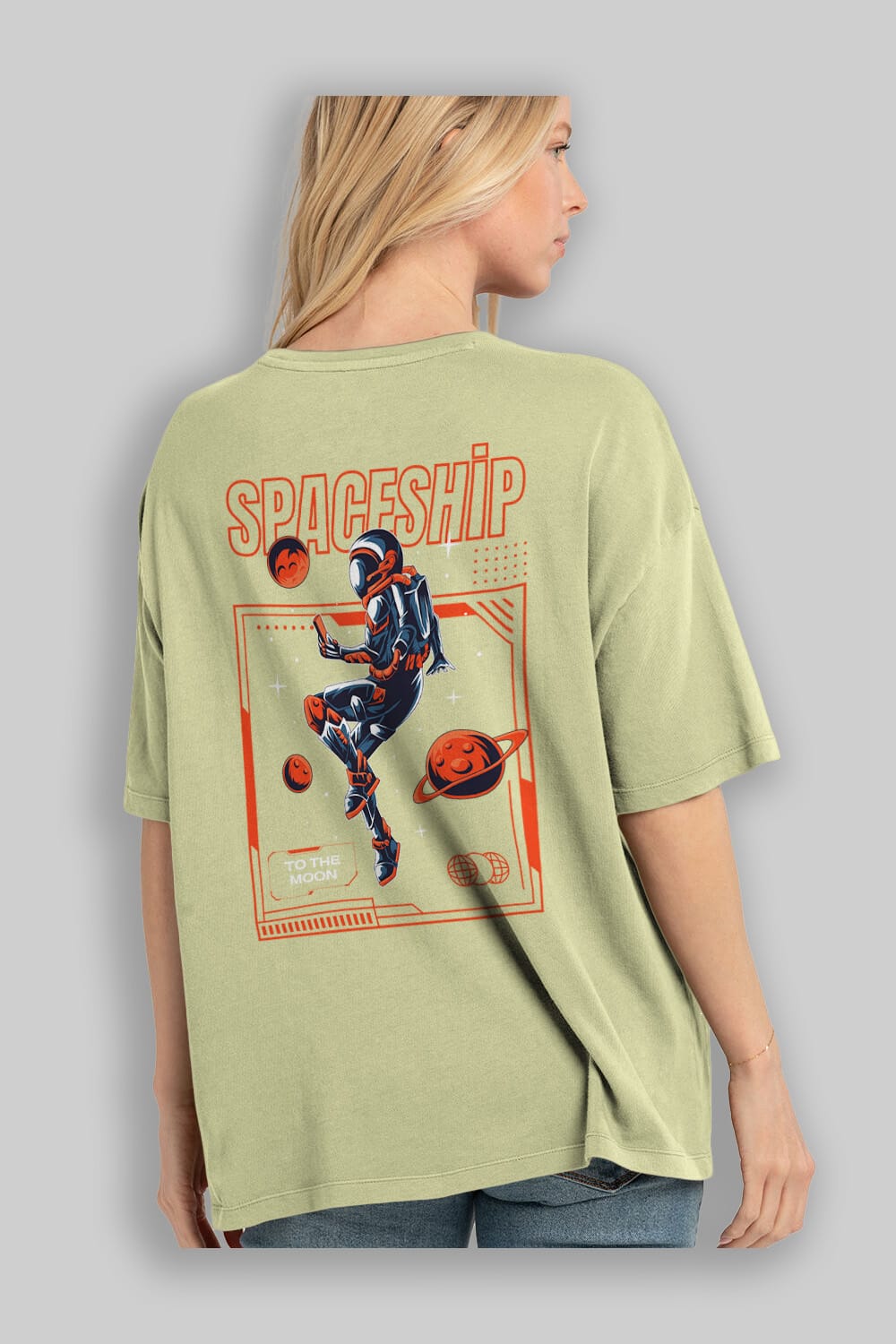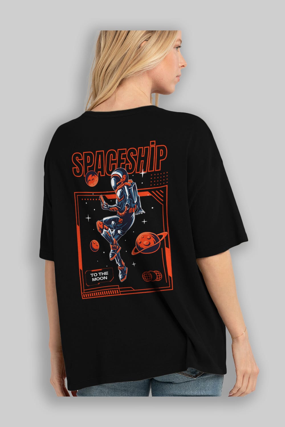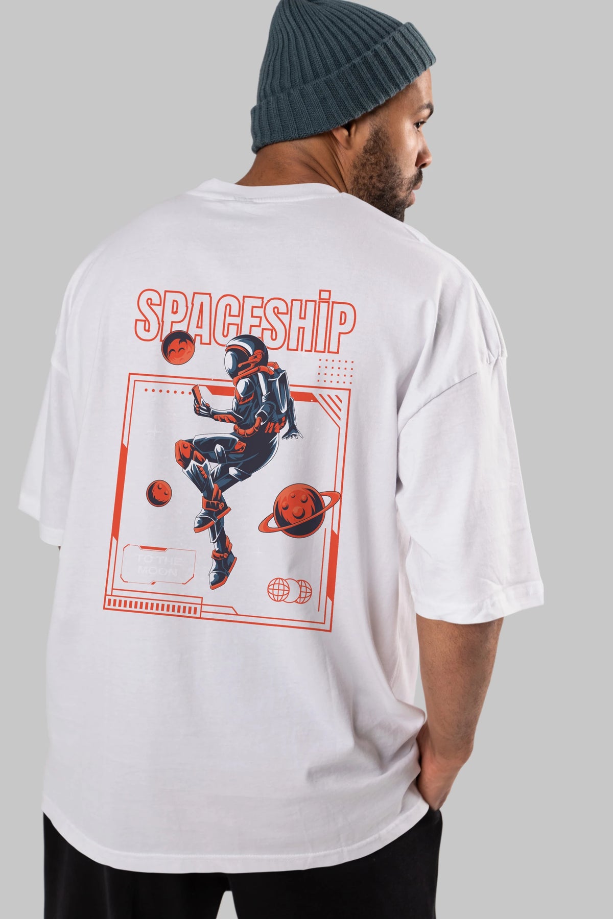 Spaceship Arka Baskılı Oversize t-shirt Erkek Kadın Unisex