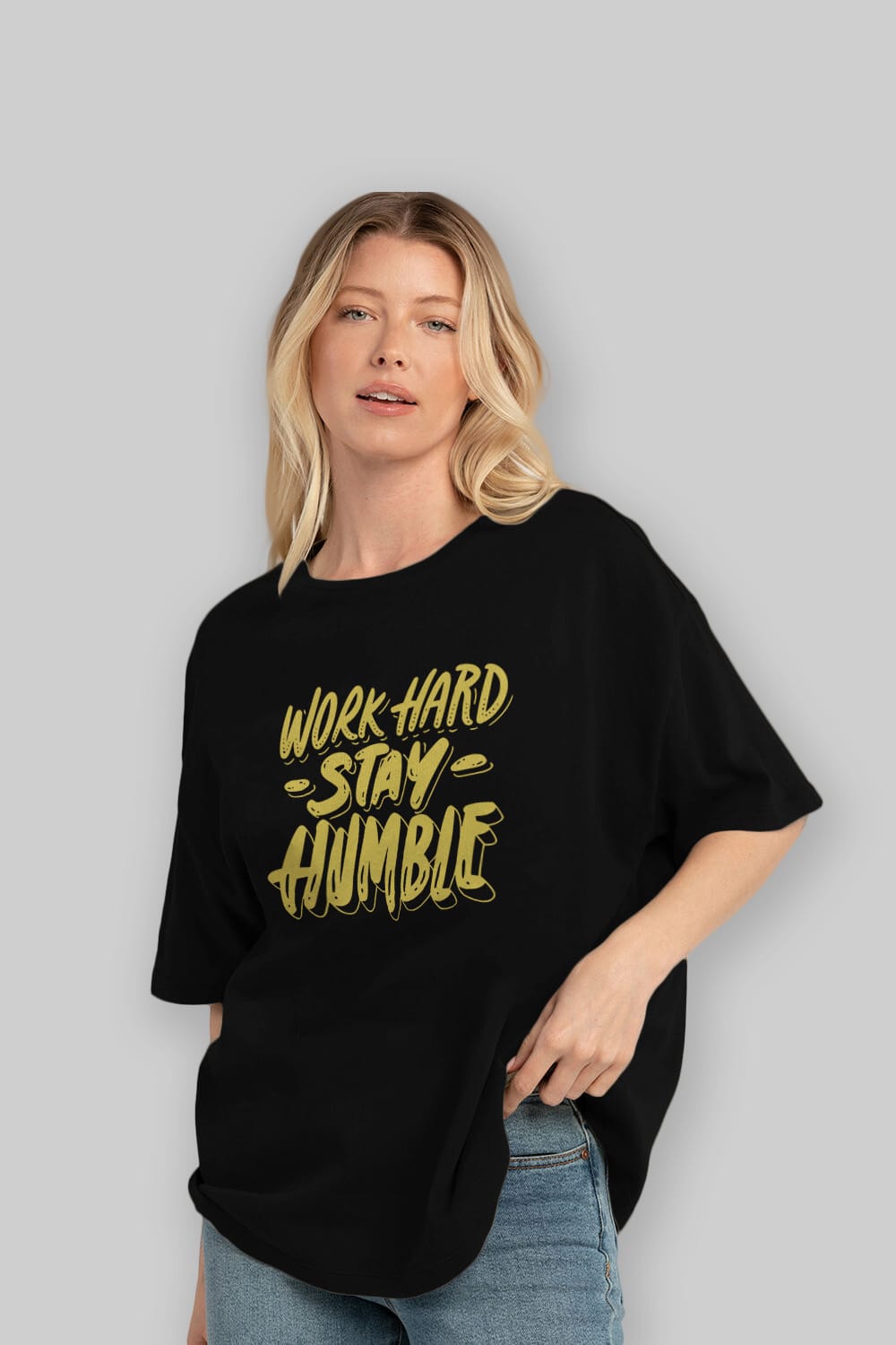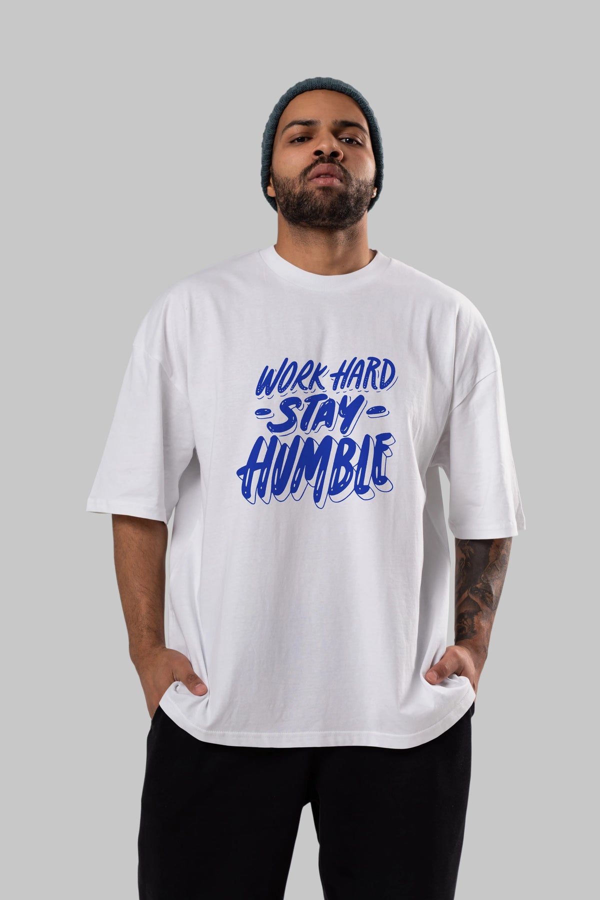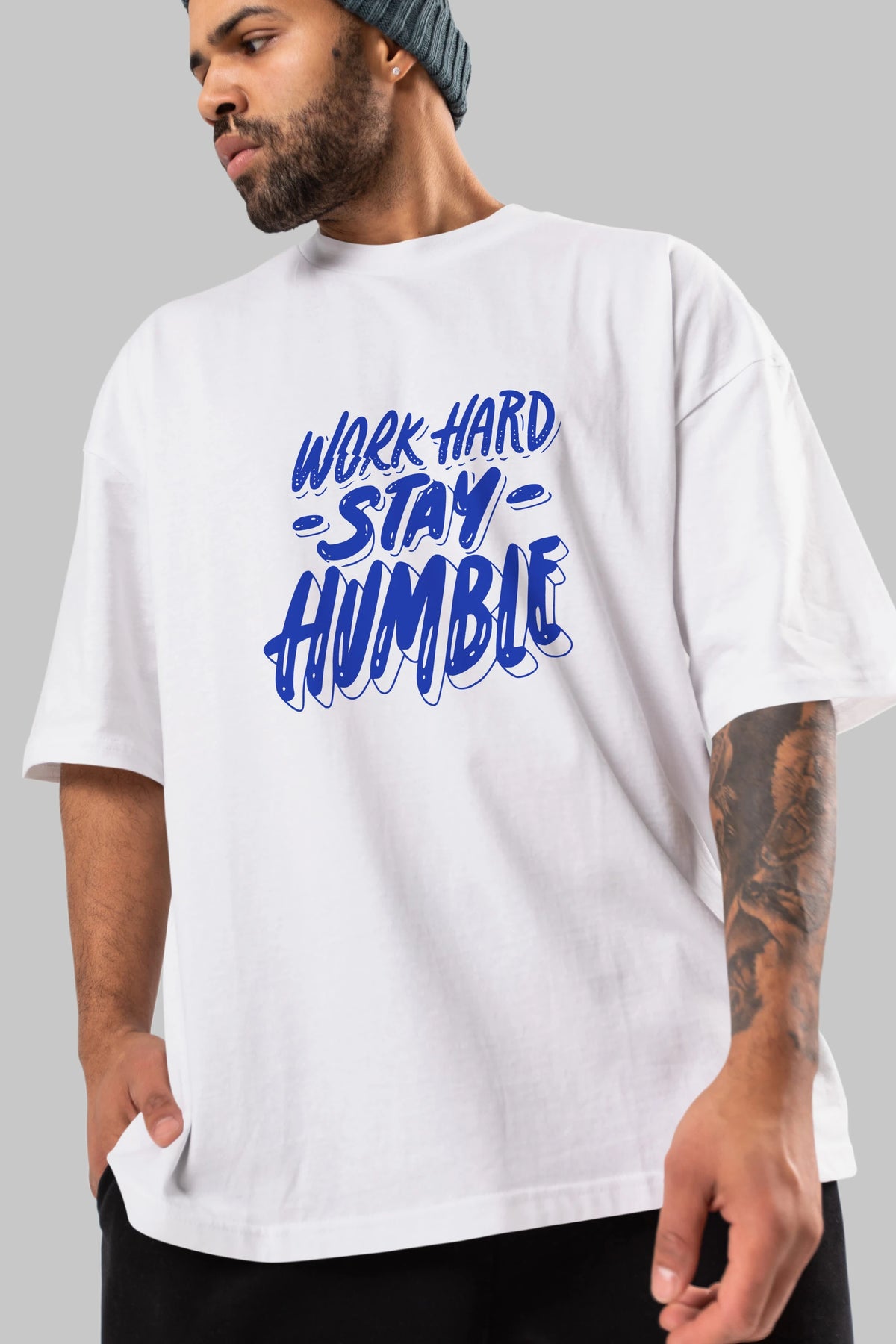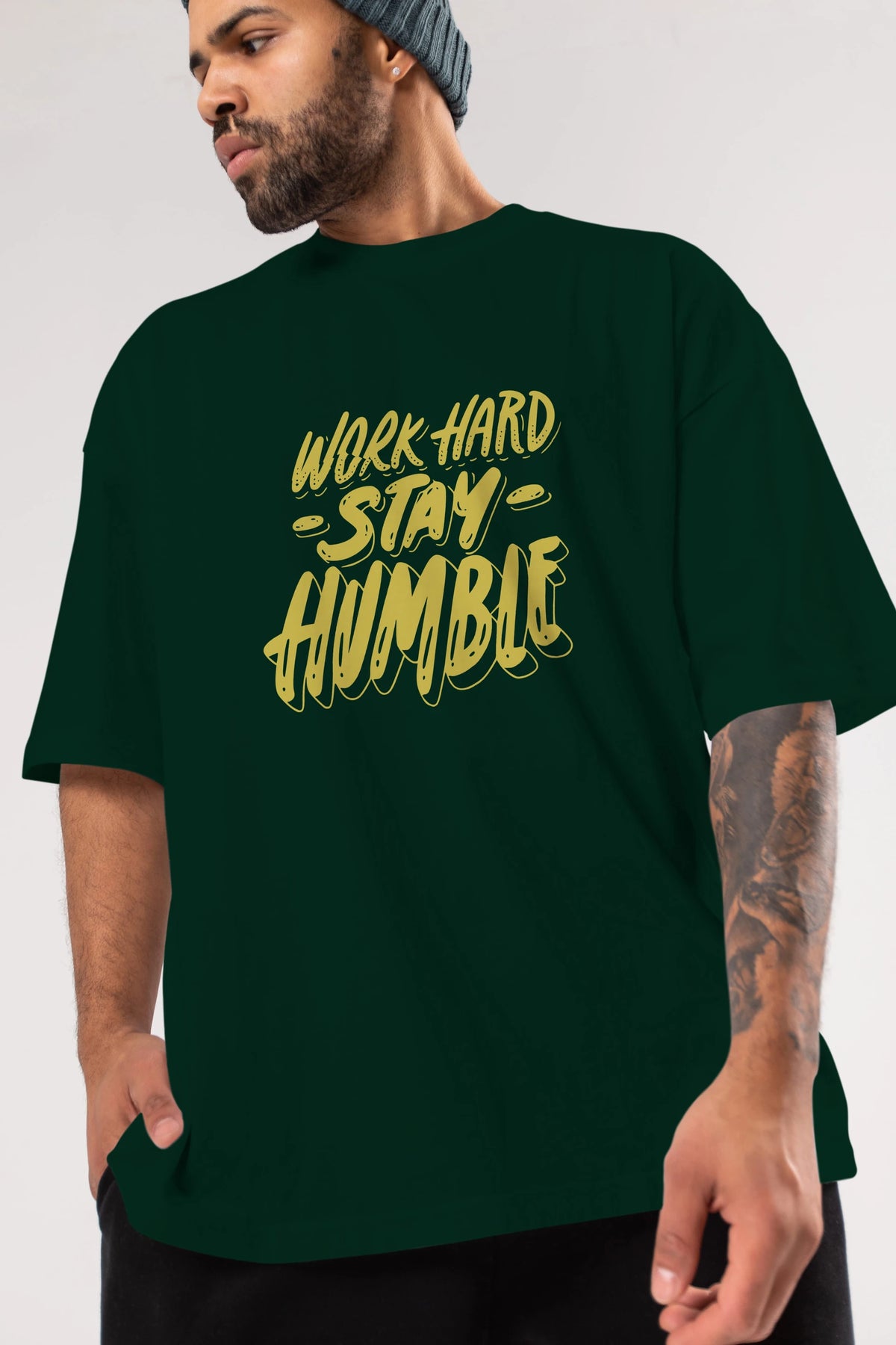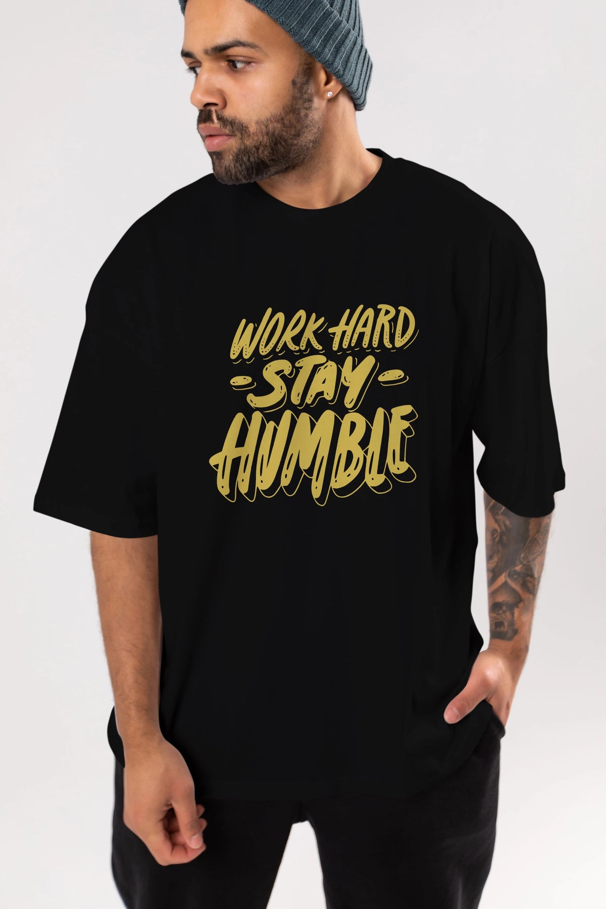 Word Hard Yazılı Ön Baskılı Oversize t-shirt Erkek Kadın Unisex