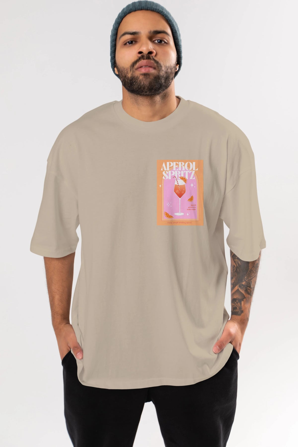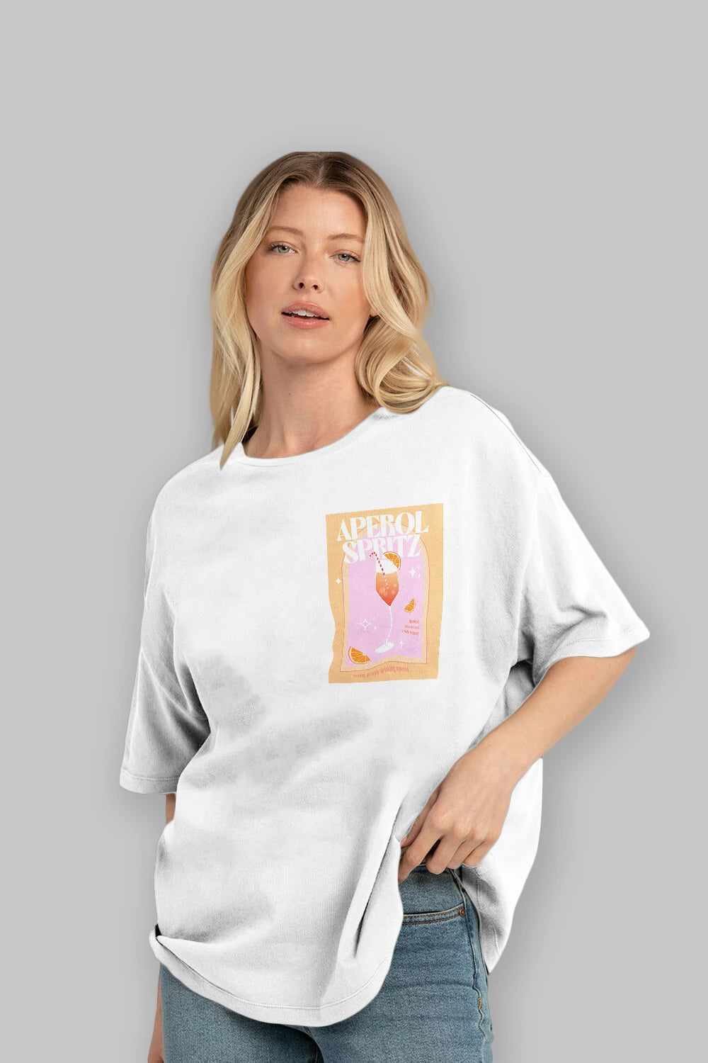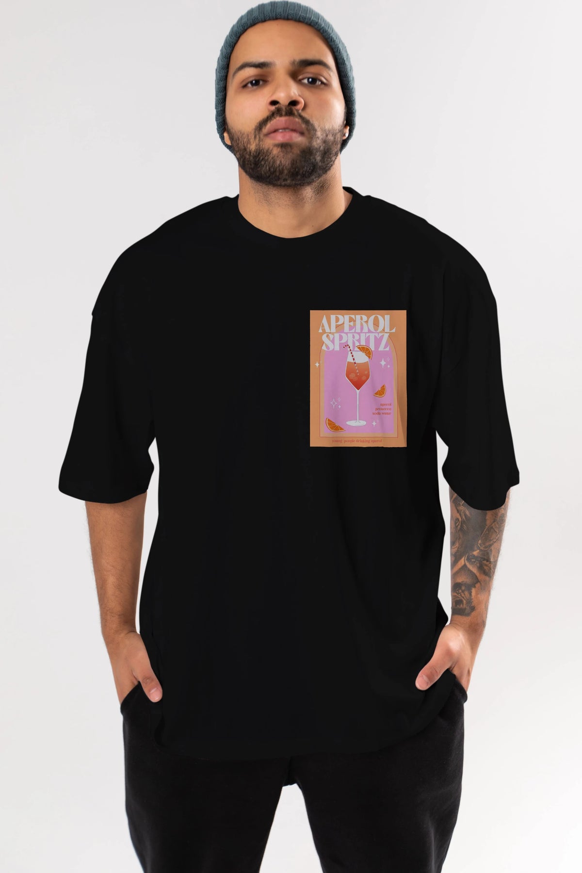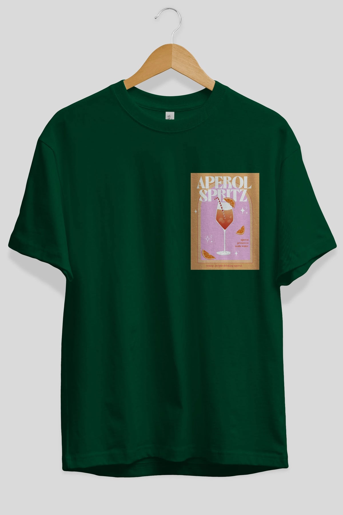 Aperol Spritz 2 Ön Sol Baskılı Oversize t-shirt Erkek Kadın Unisex %100 Pamuk Bisiklet Yaka tişort
