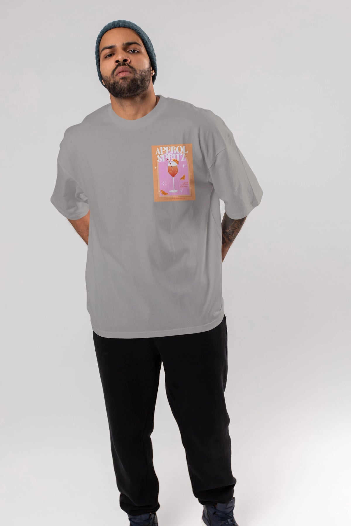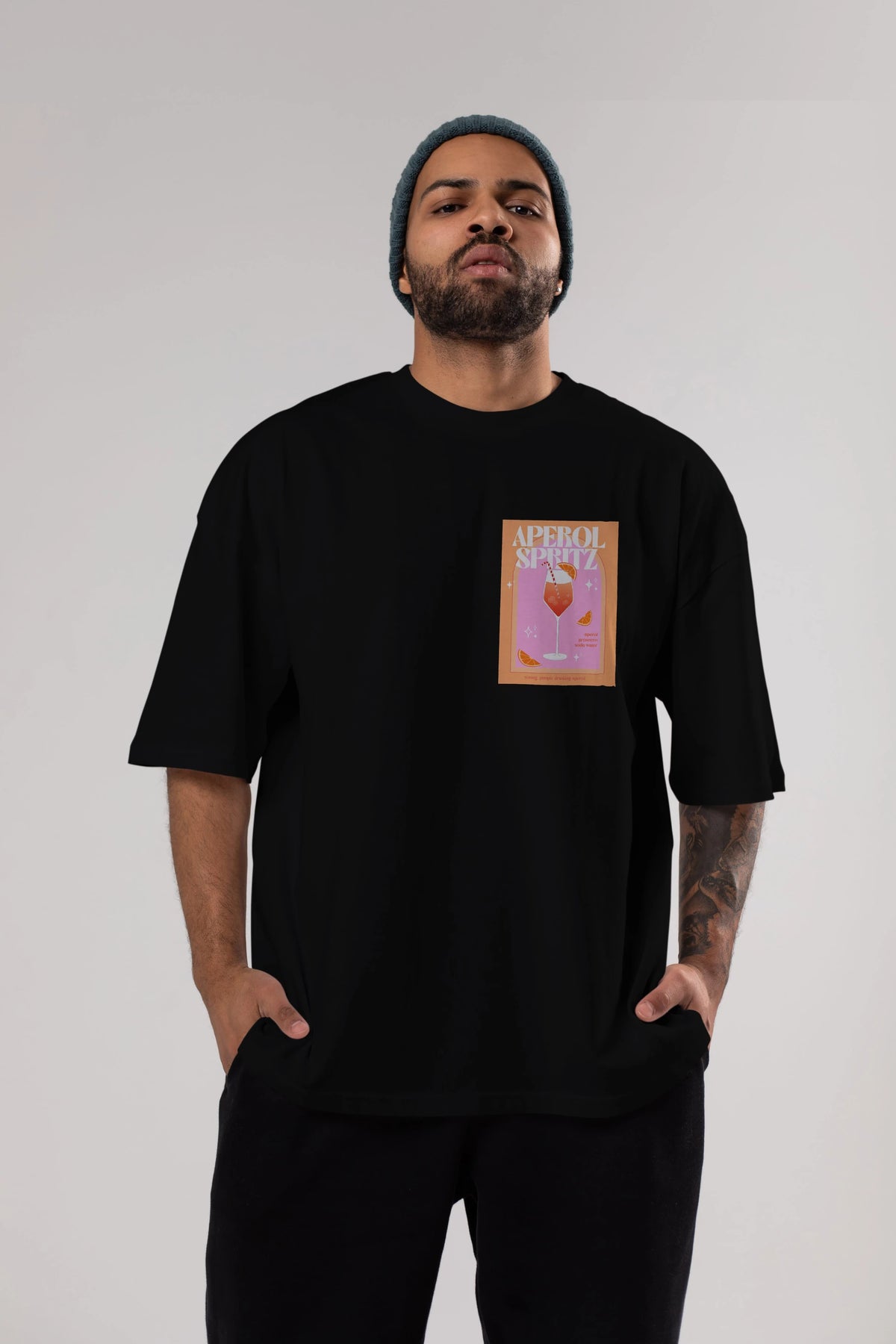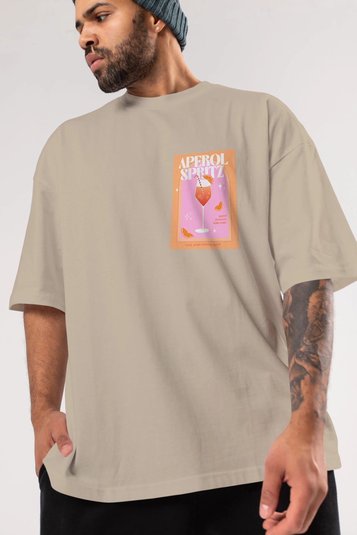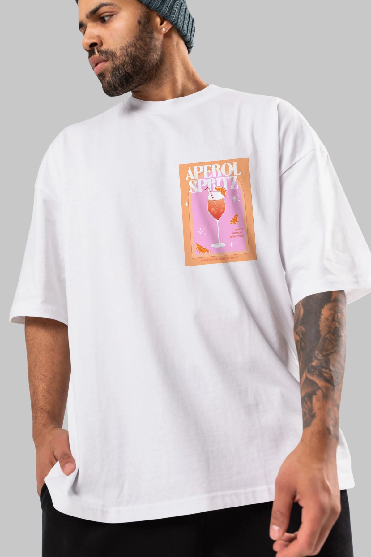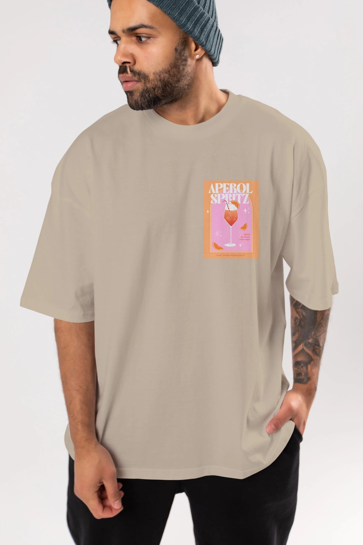 Aperol Spritz 2 Ön Sol Baskılı Oversize t-shirt Erkek Kadın Unisex %100 Pamuk Bisiklet Yaka tişort