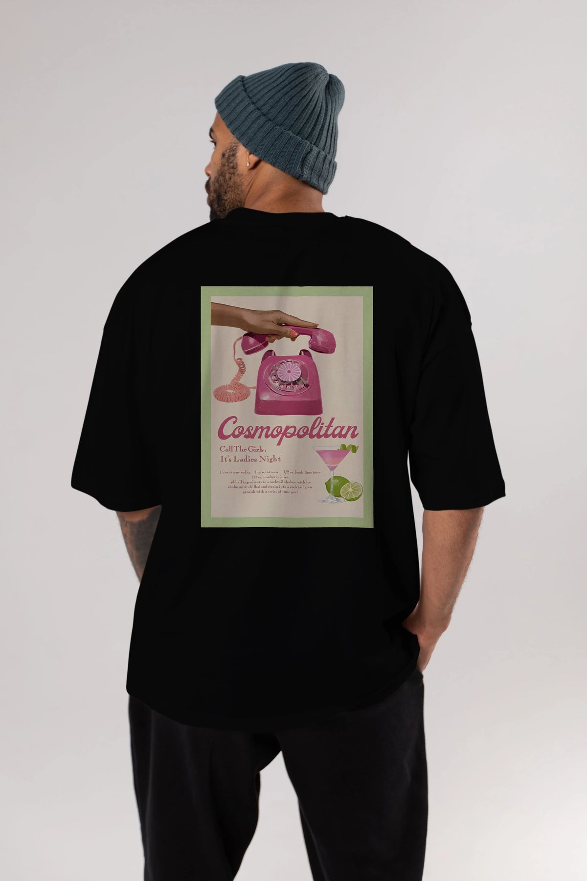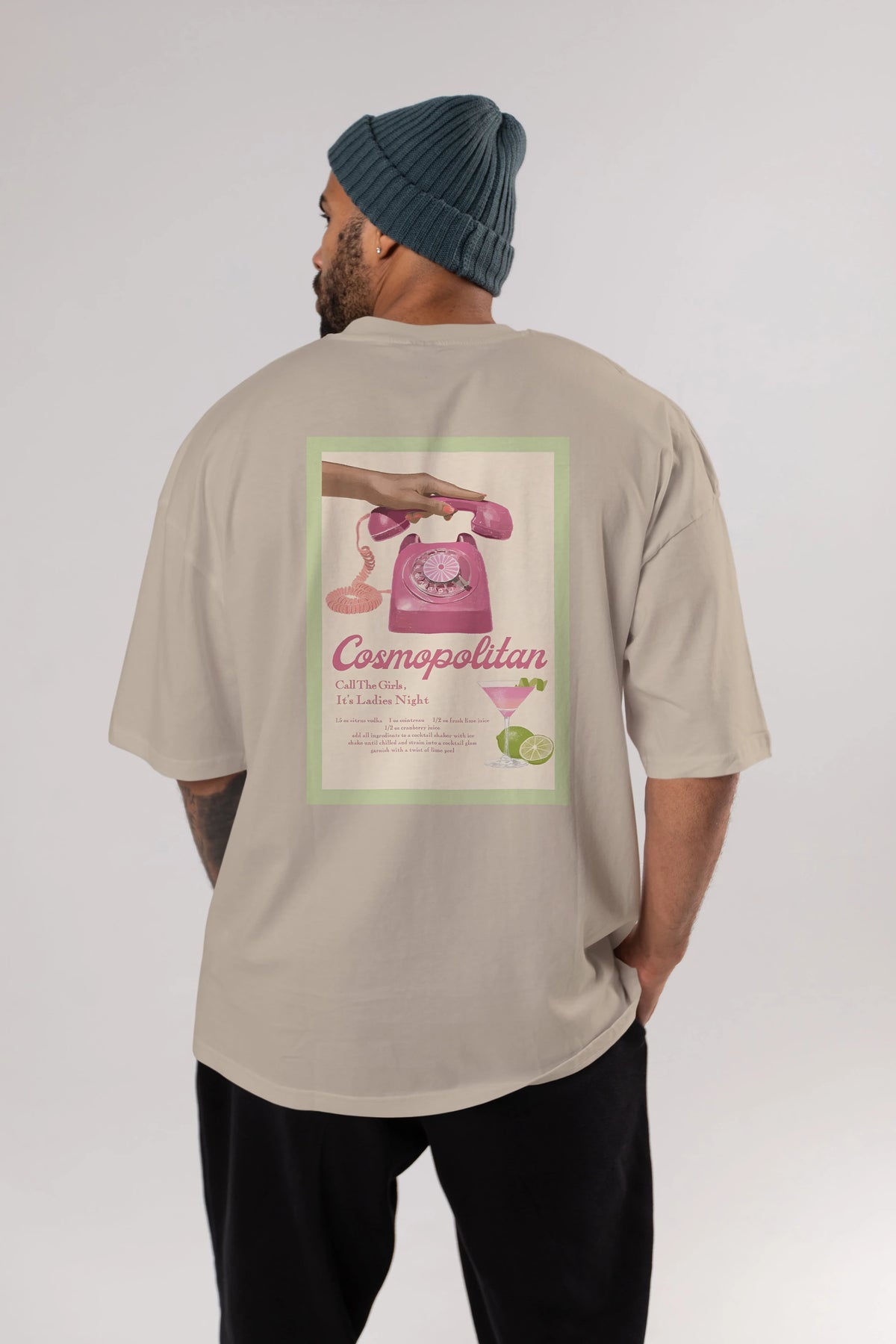 Cosmopolitan 5 Arka Baskılı Oversize t-shirt Erkek Kadın Unisex %100 Pamuk Bisiklet Yaka tişort