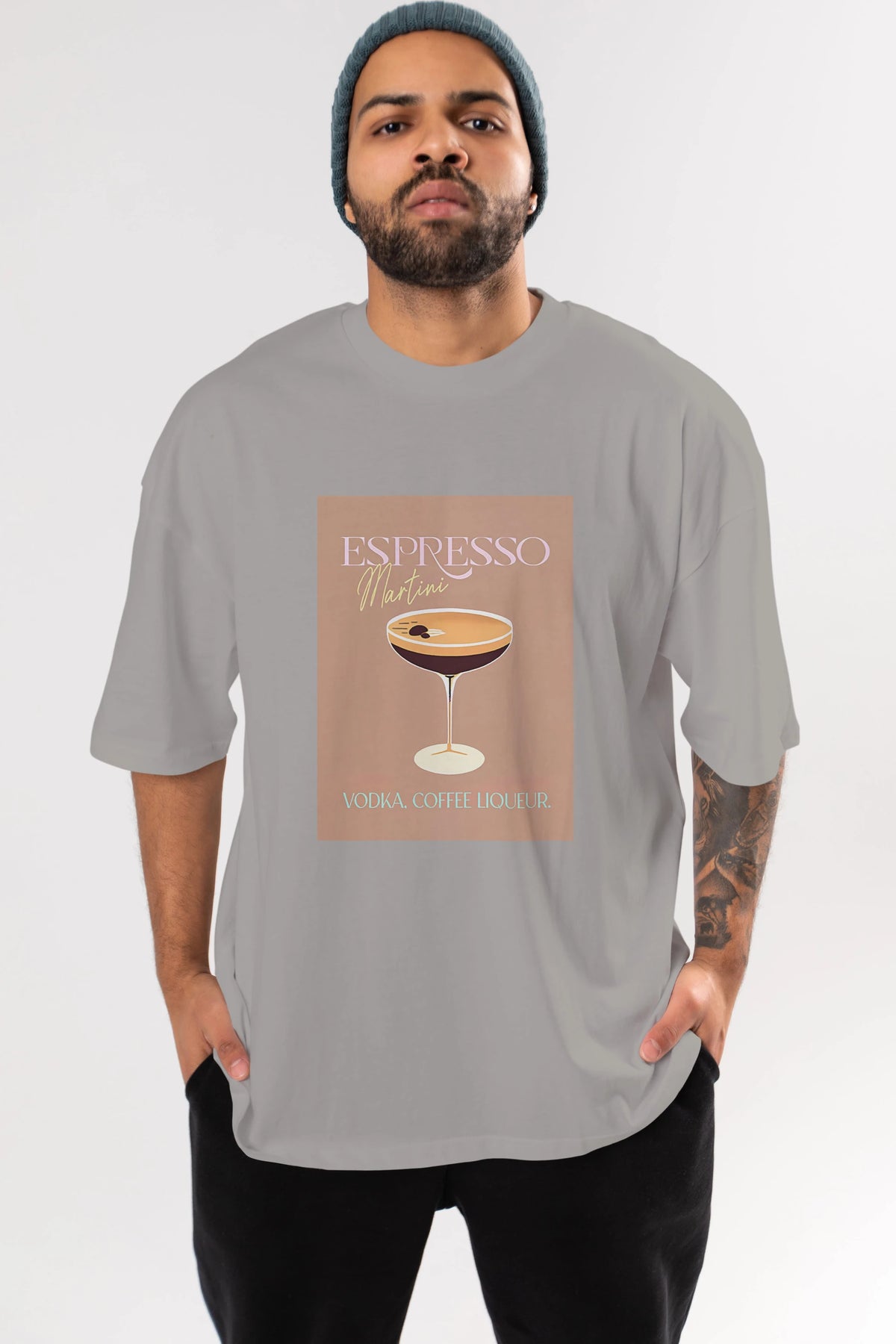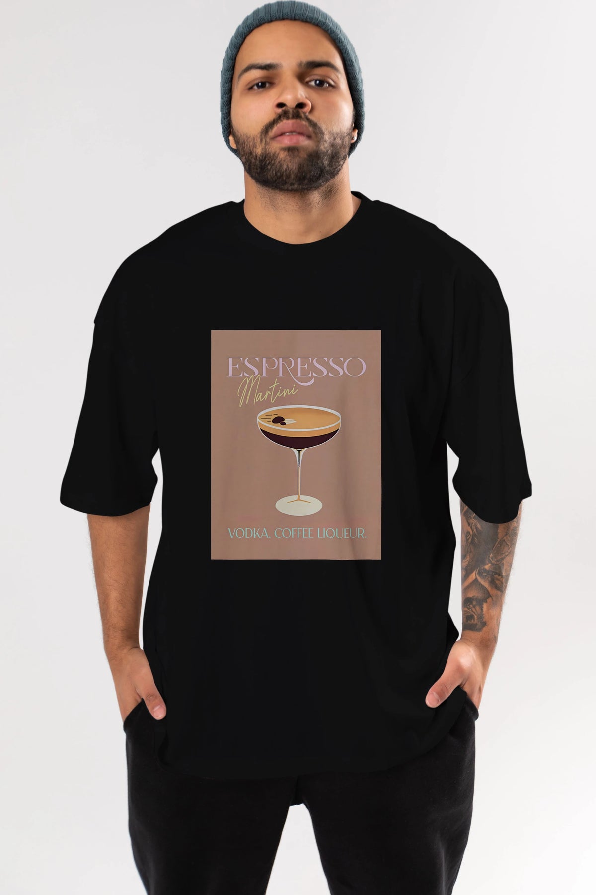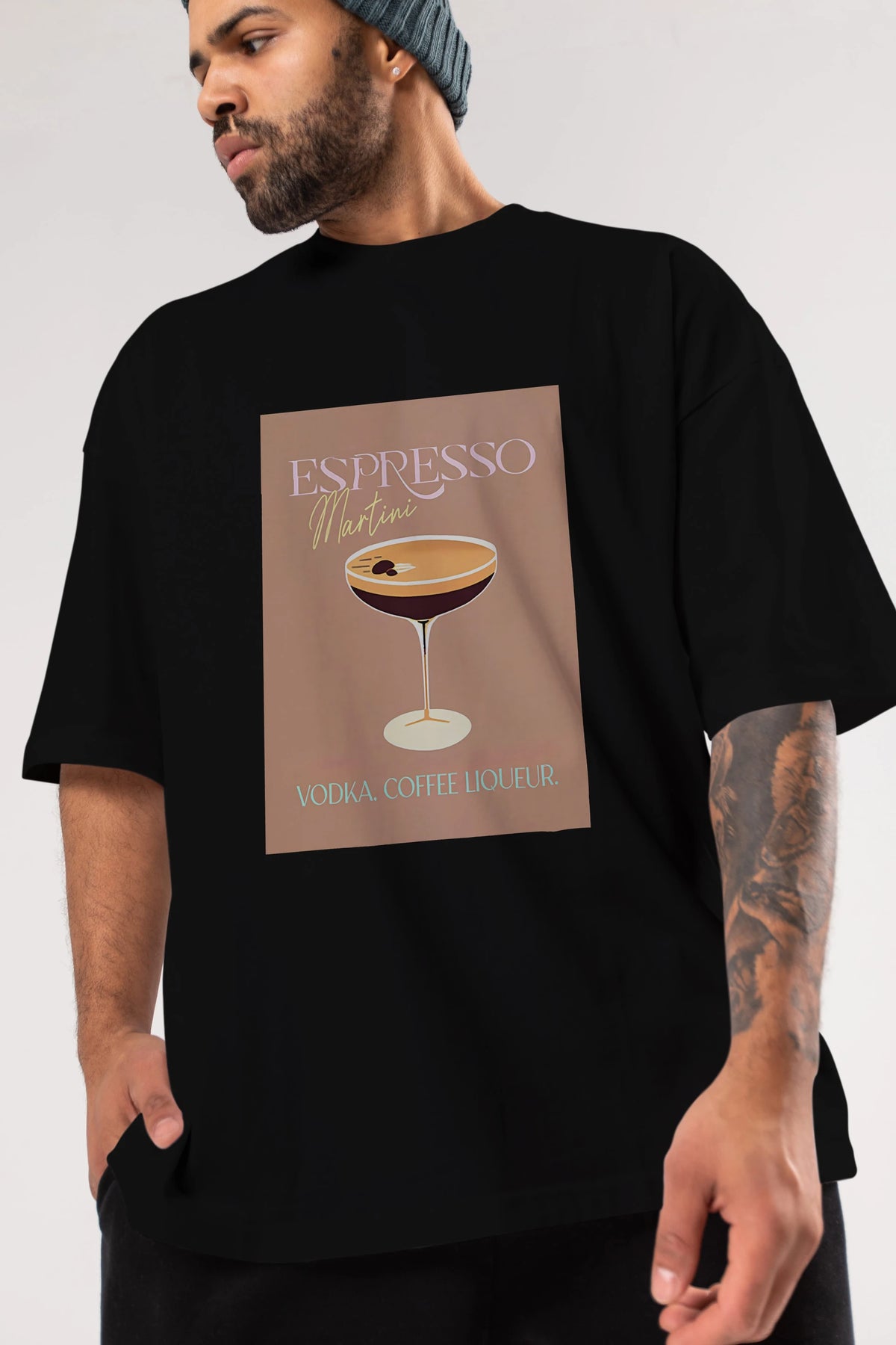 Espresso Martini Cocktail Ön Baskılı Oversize t-shirt Erkek Kadın Unisex %100 Pamuk Bisiklet Yaka tişort