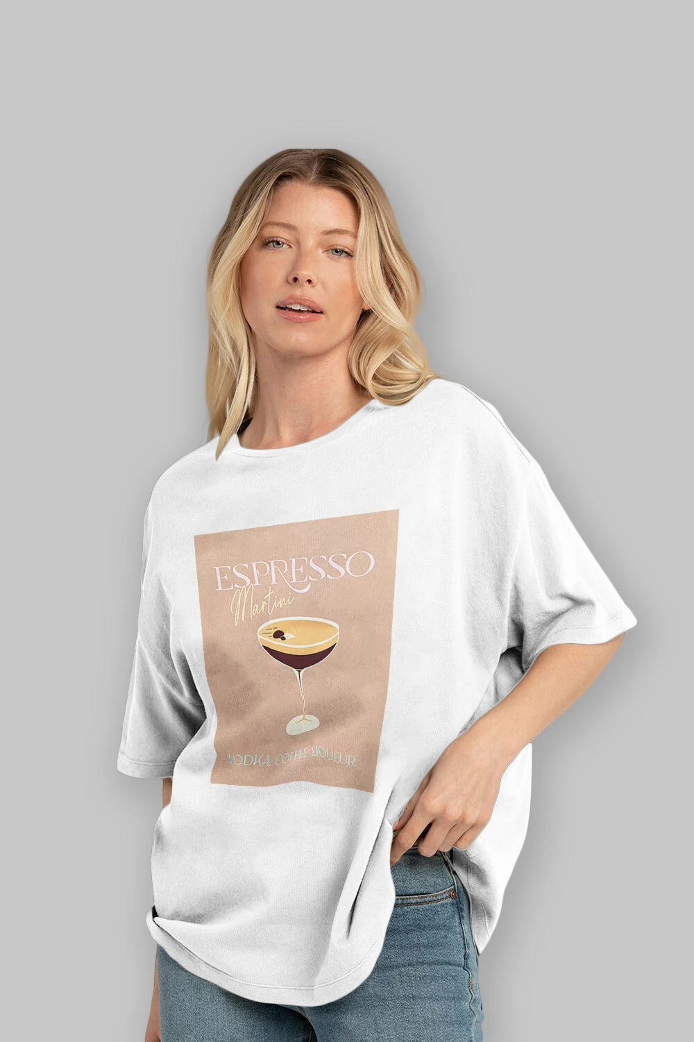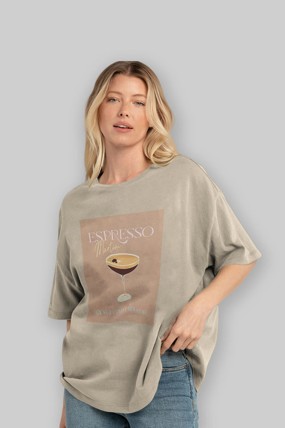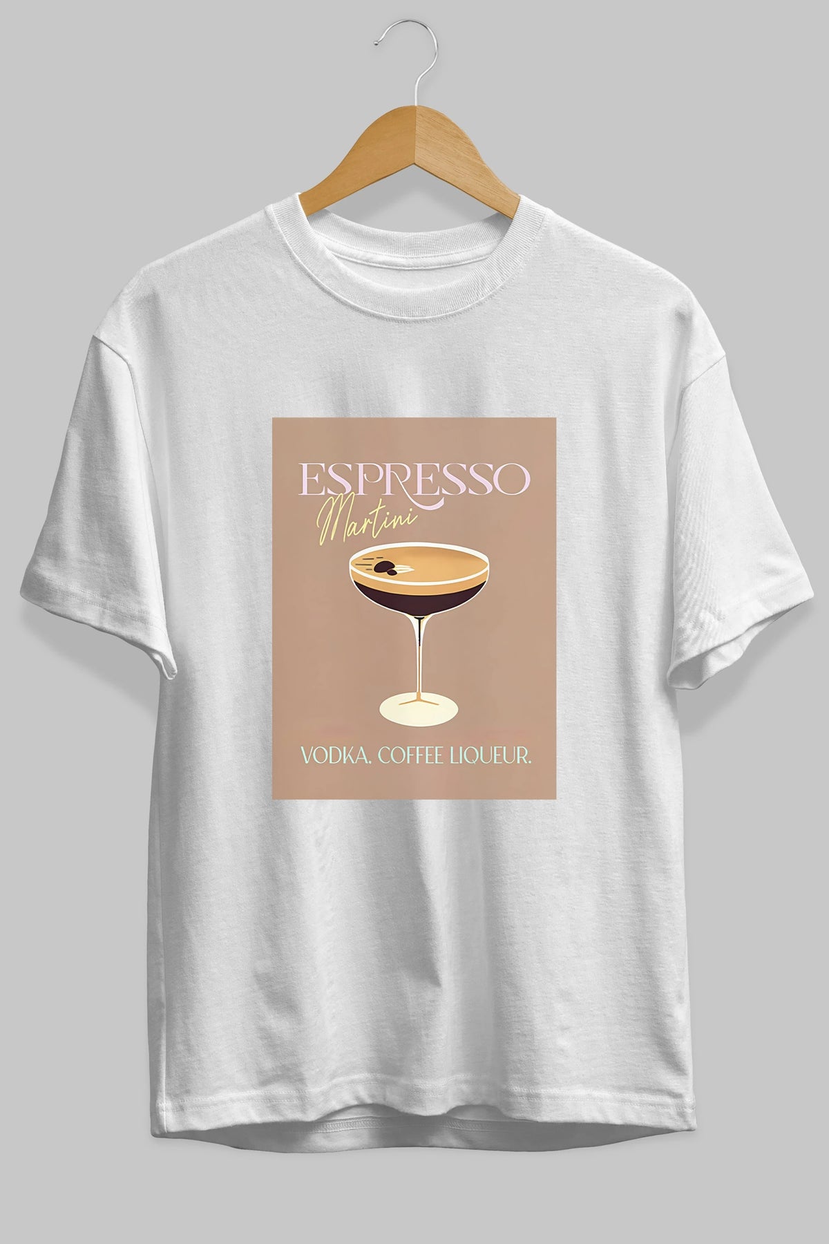 Espresso Martini Cocktail Ön Baskılı Oversize t-shirt Erkek Kadın Unisex %100 Pamuk Bisiklet Yaka tişort