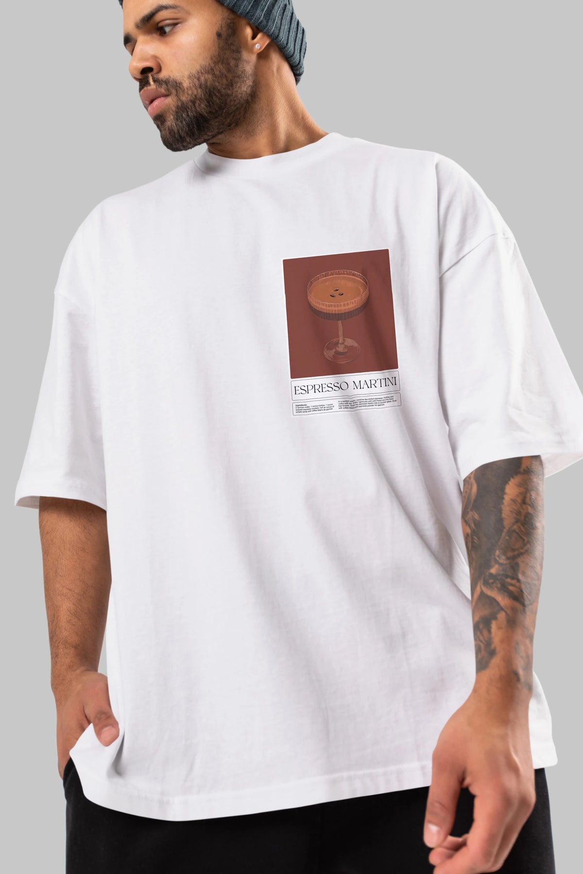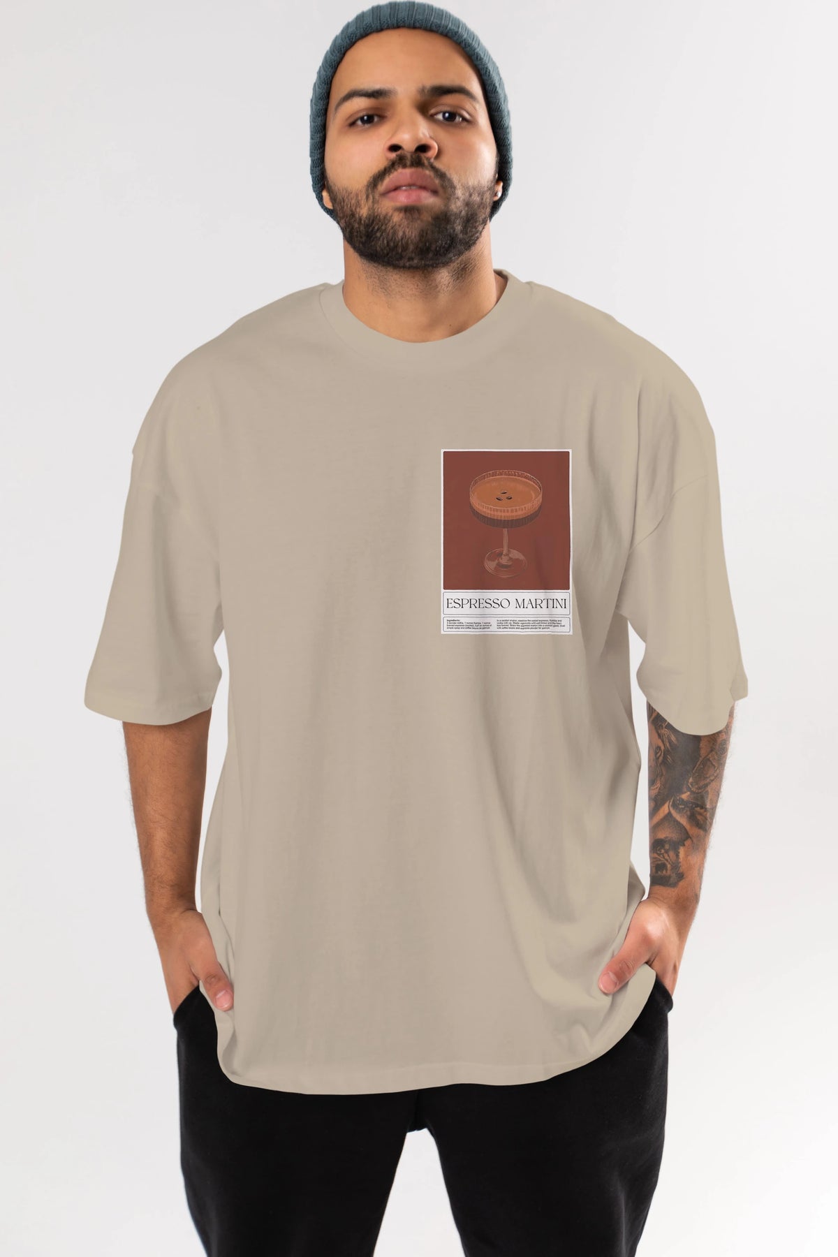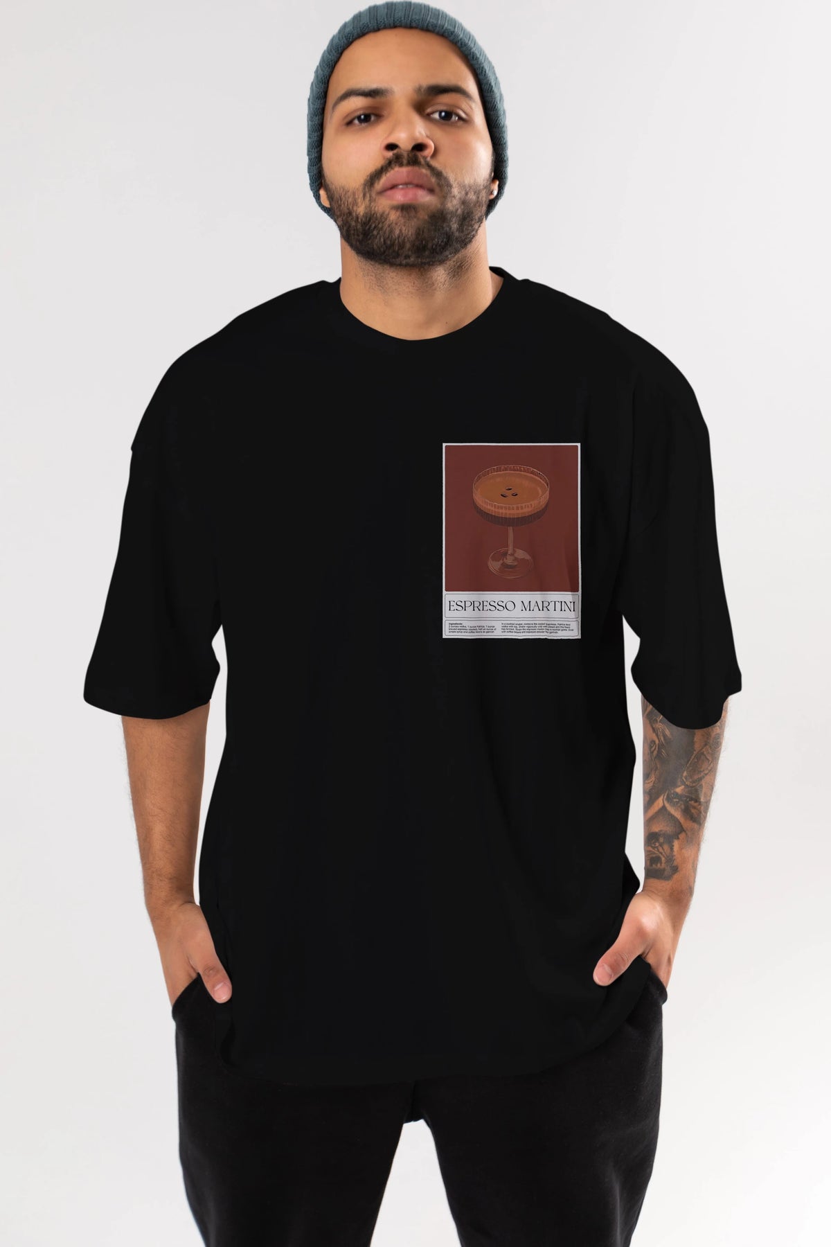Espresso Martini Ön Sol Baskılı Oversize t-shirt Erkek Kadın Unisex %100 Pamuk Bisiklet Yaka tişort