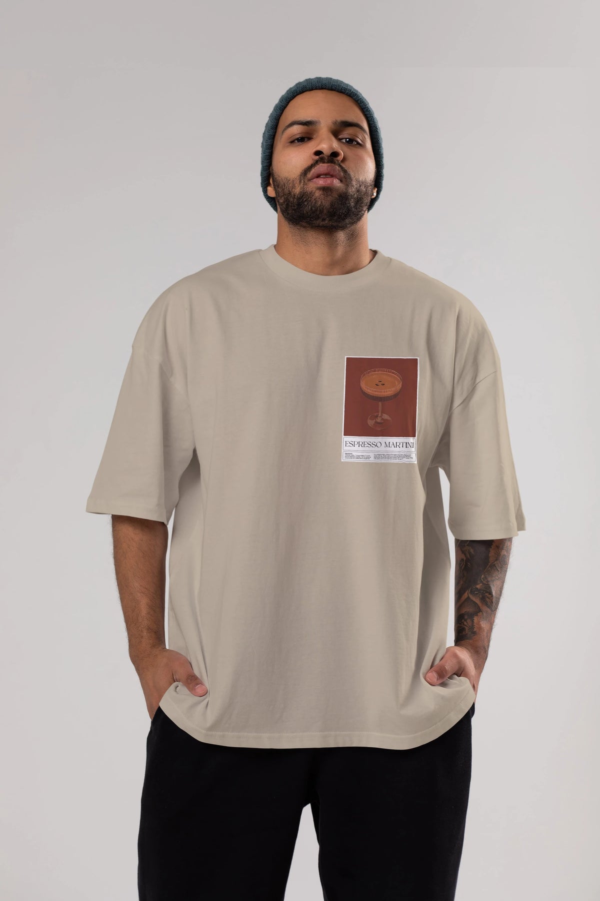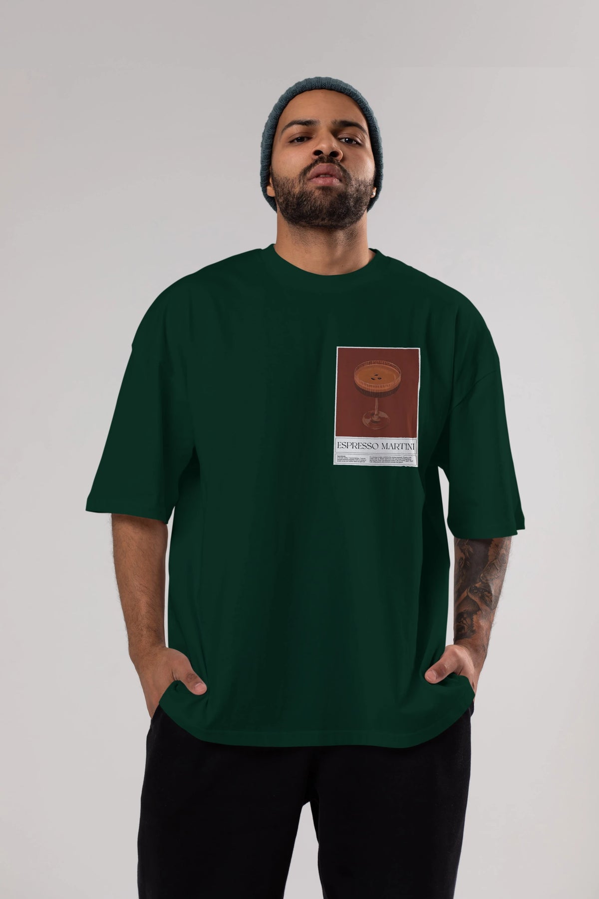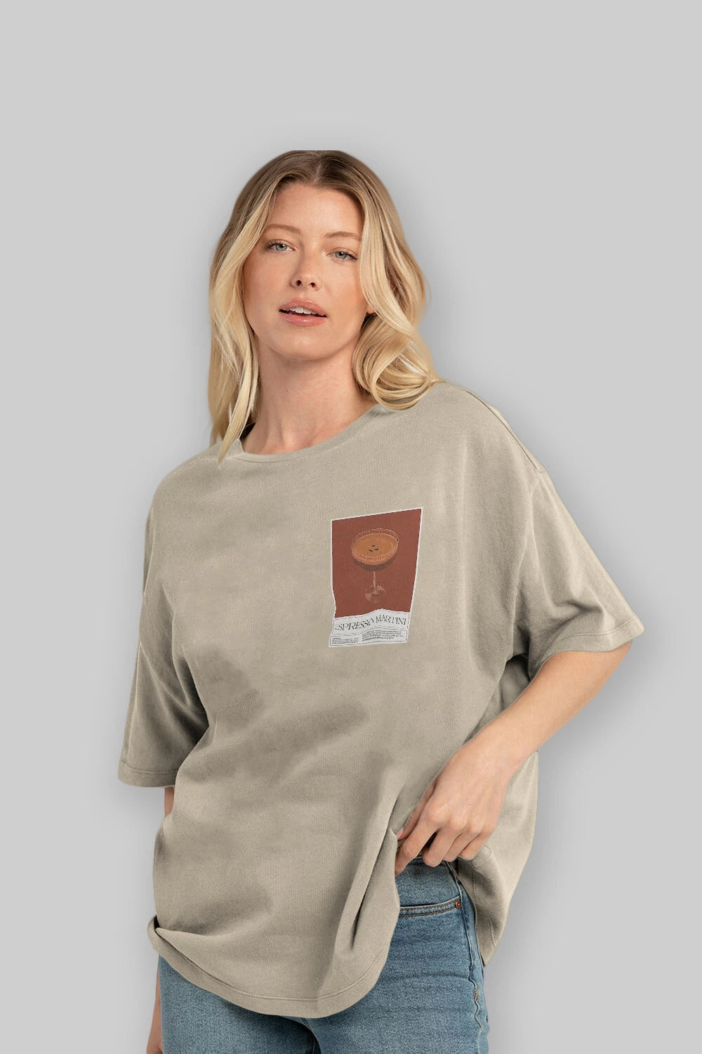 Espresso Martini Ön Sol Baskılı Oversize t-shirt Erkek Kadın Unisex %100 Pamuk Bisiklet Yaka tişort