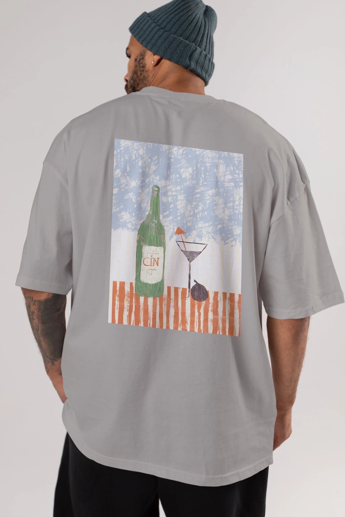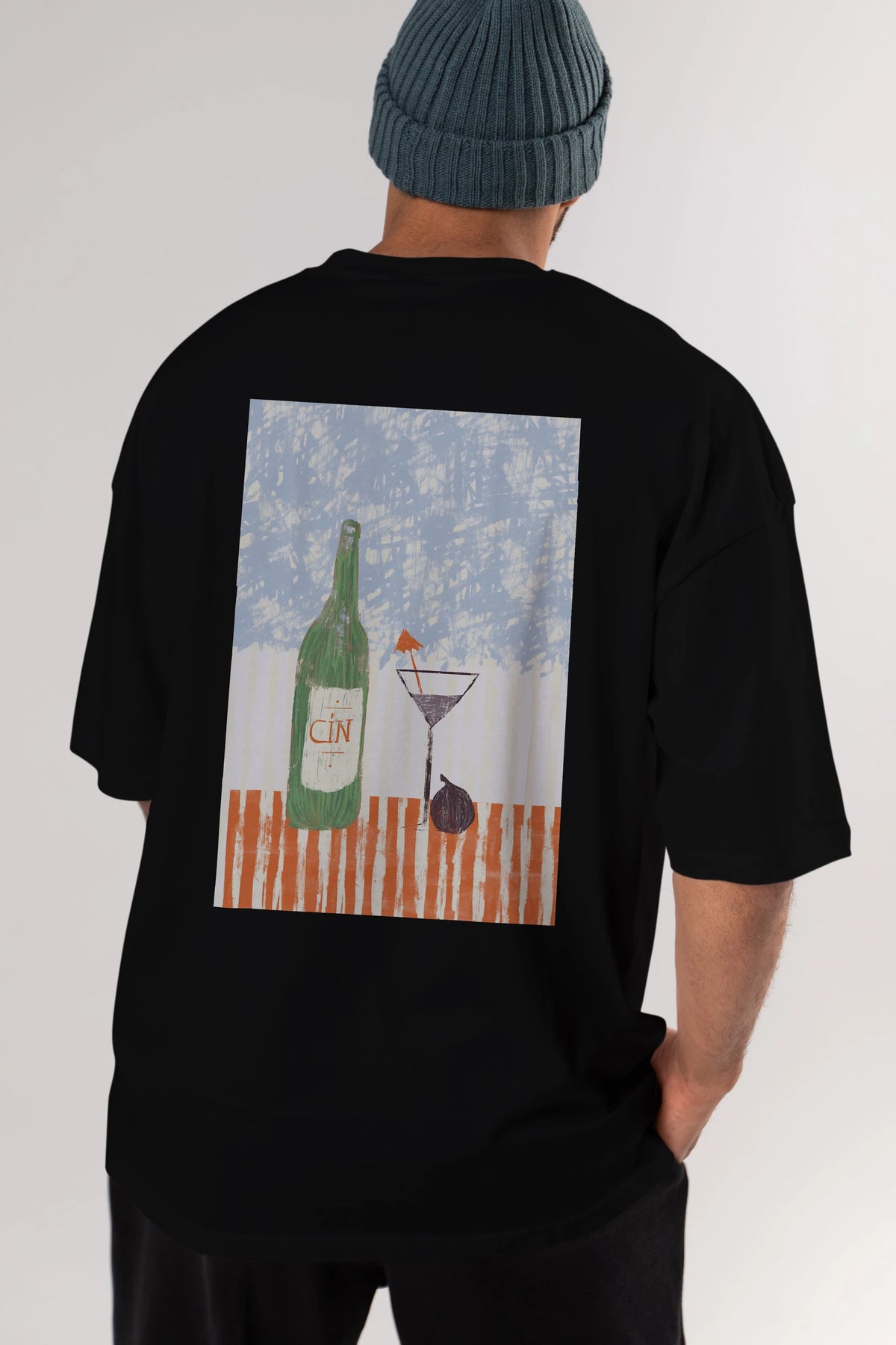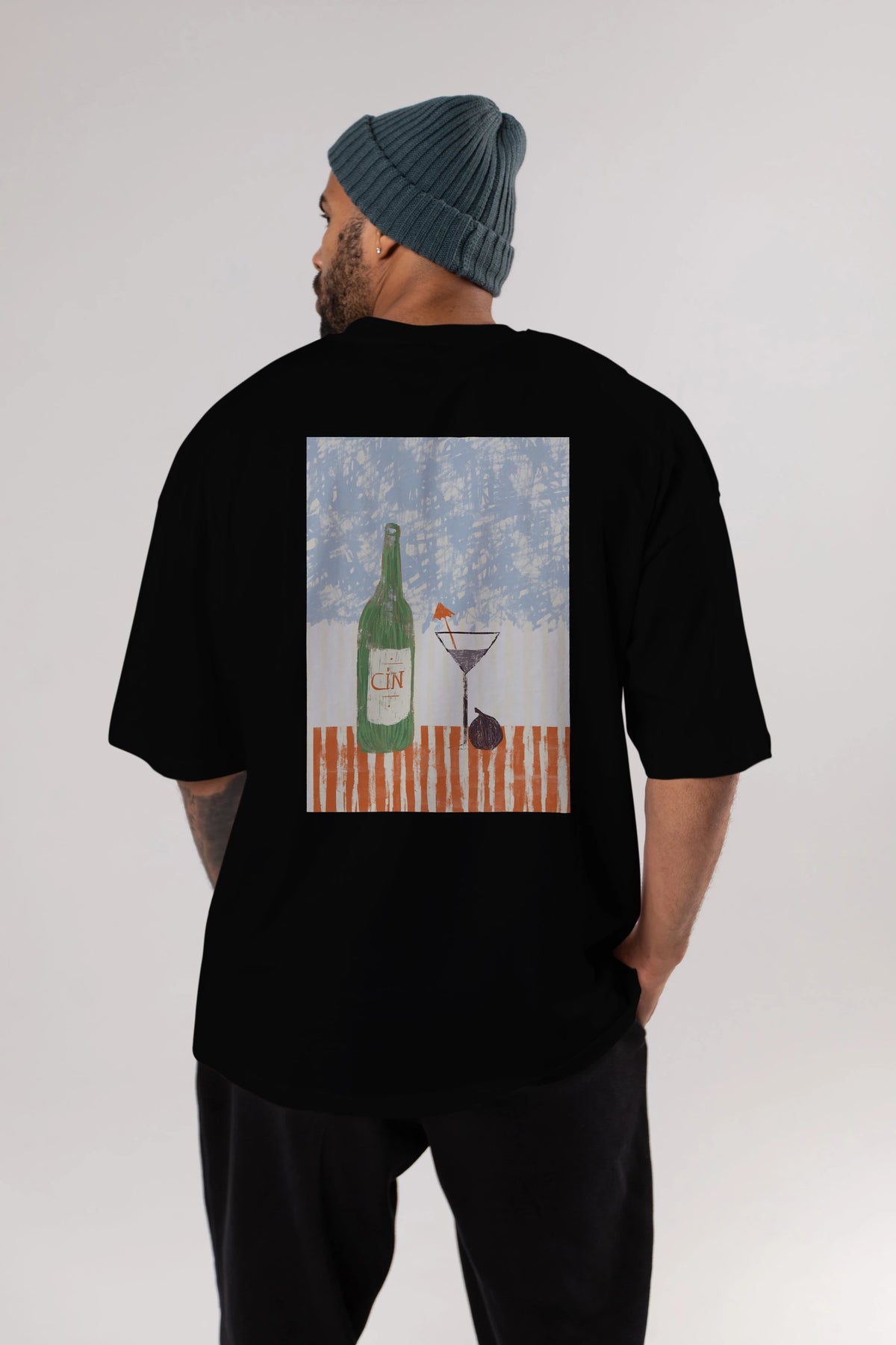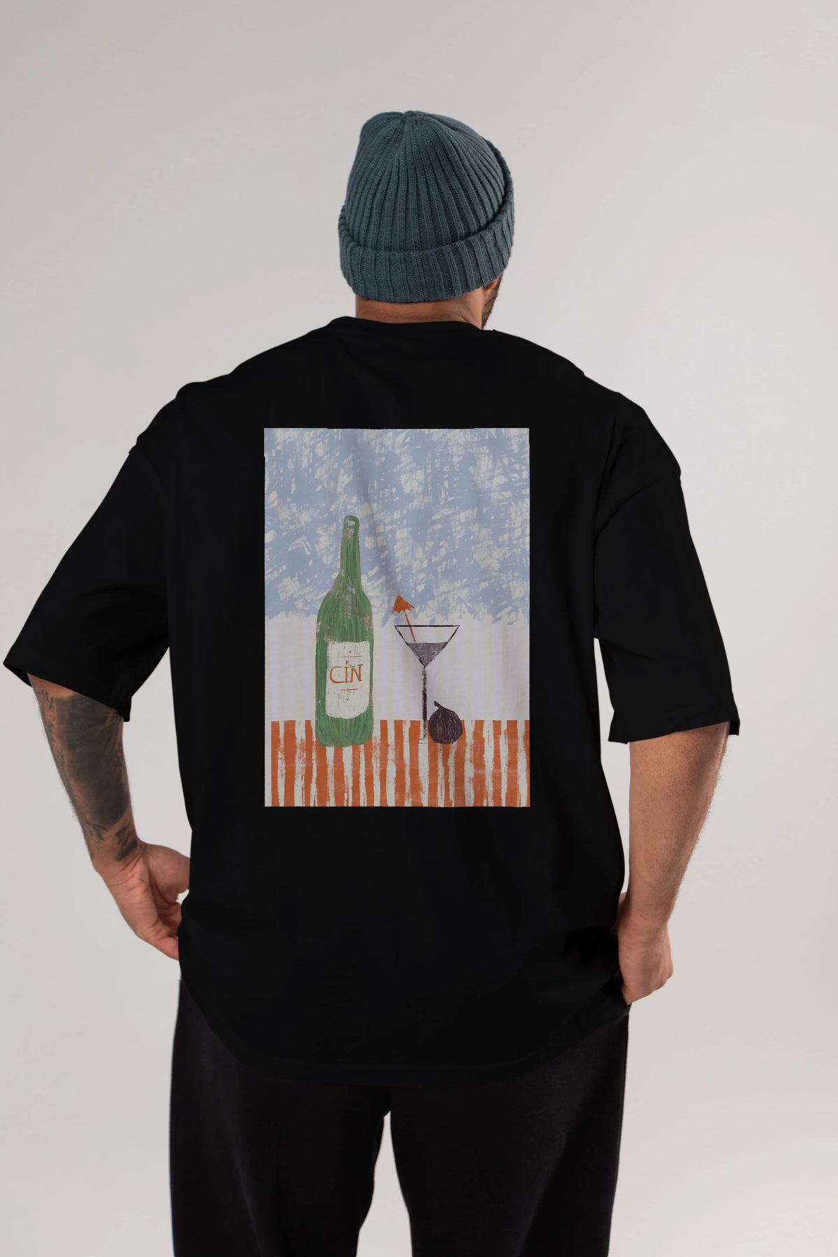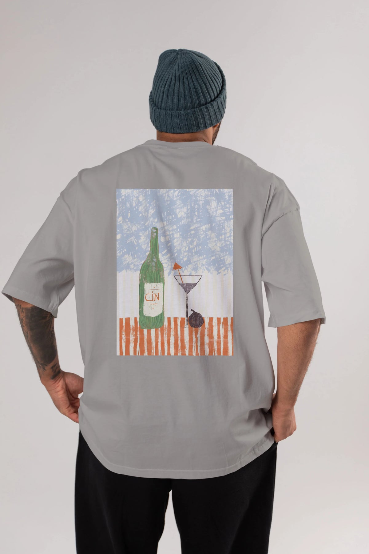 Gin Arka Baskılı Oversize t-shirt Erkek Kadın Unisex %100 Pamuk Bisiklet Yaka tişort