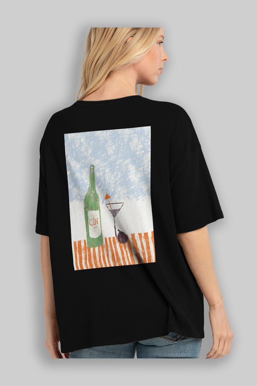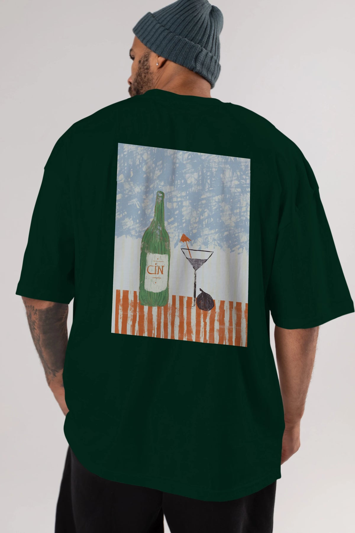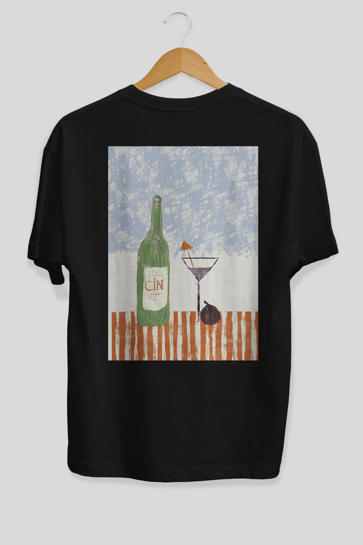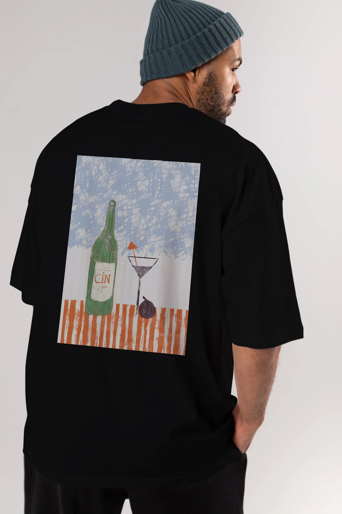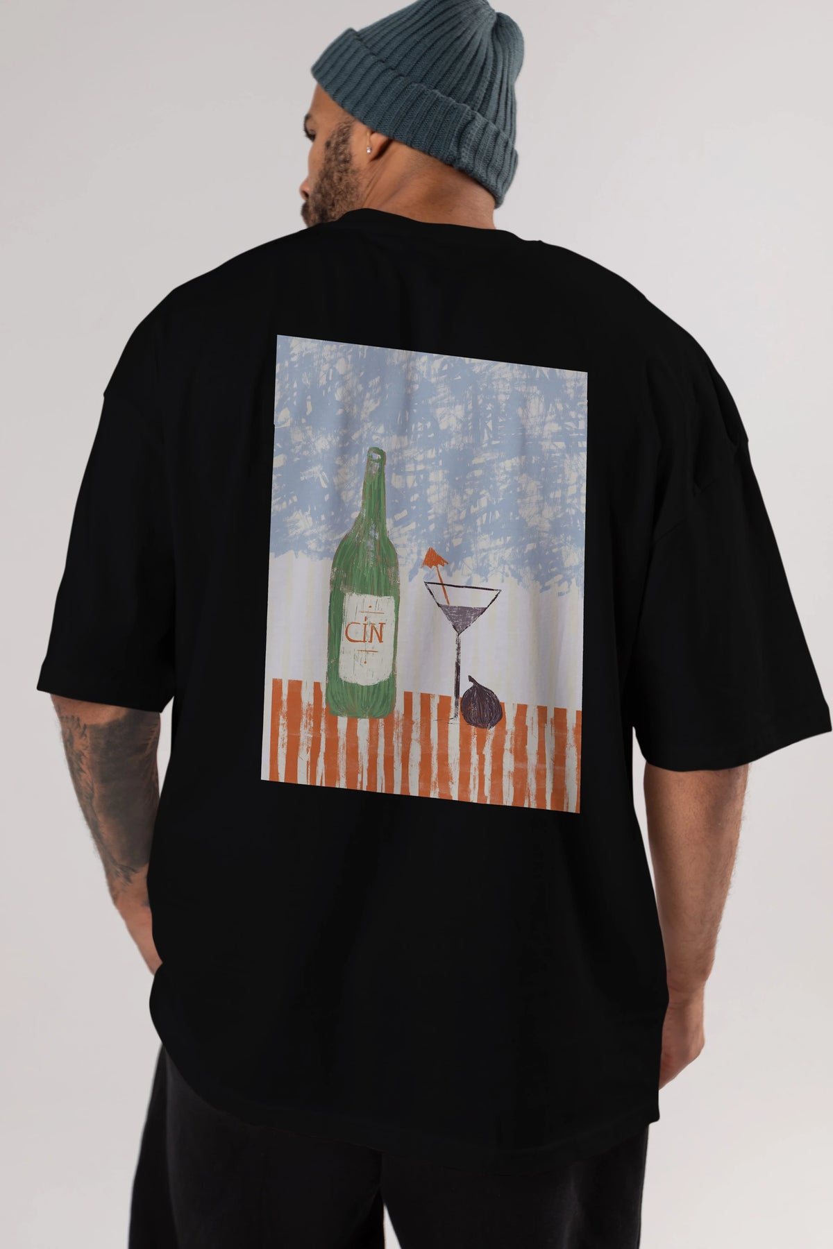 Gin Arka Baskılı Oversize t-shirt Erkek Kadın Unisex %100 Pamuk Bisiklet Yaka tişort