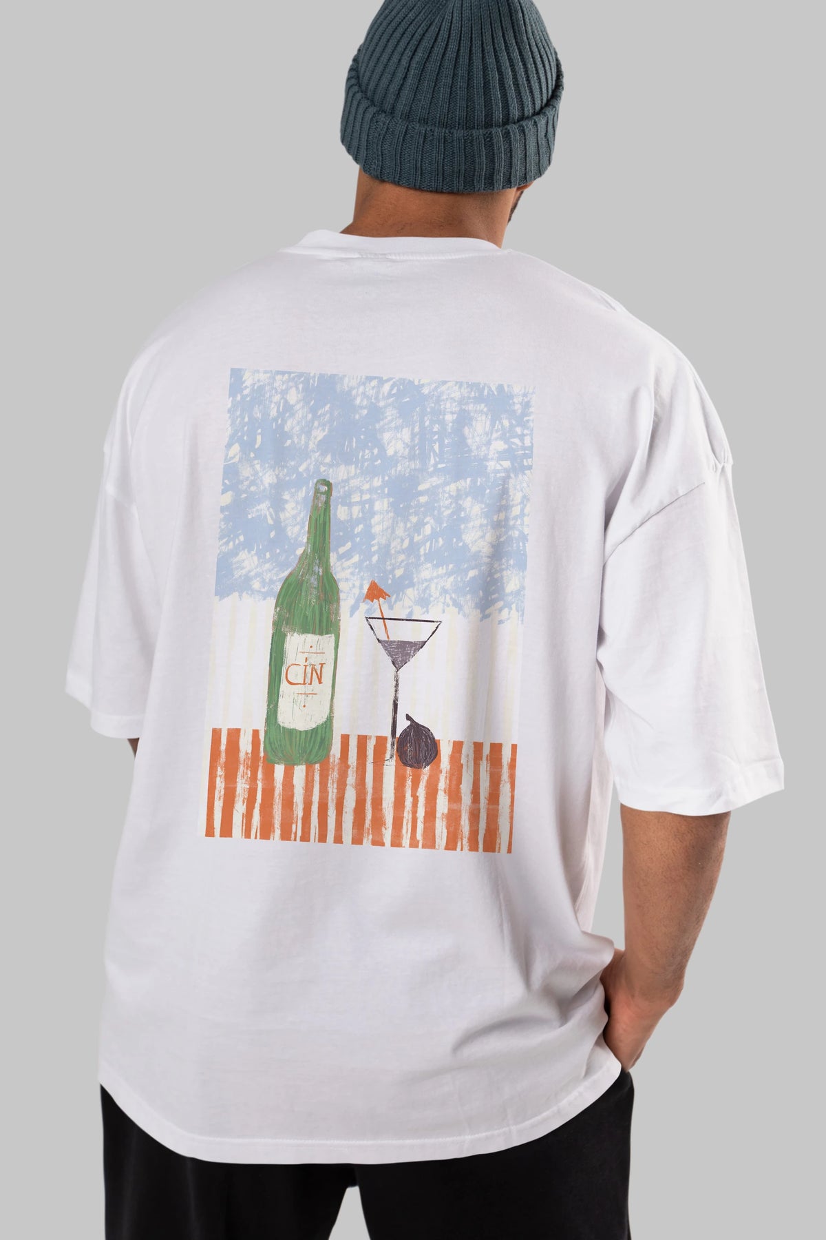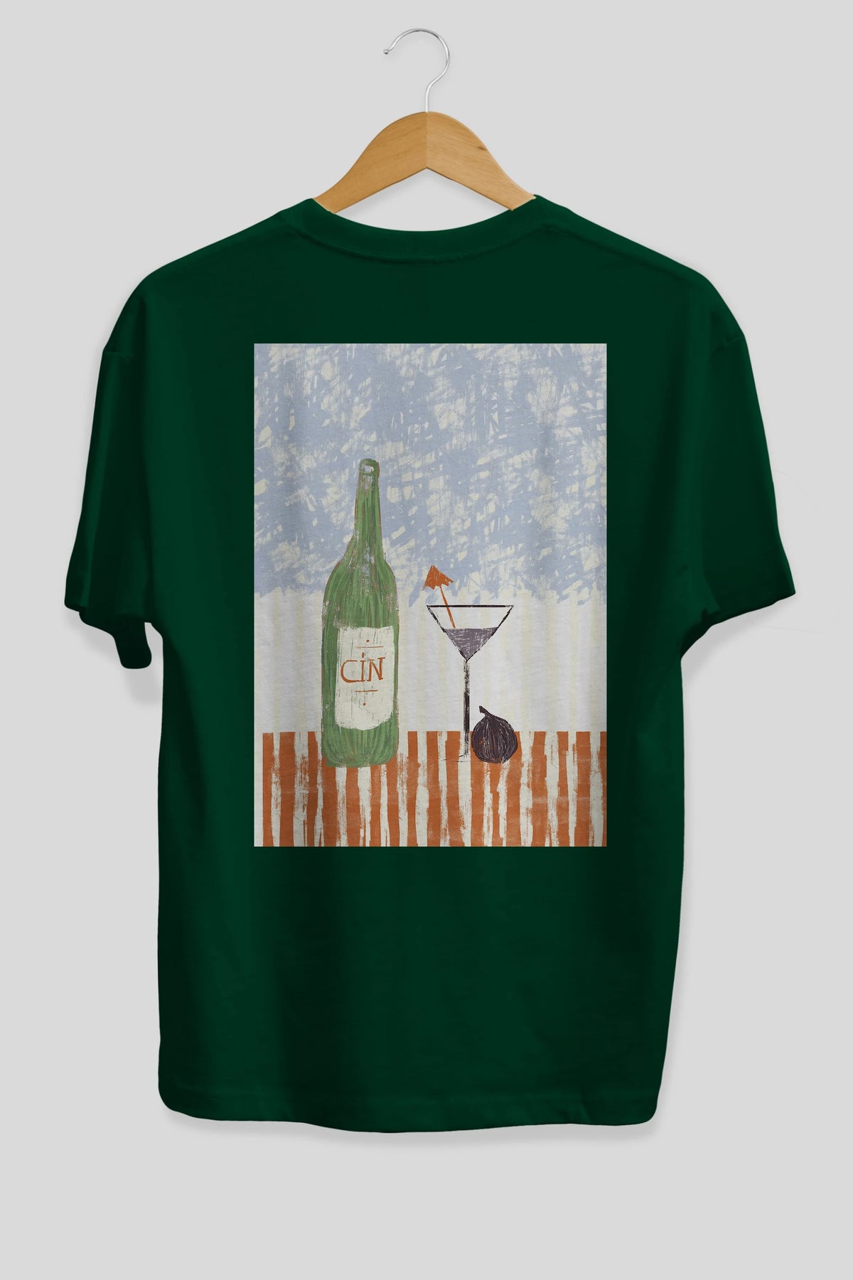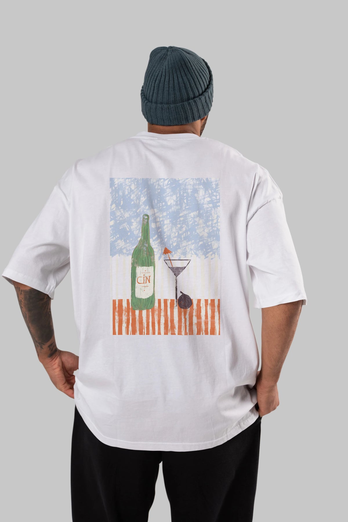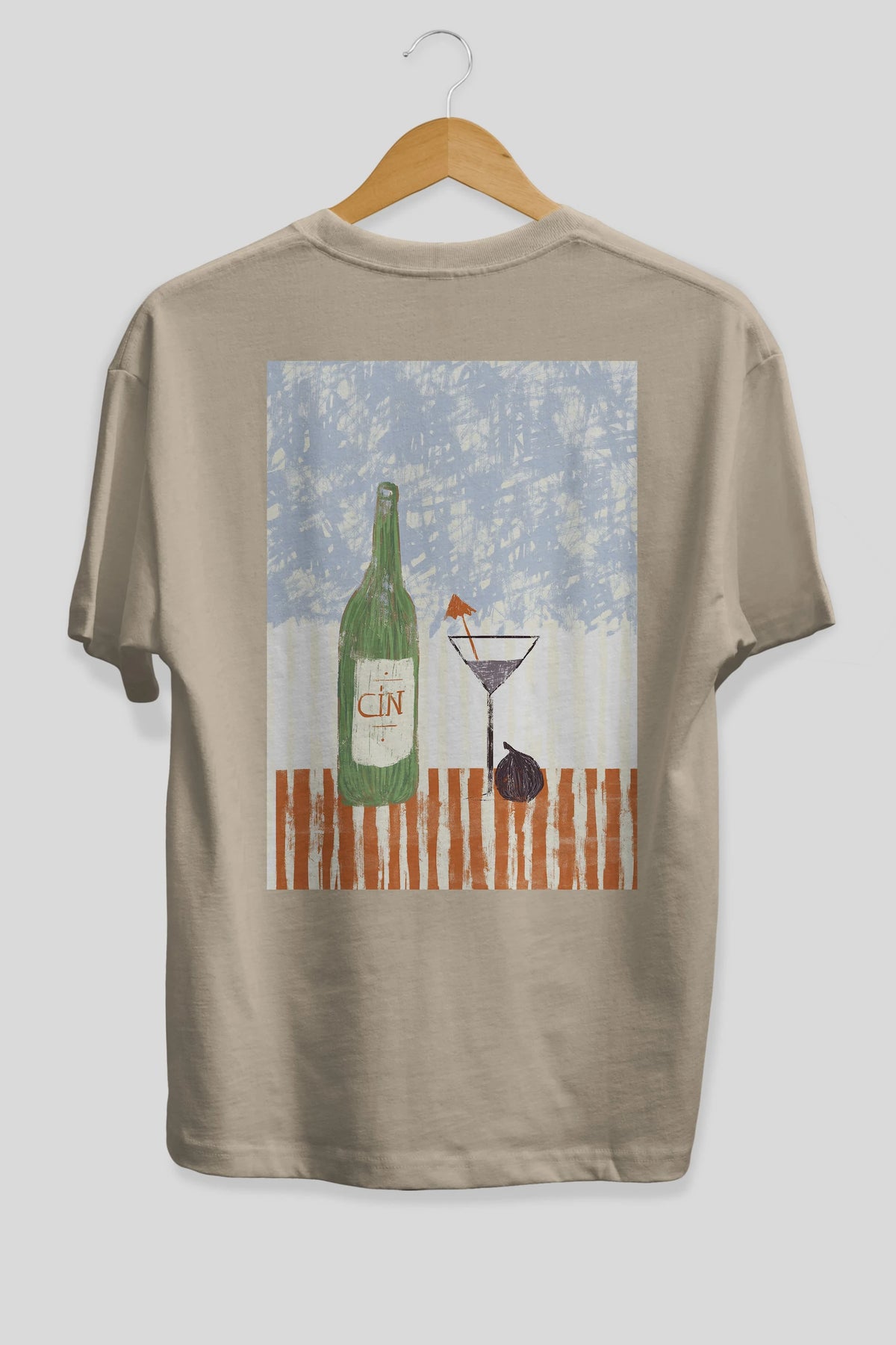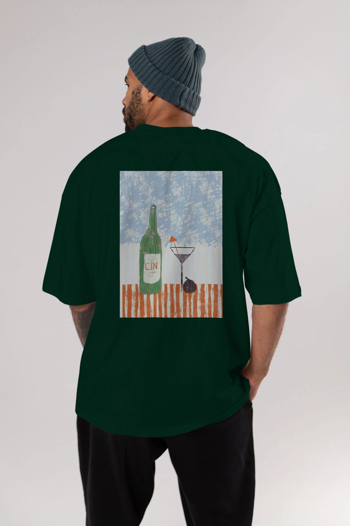 Gin Arka Baskılı Oversize t-shirt Erkek Kadın Unisex %100 Pamuk Bisiklet Yaka tişort