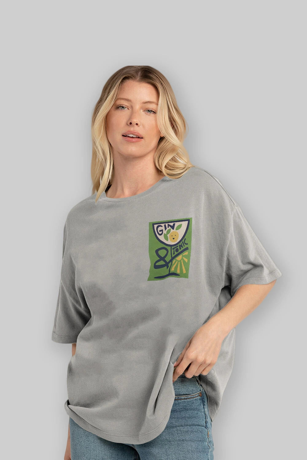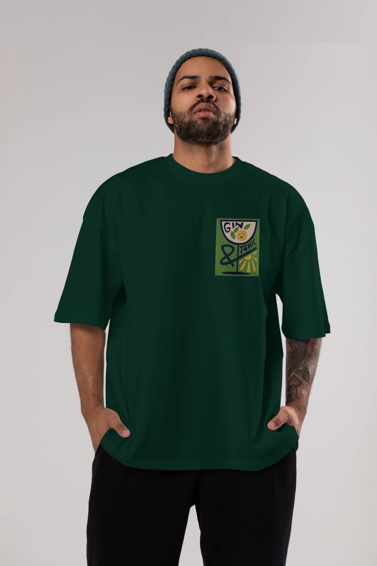 Gin Tonic 3 Ön Sol Baskılı Oversize t-shirt Erkek Kadın Unisex %100 Pamuk Bisiklet Yaka tişort