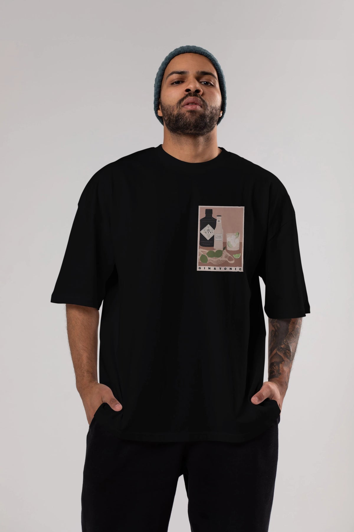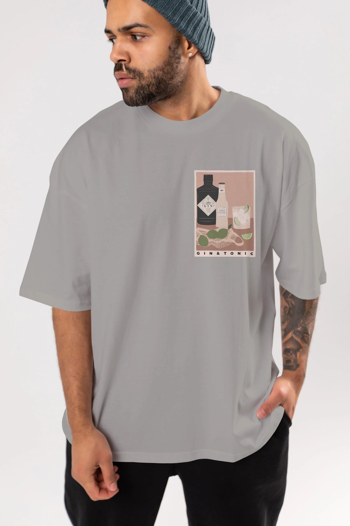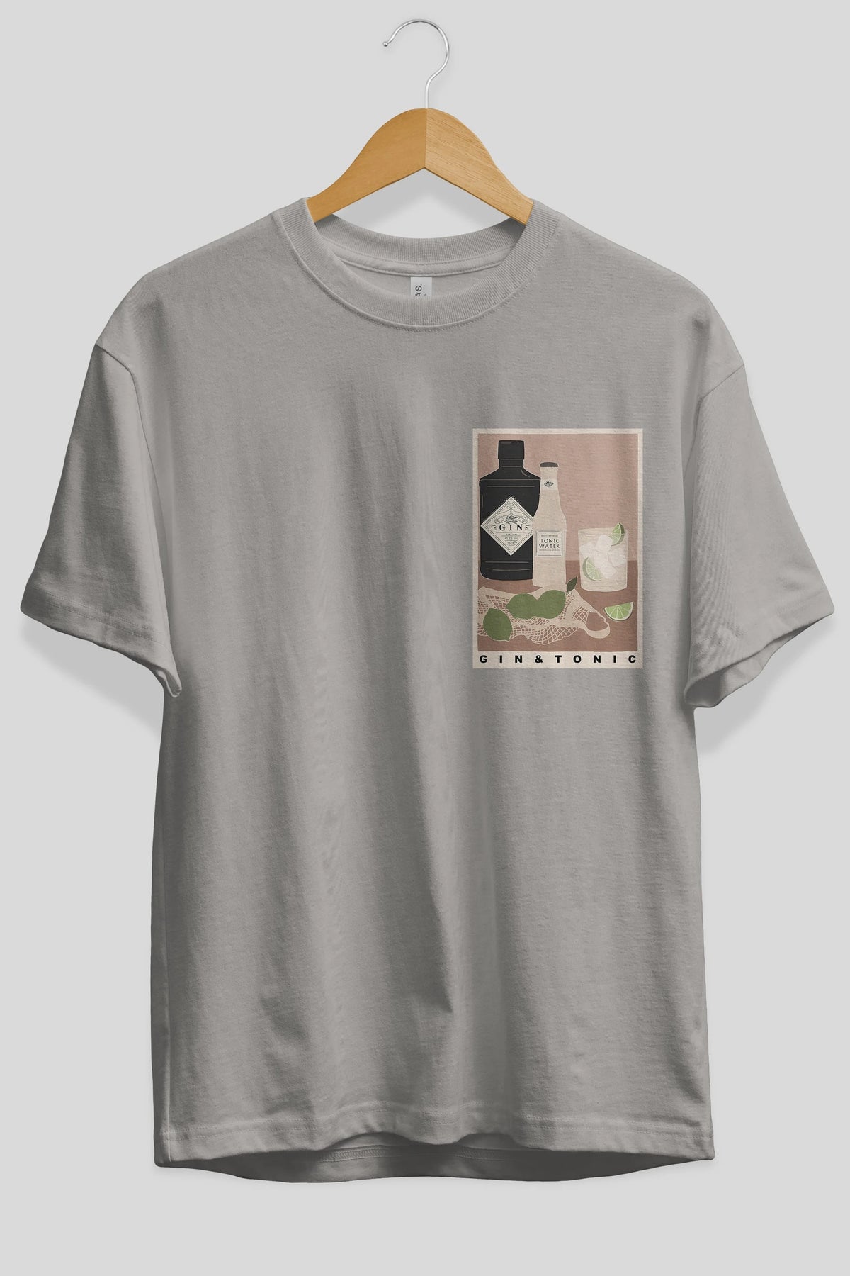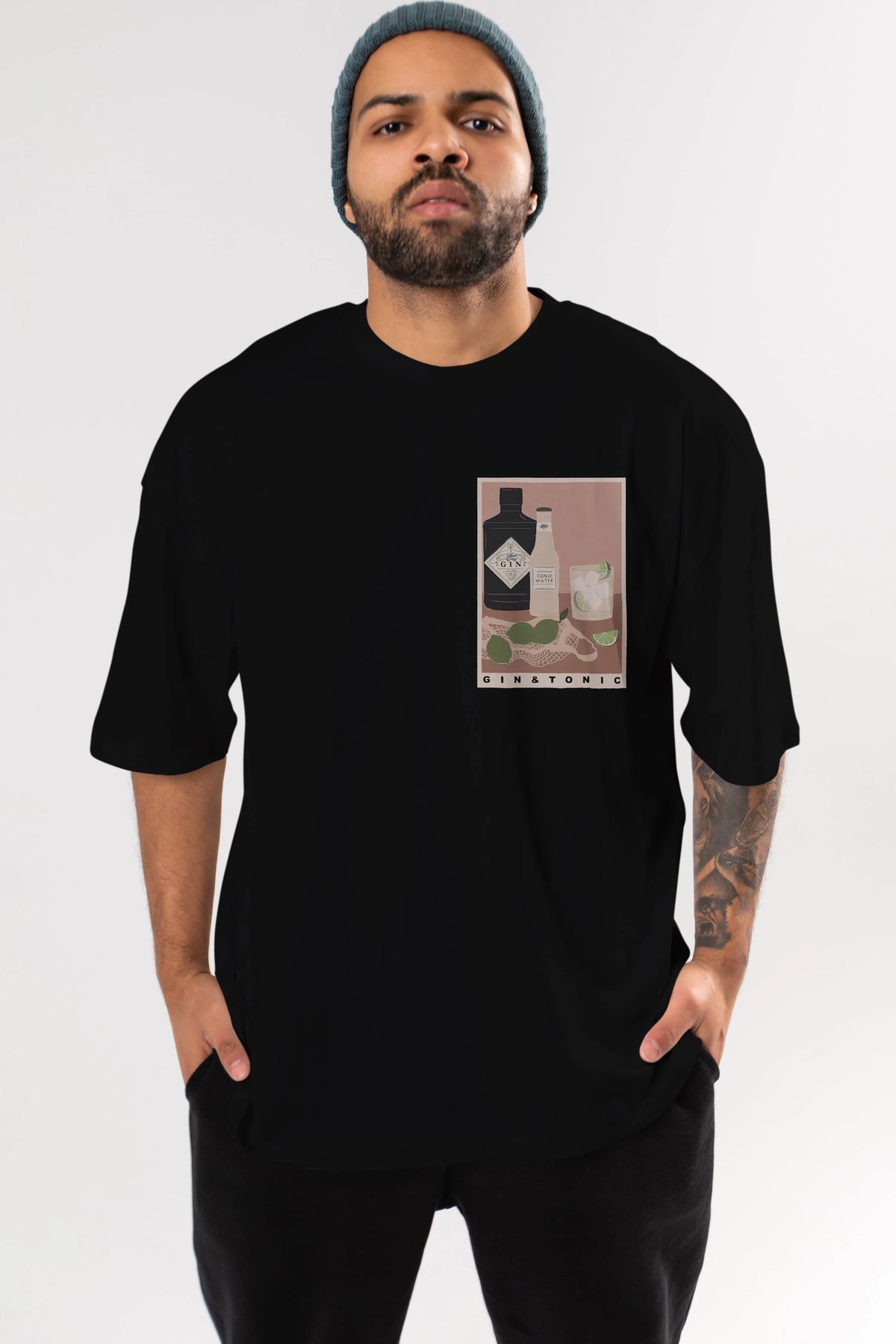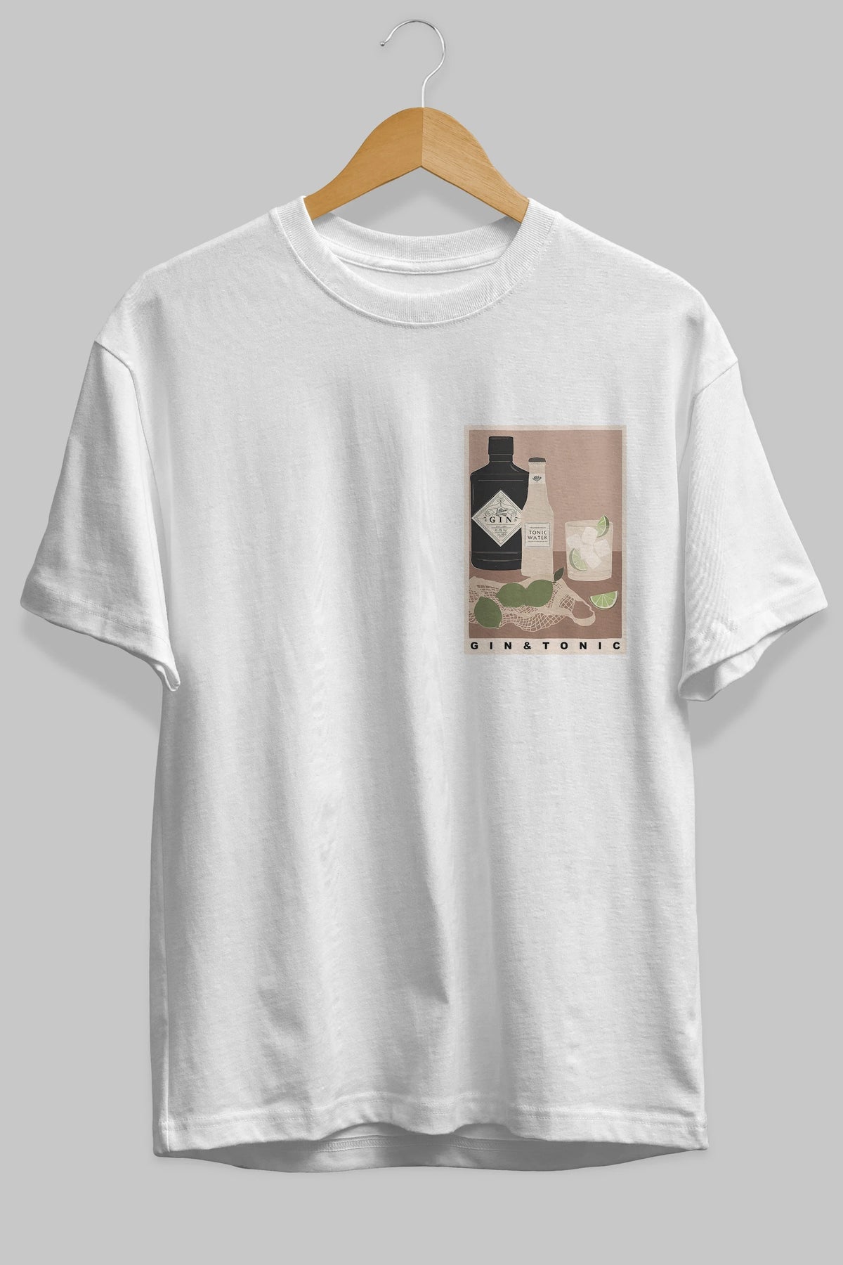 Gin Tonic Ön Sol Baskılı Oversize t-shirt Erkek Kadın Unisex %100 Pamuk Bisiklet Yaka tişort