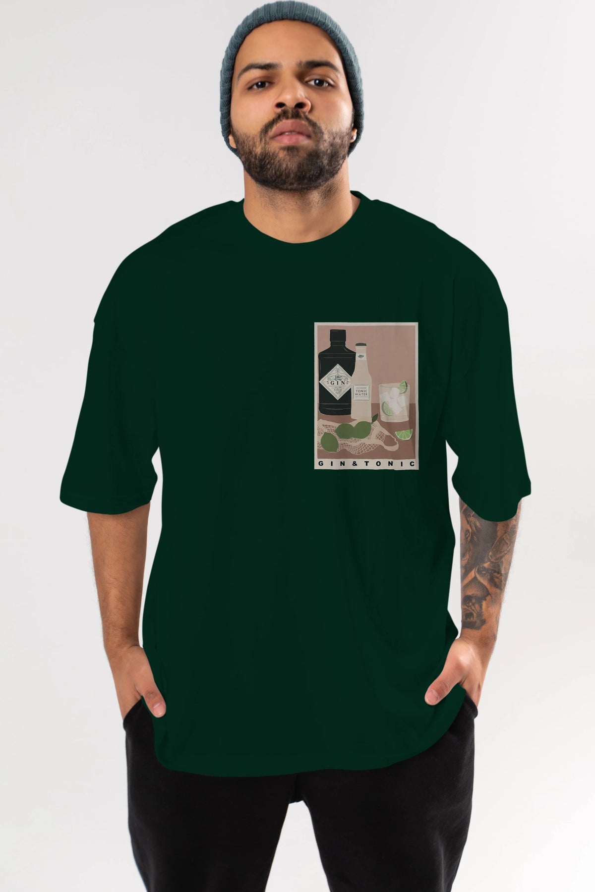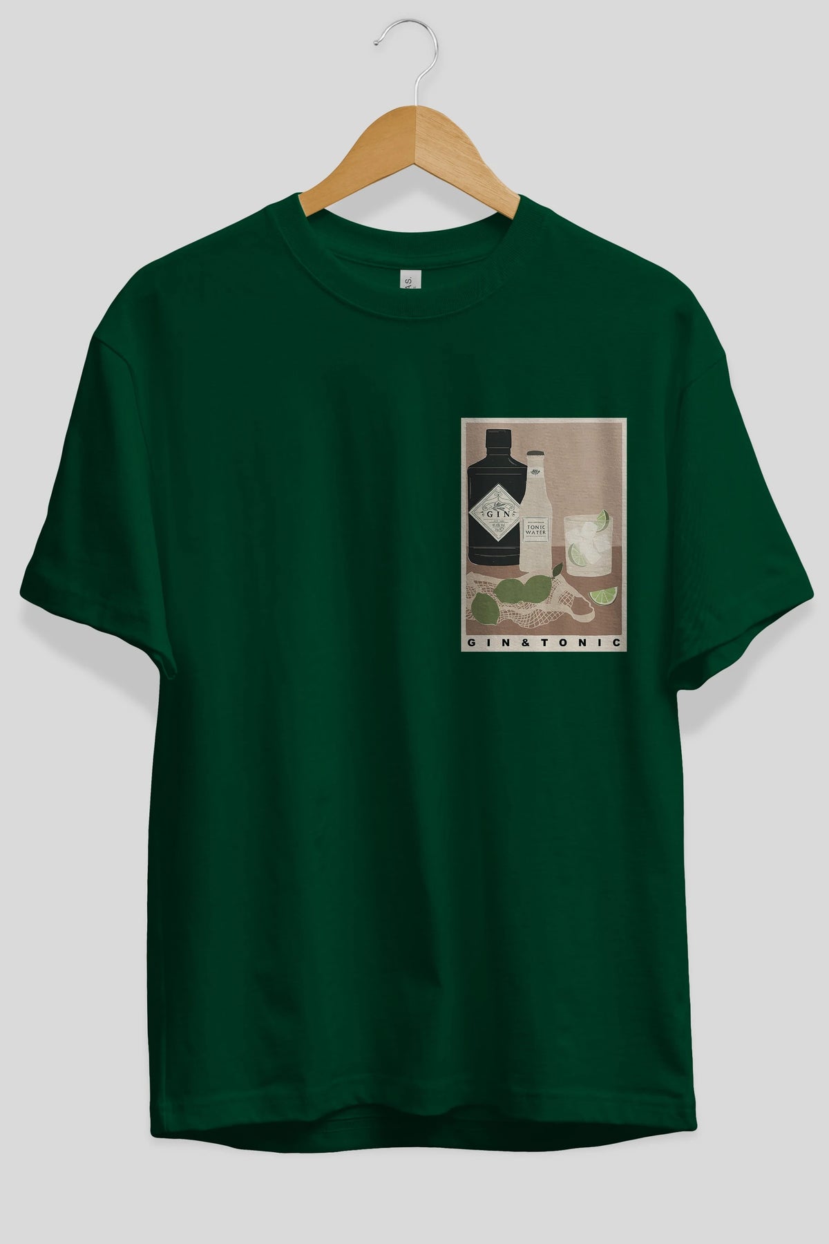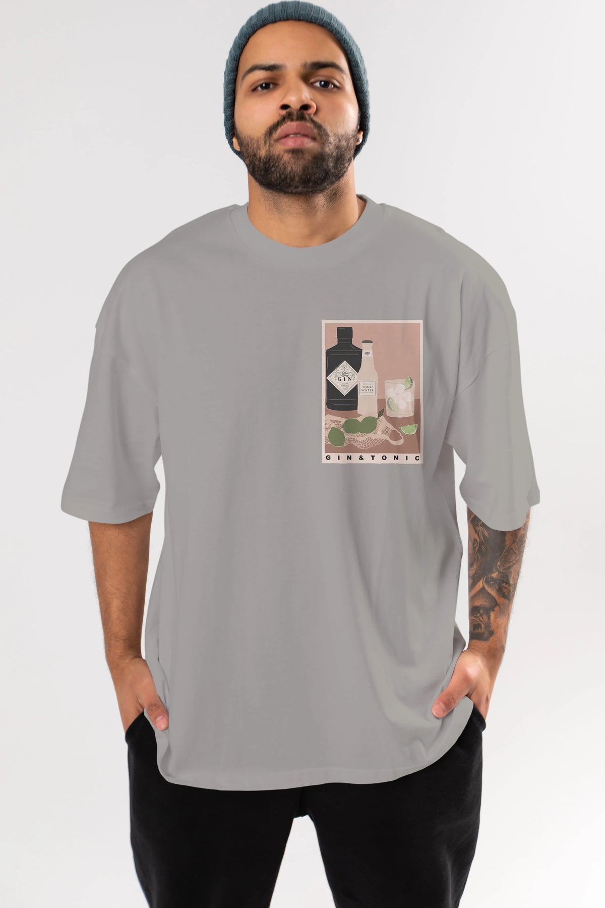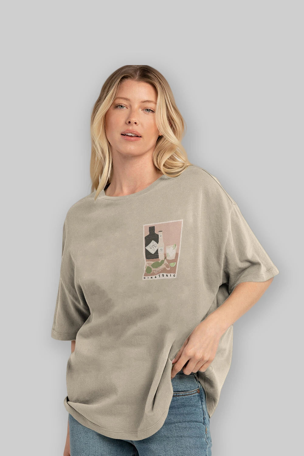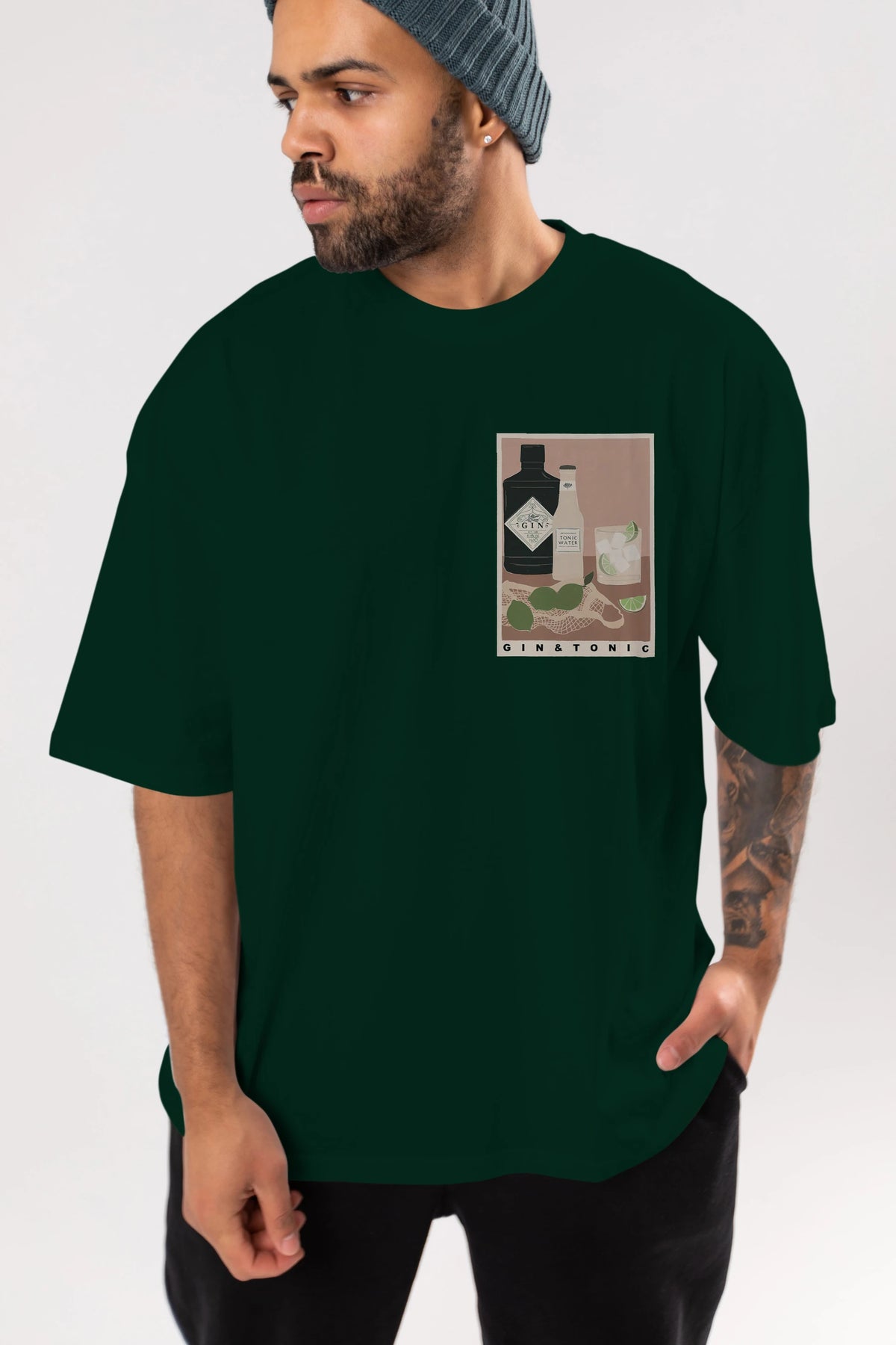 Gin Tonic Ön Sol Baskılı Oversize t-shirt Erkek Kadın Unisex %100 Pamuk Bisiklet Yaka tişort