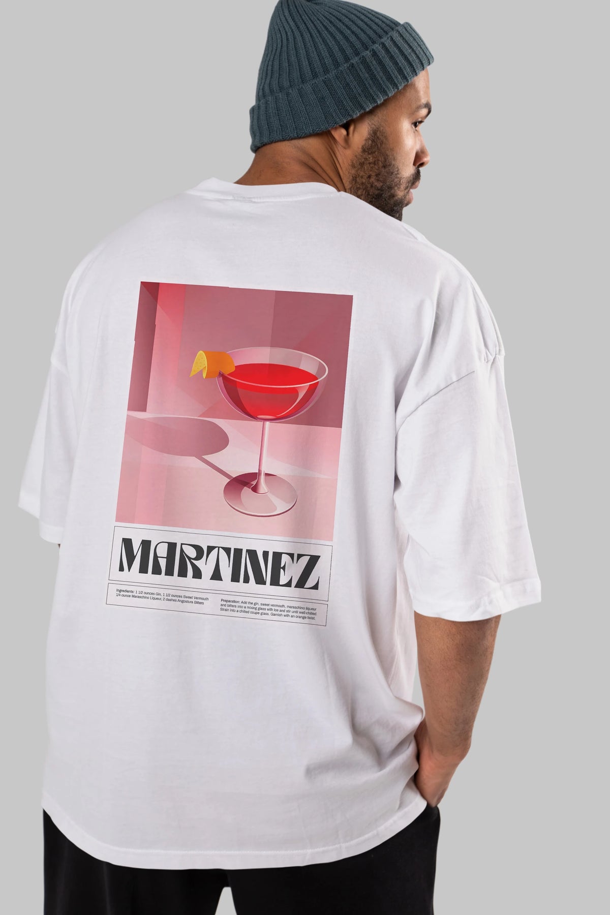 Martinez Arka Baskılı Oversize t-shirt Erkek Kadın Unisex %100 Pamuk Bisiklet Yaka tişort