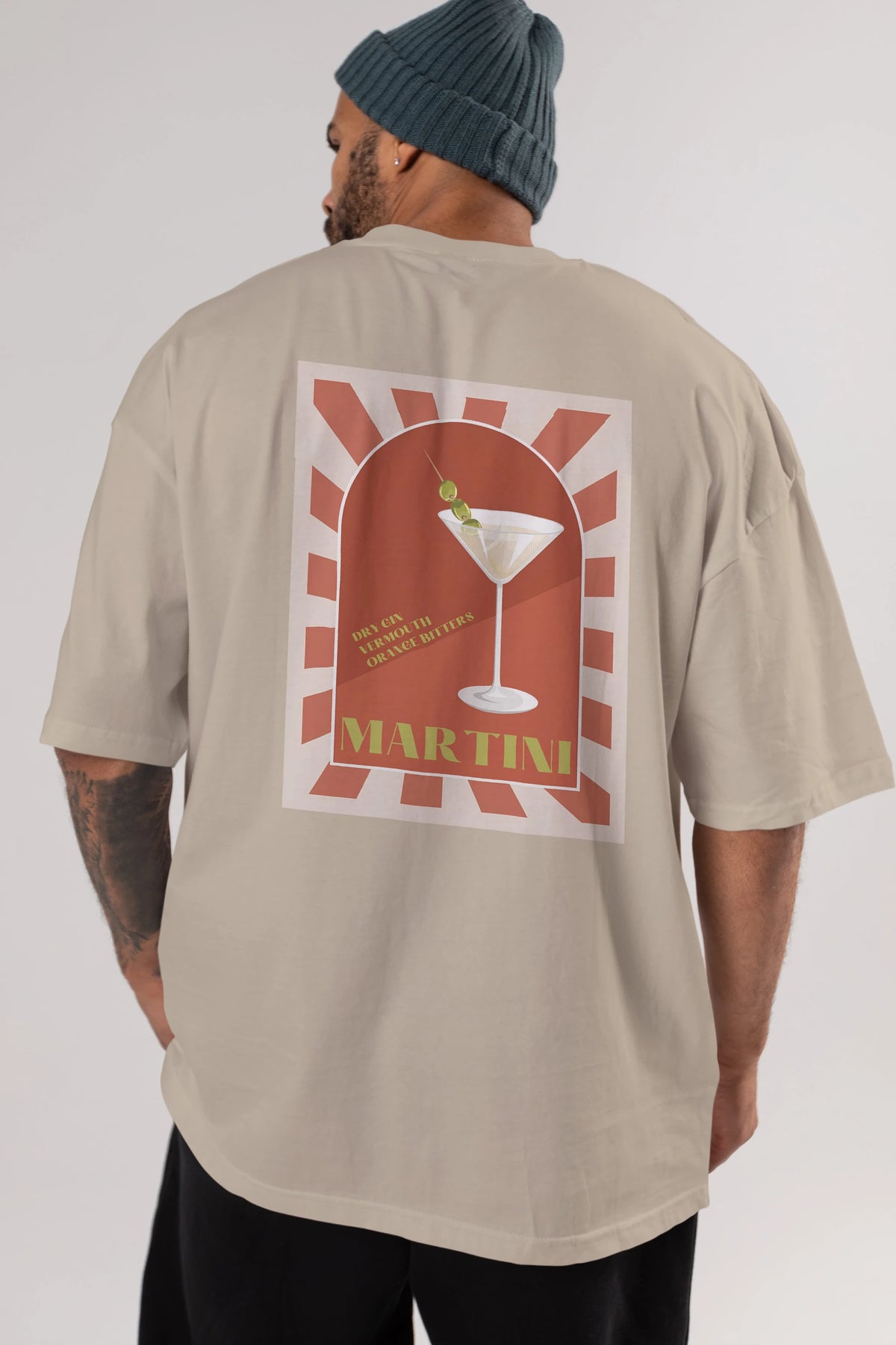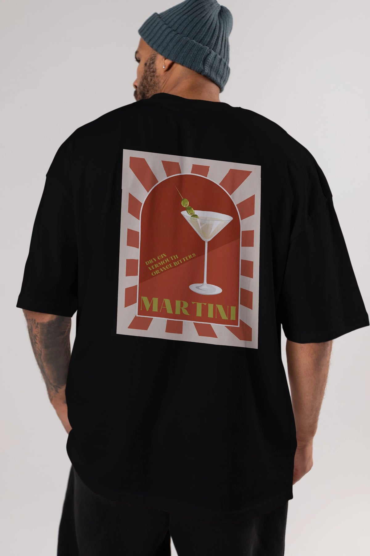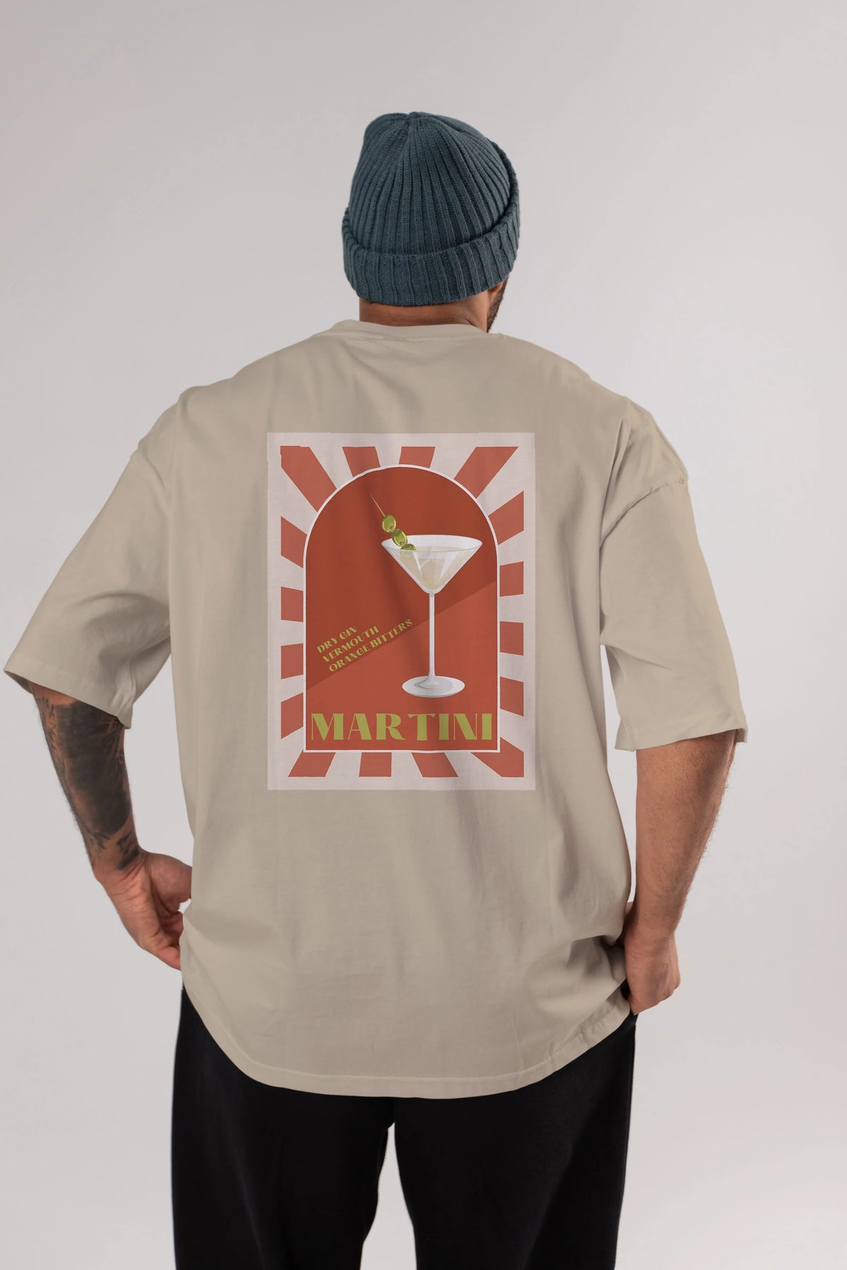 Martini 2 Arka Baskılı Oversize t-shirt Erkek Kadın Unisex %100 Pamuk Bisiklet Yaka tişort
