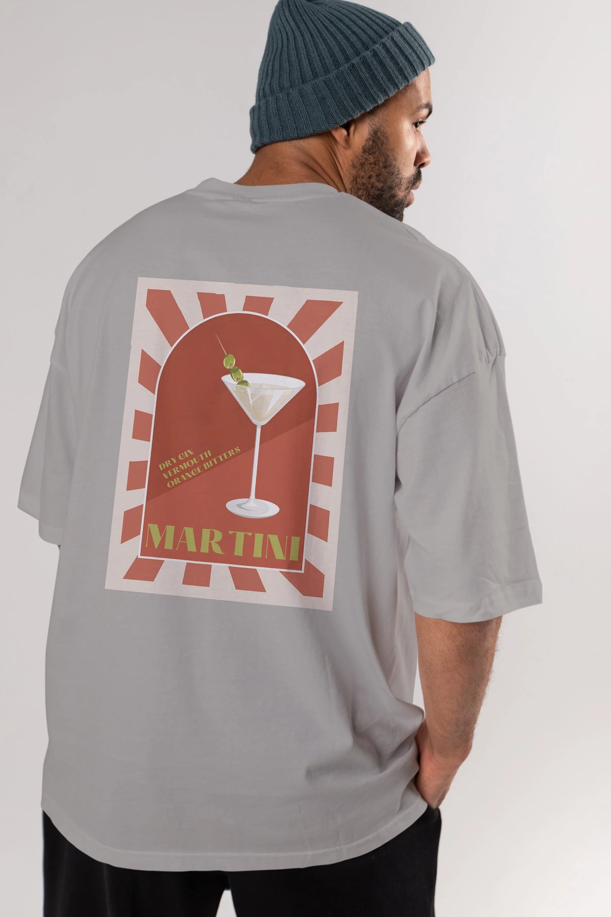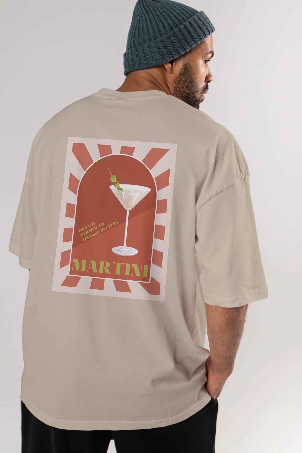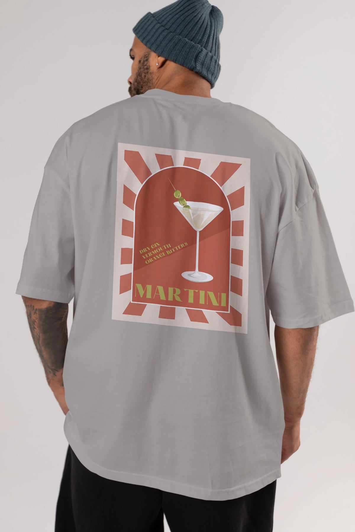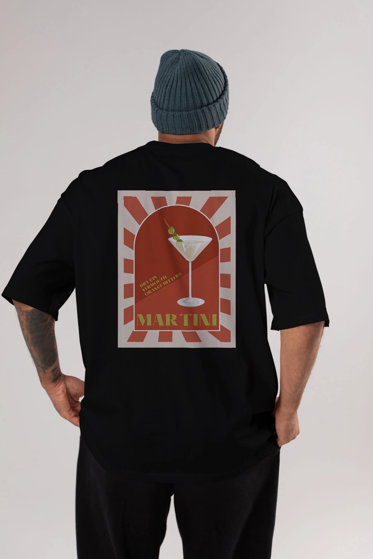 Martini 2 Arka Baskılı Oversize t-shirt Erkek Kadın Unisex %100 Pamuk Bisiklet Yaka tişort