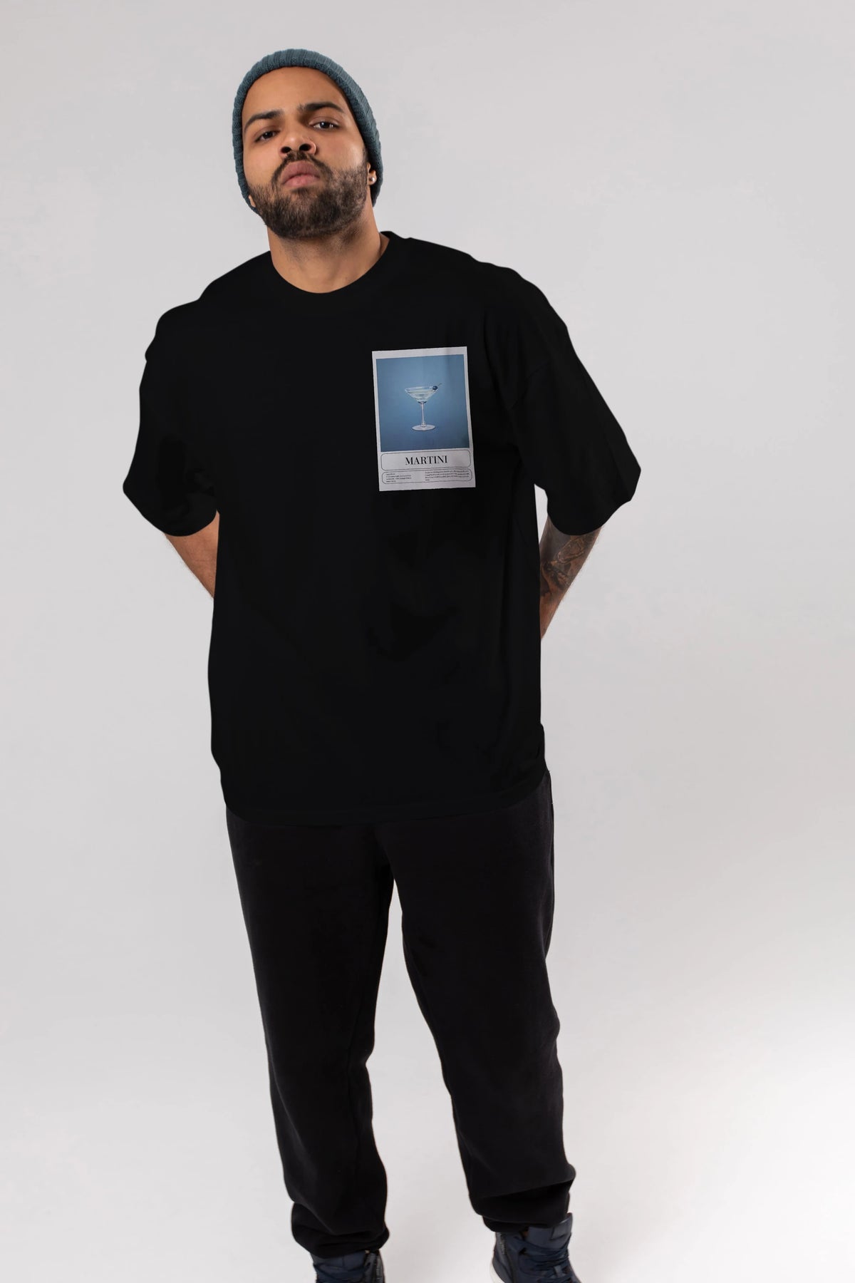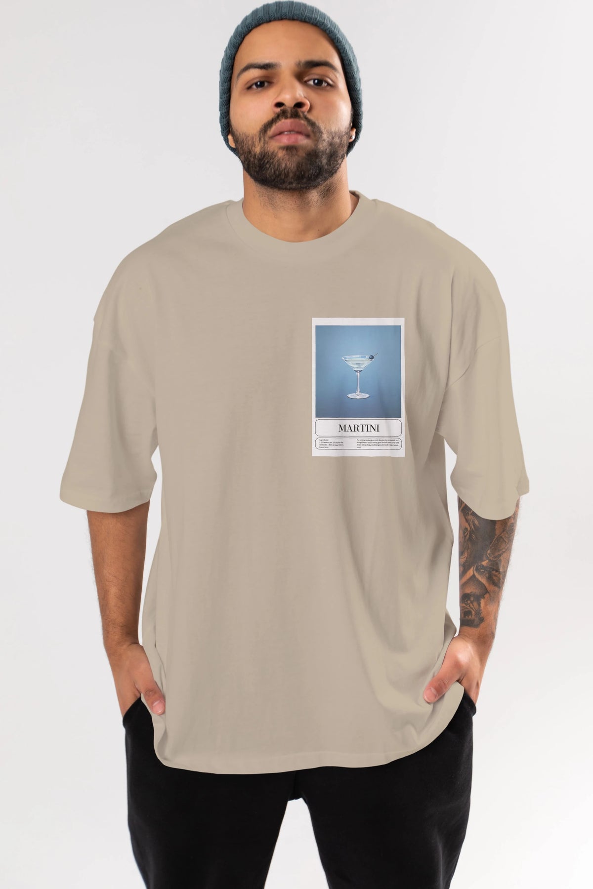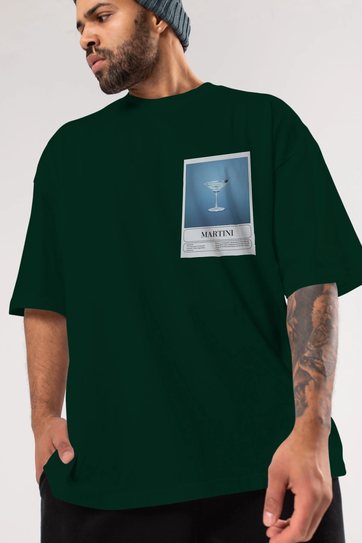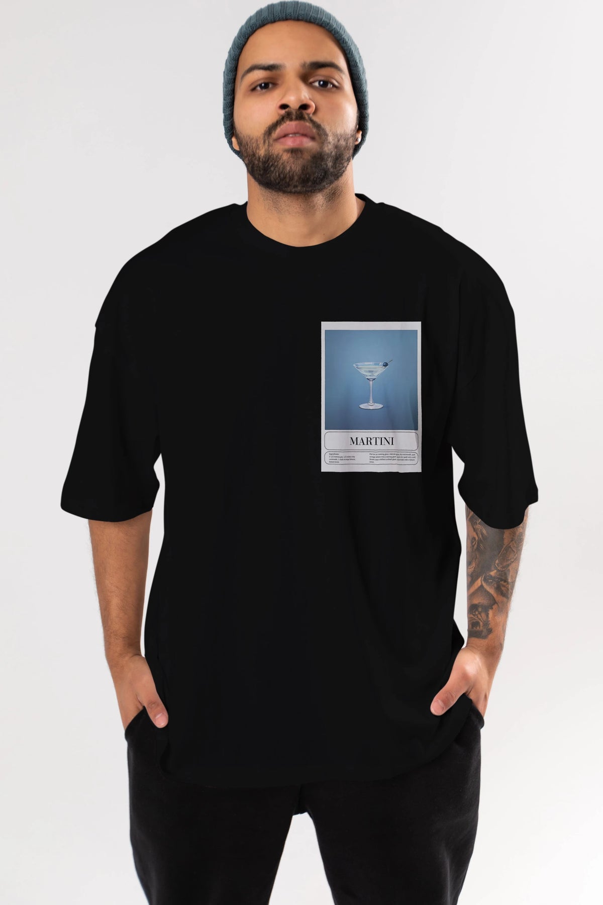 Martini Ön Sol Baskılı Oversize t-shirt Erkek Kadın Unisex %100 Pamuk Bisiklet Yaka tişort