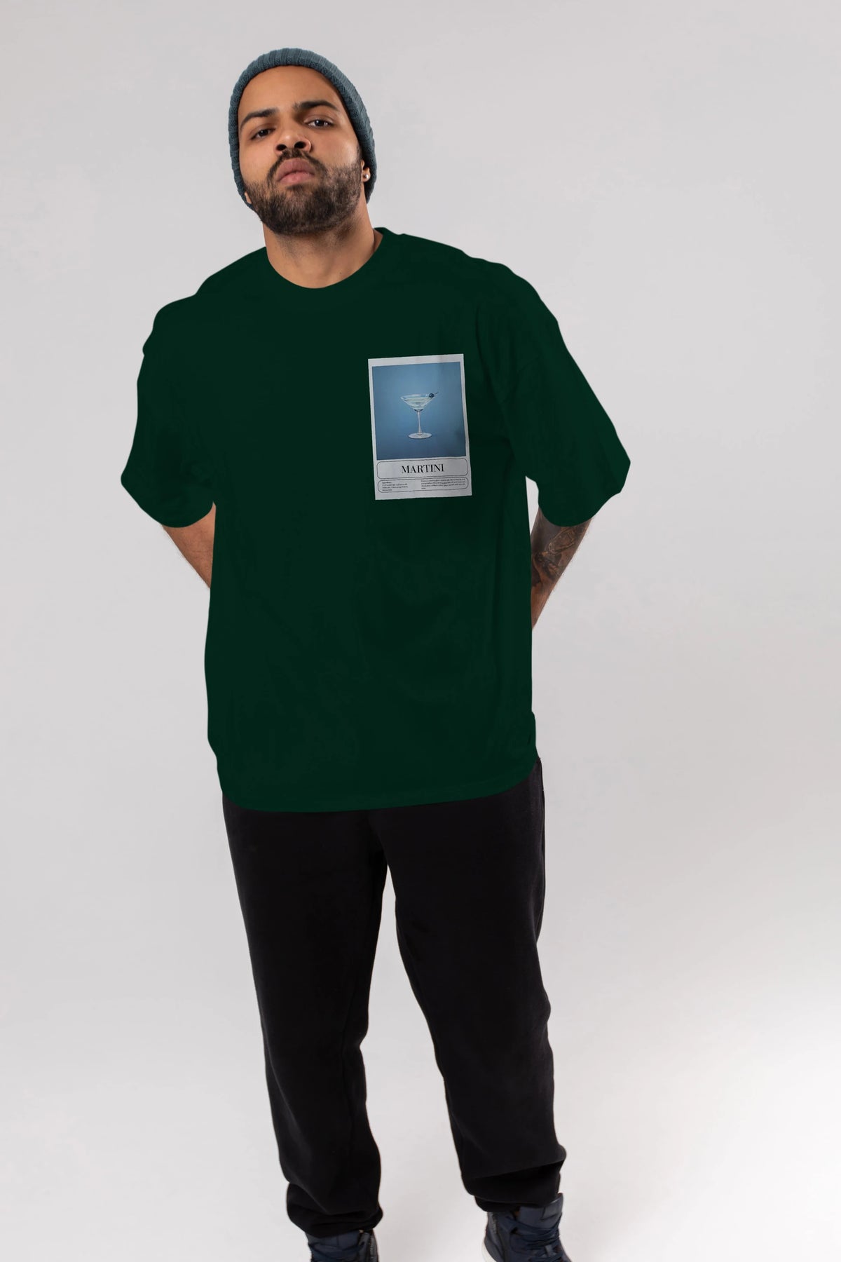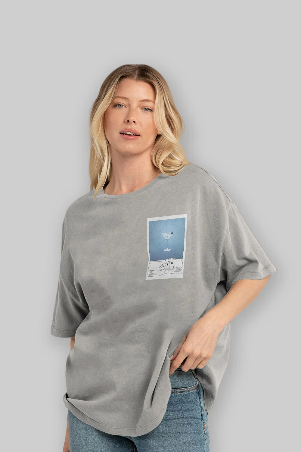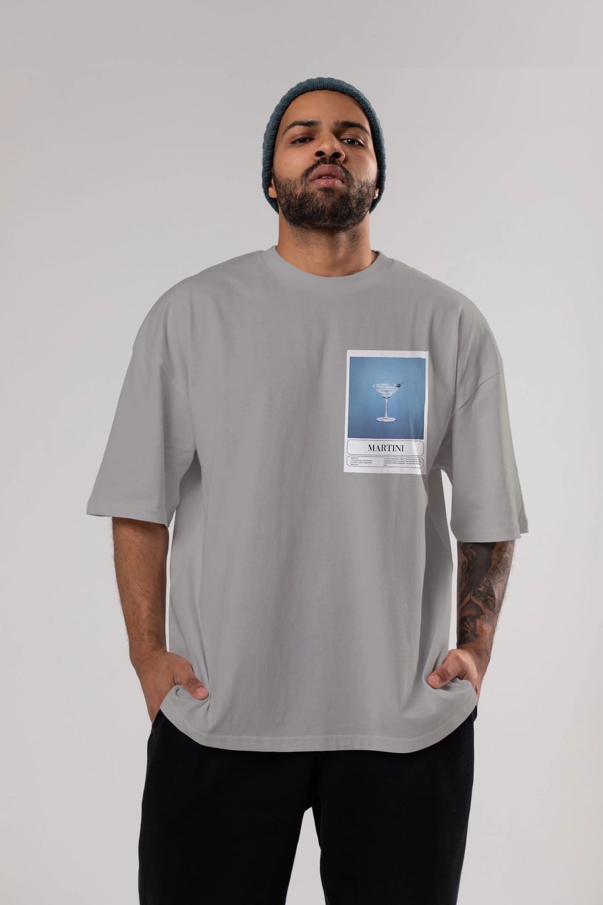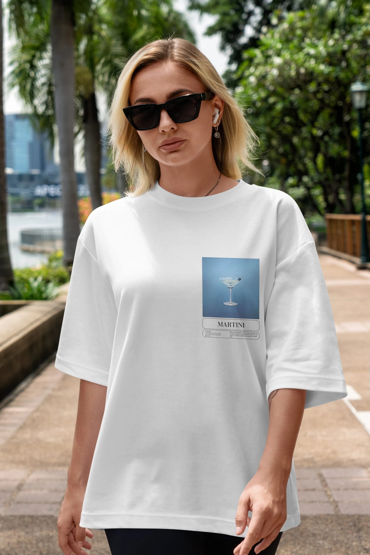 Martini Ön Sol Baskılı Oversize t-shirt Erkek Kadın Unisex %100 Pamuk Bisiklet Yaka tişort