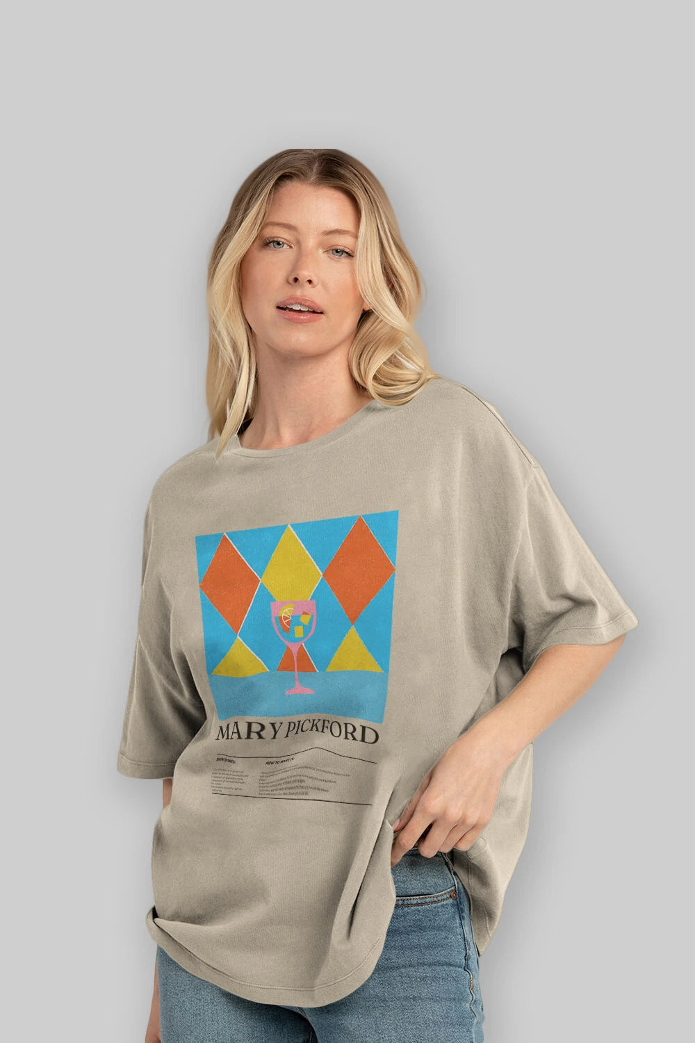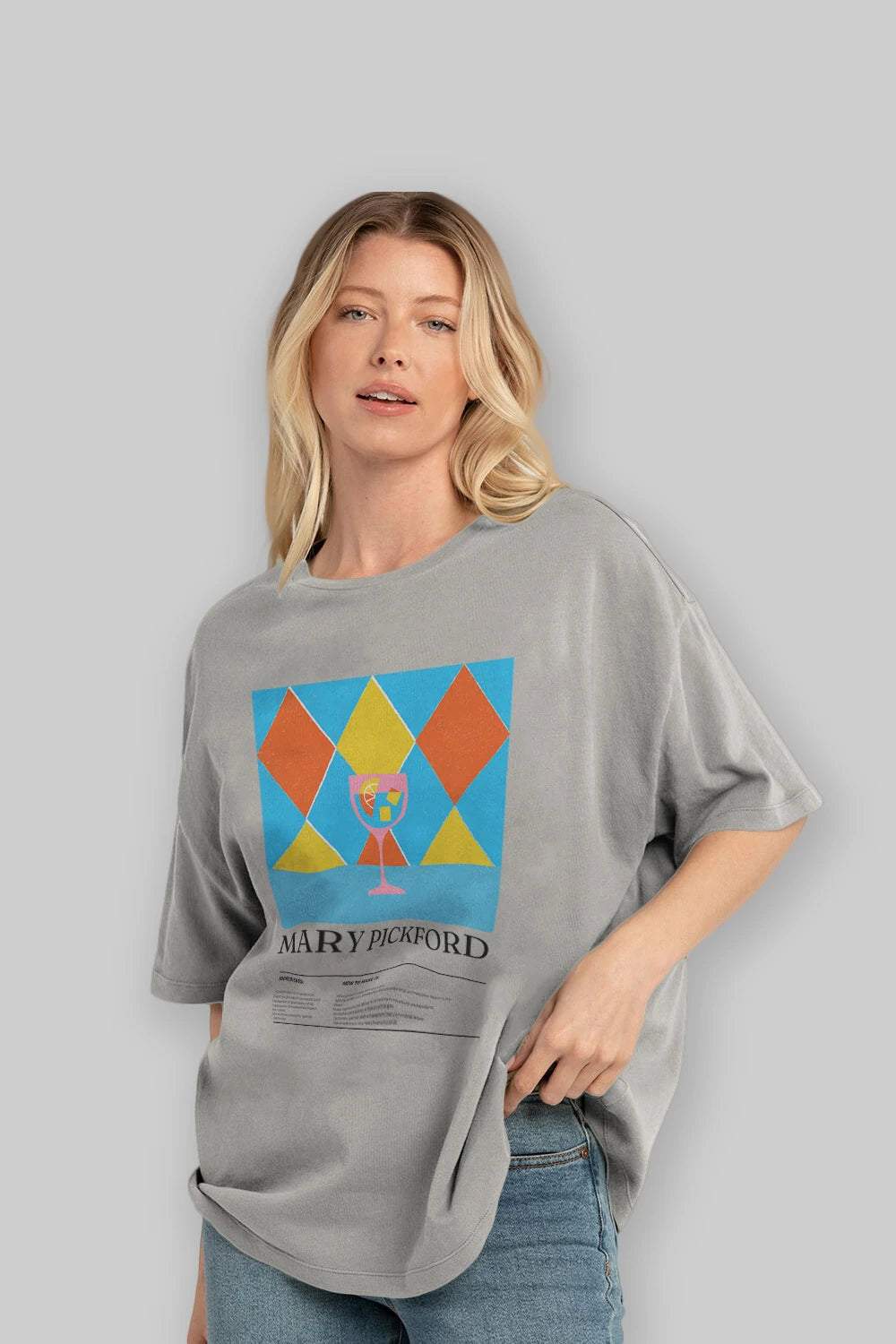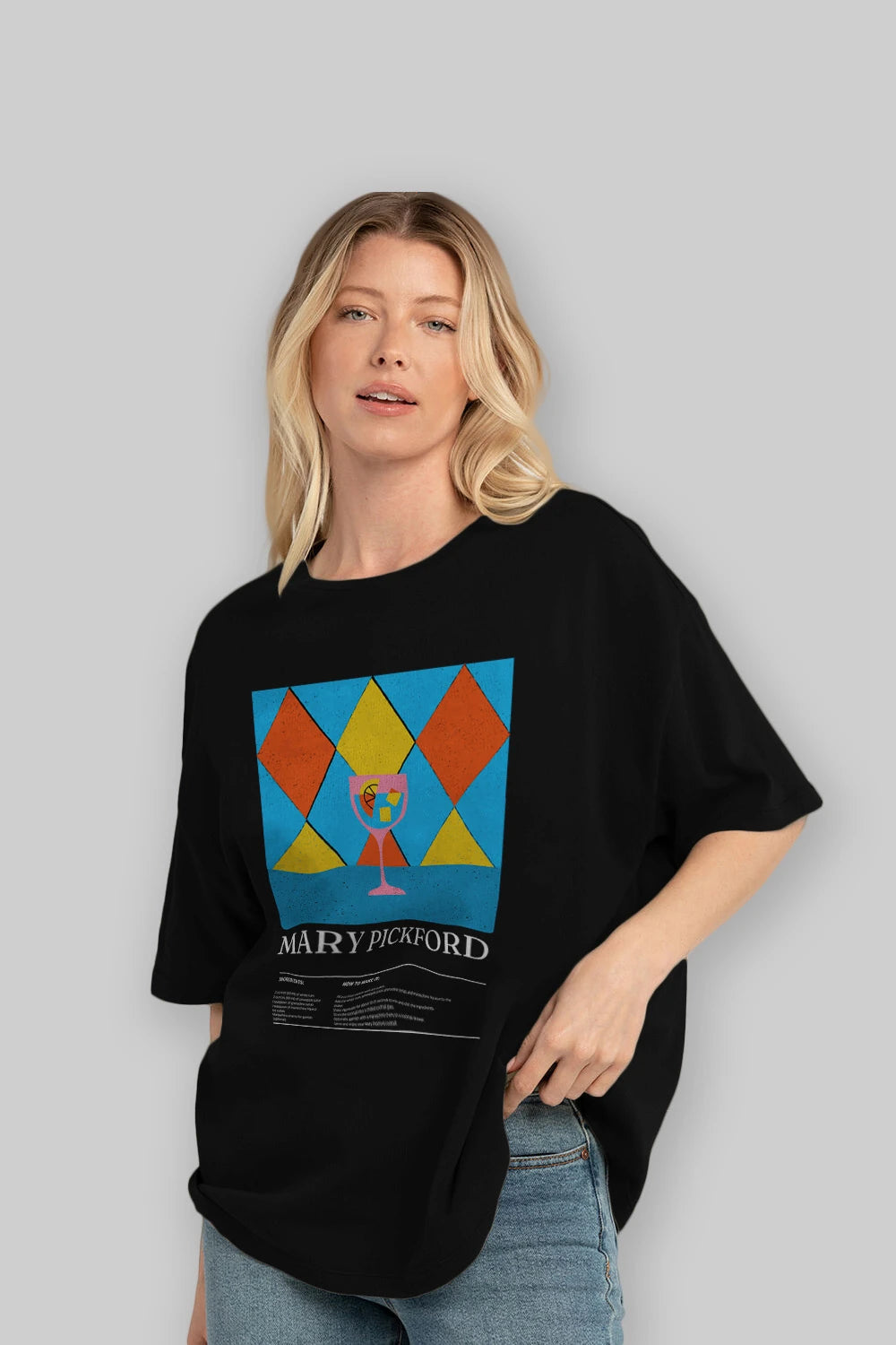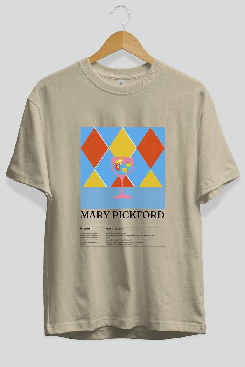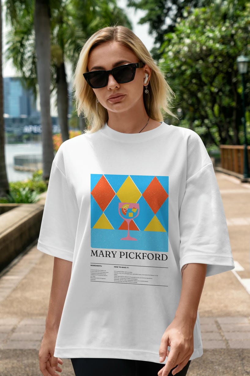 Mary Pickford Kokteyl Ön Baskılı Oversize t-shirt Erkek Kadın %100 Pamuk Bisiklet Yaka tişort