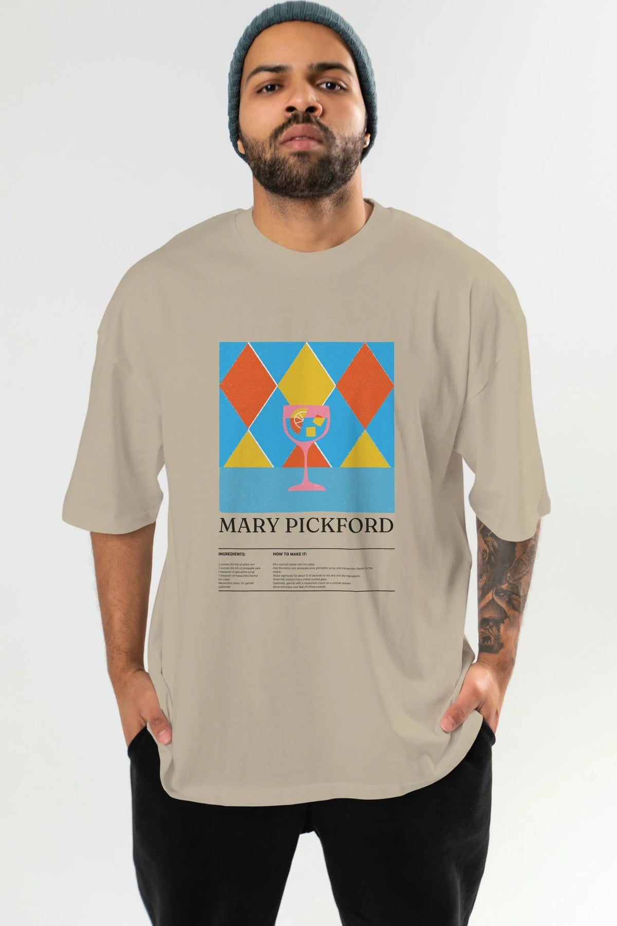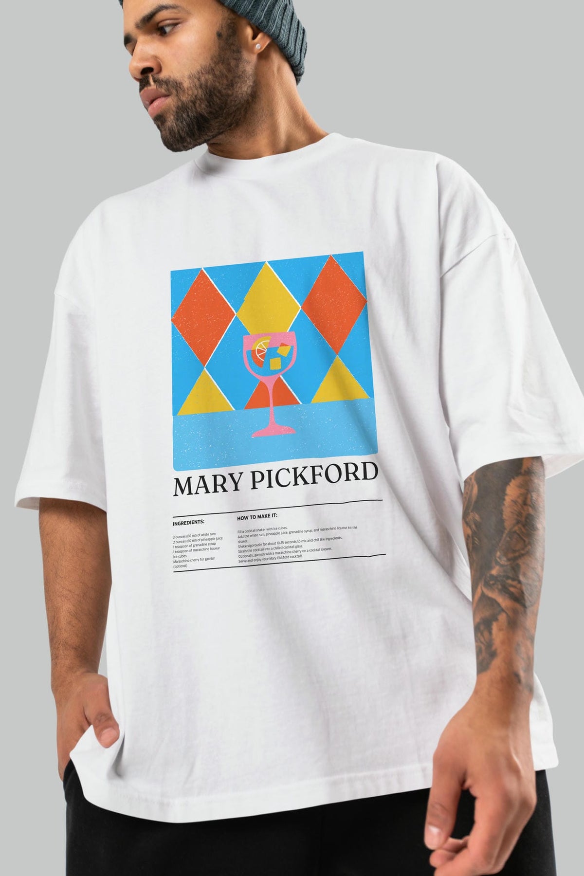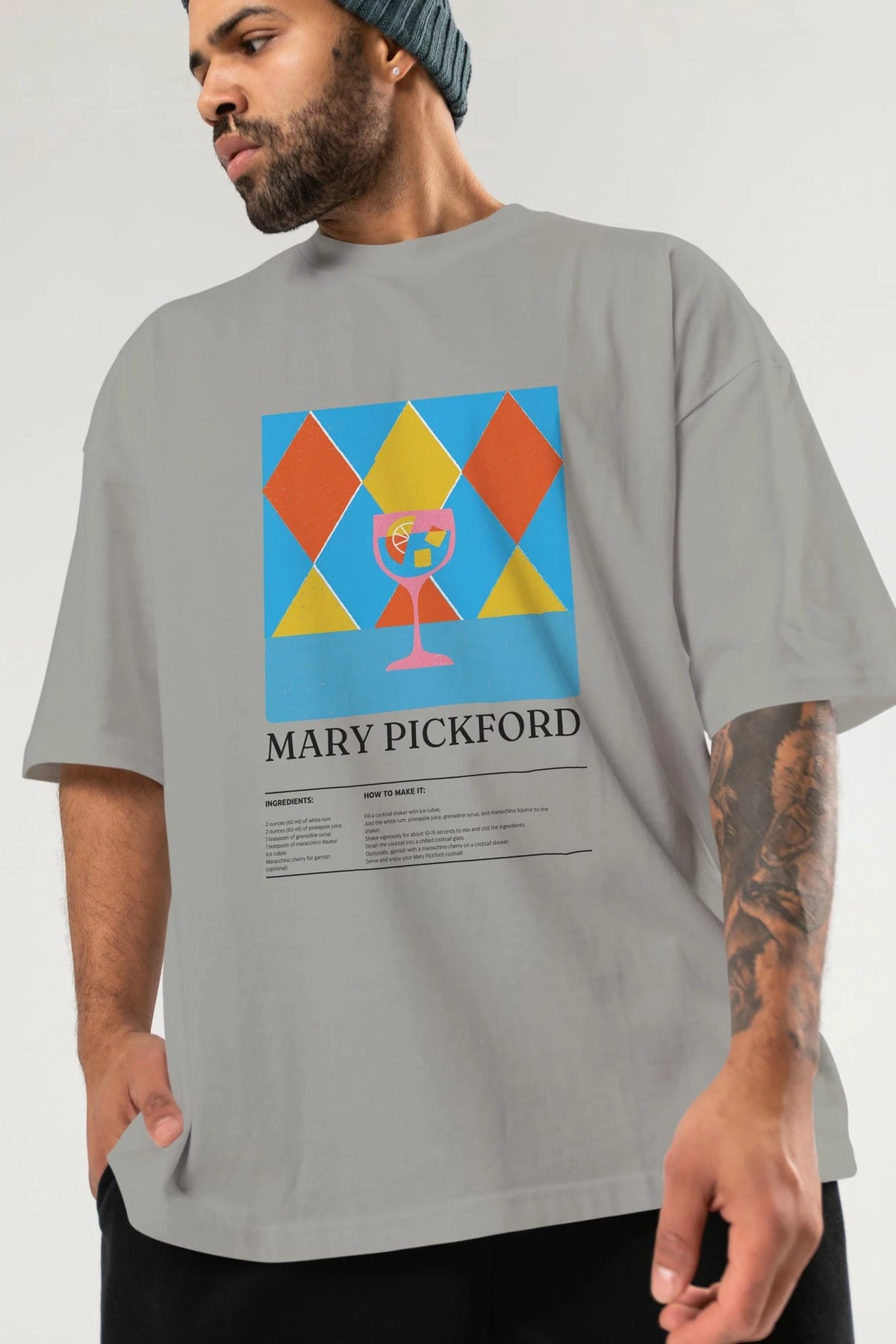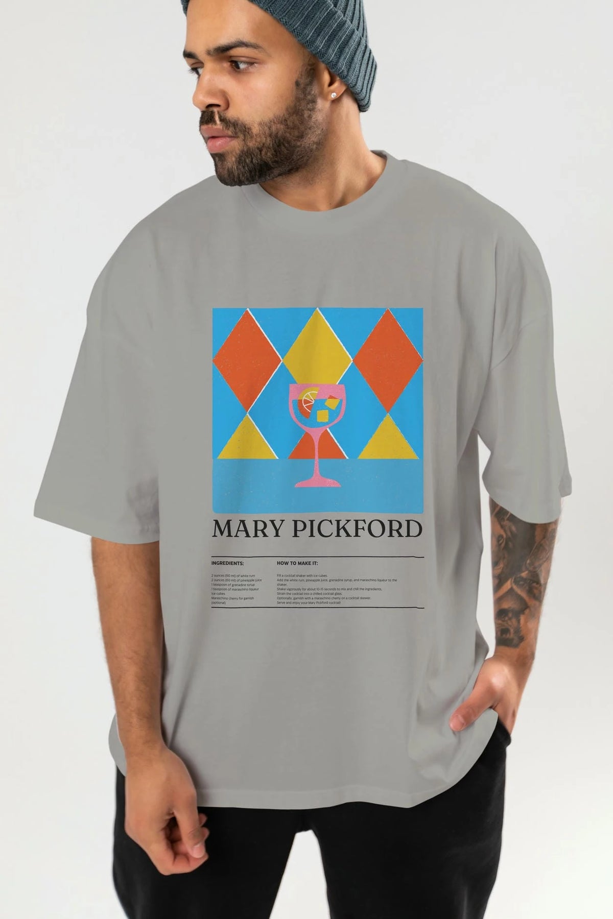 Mary Pickford Kokteyl Ön Baskılı Oversize t-shirt Erkek Kadın %100 Pamuk Bisiklet Yaka tişort