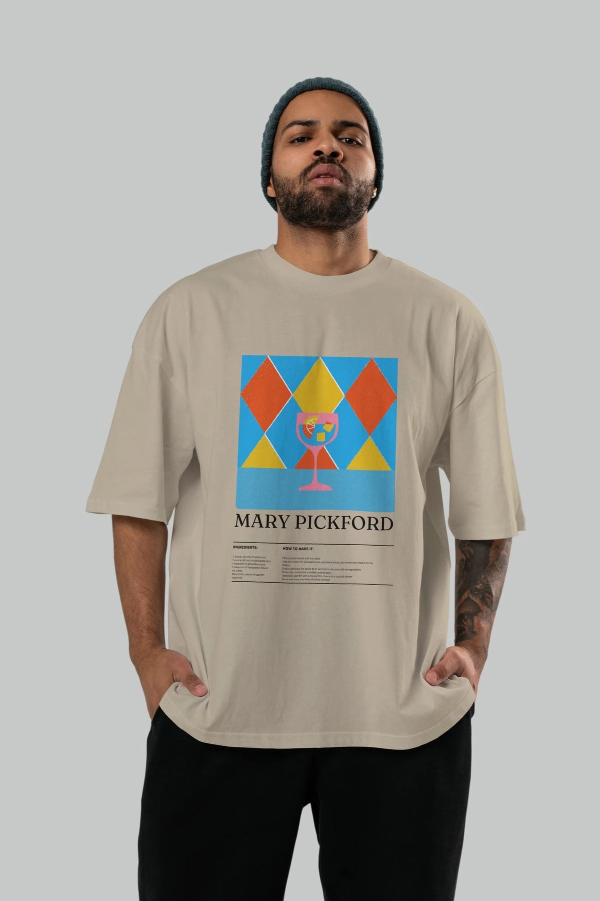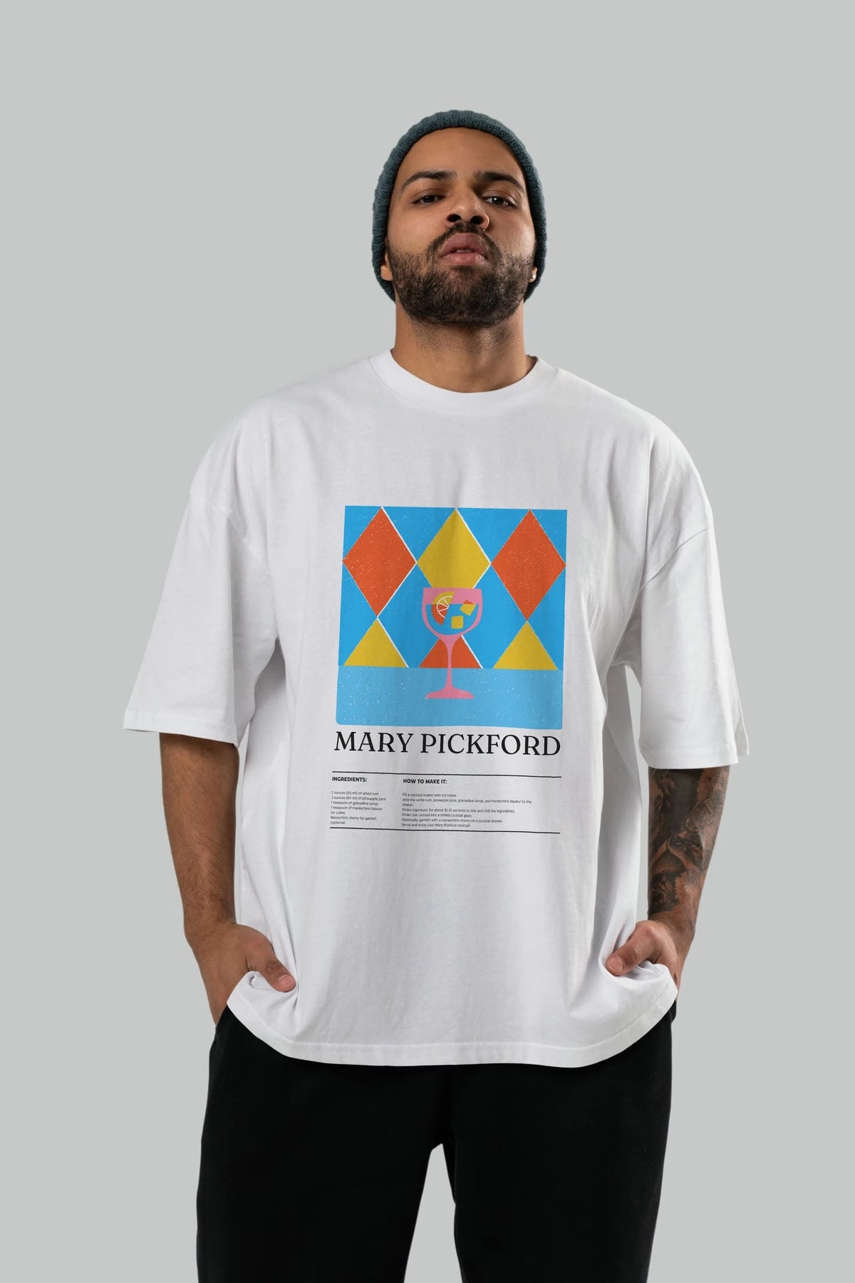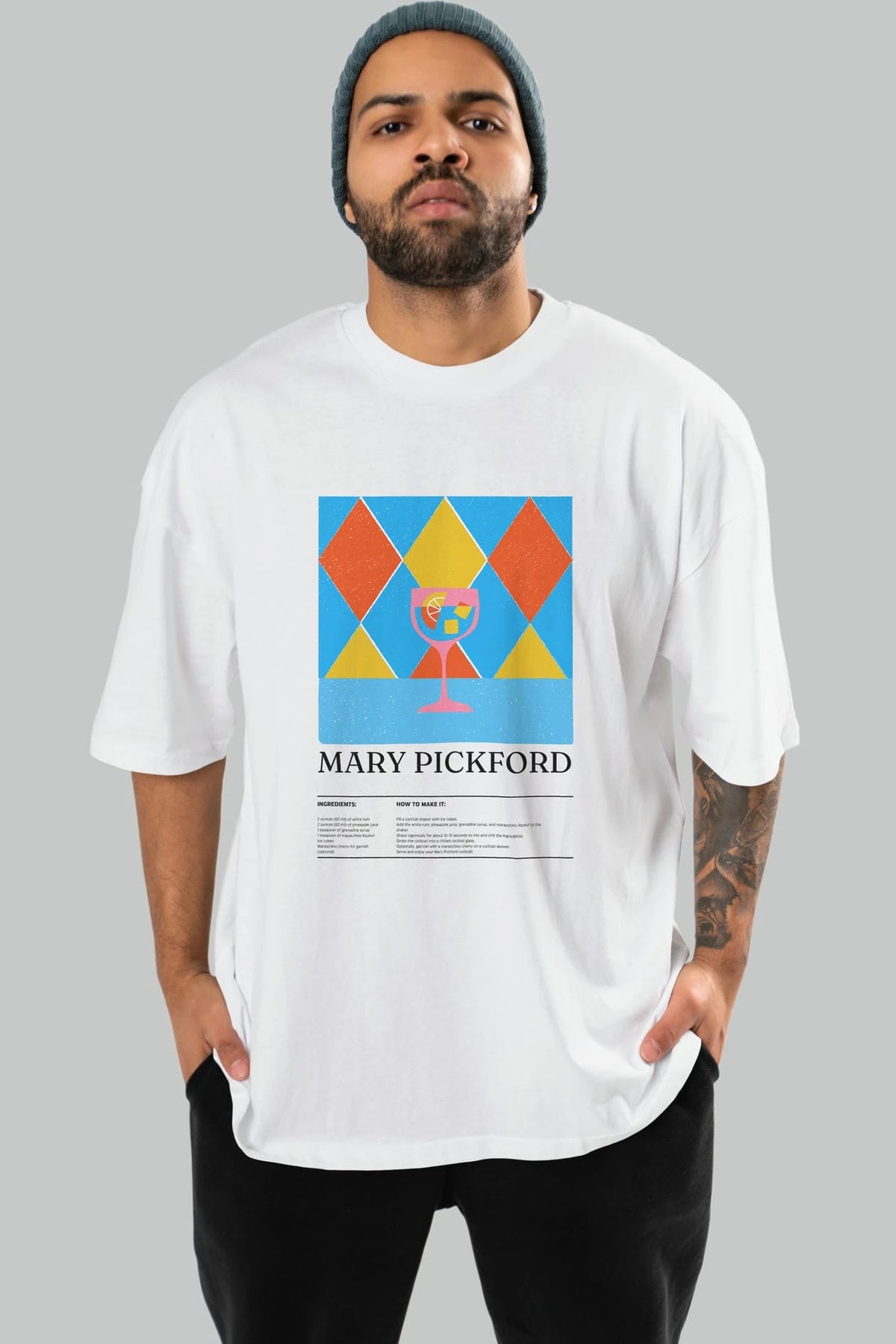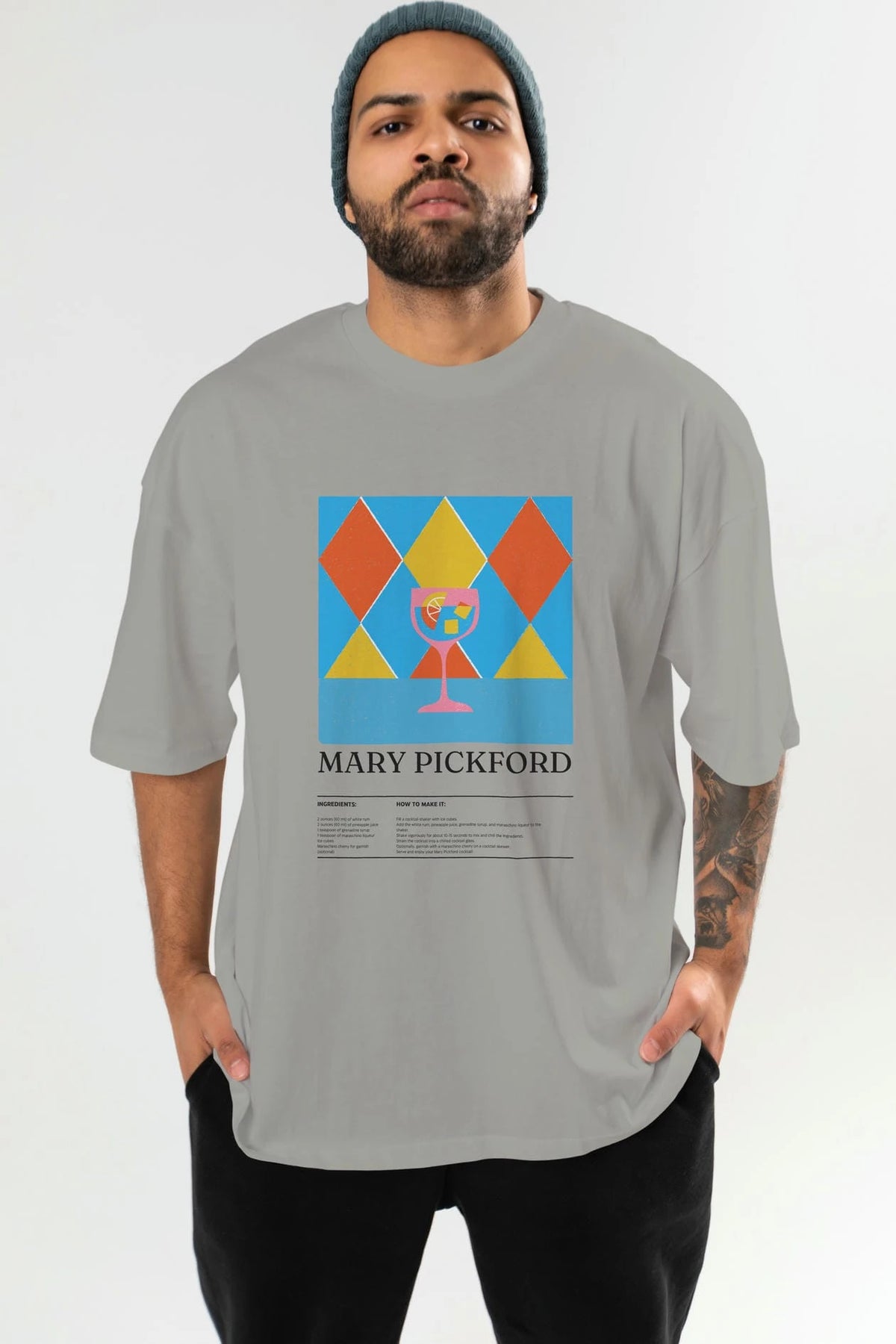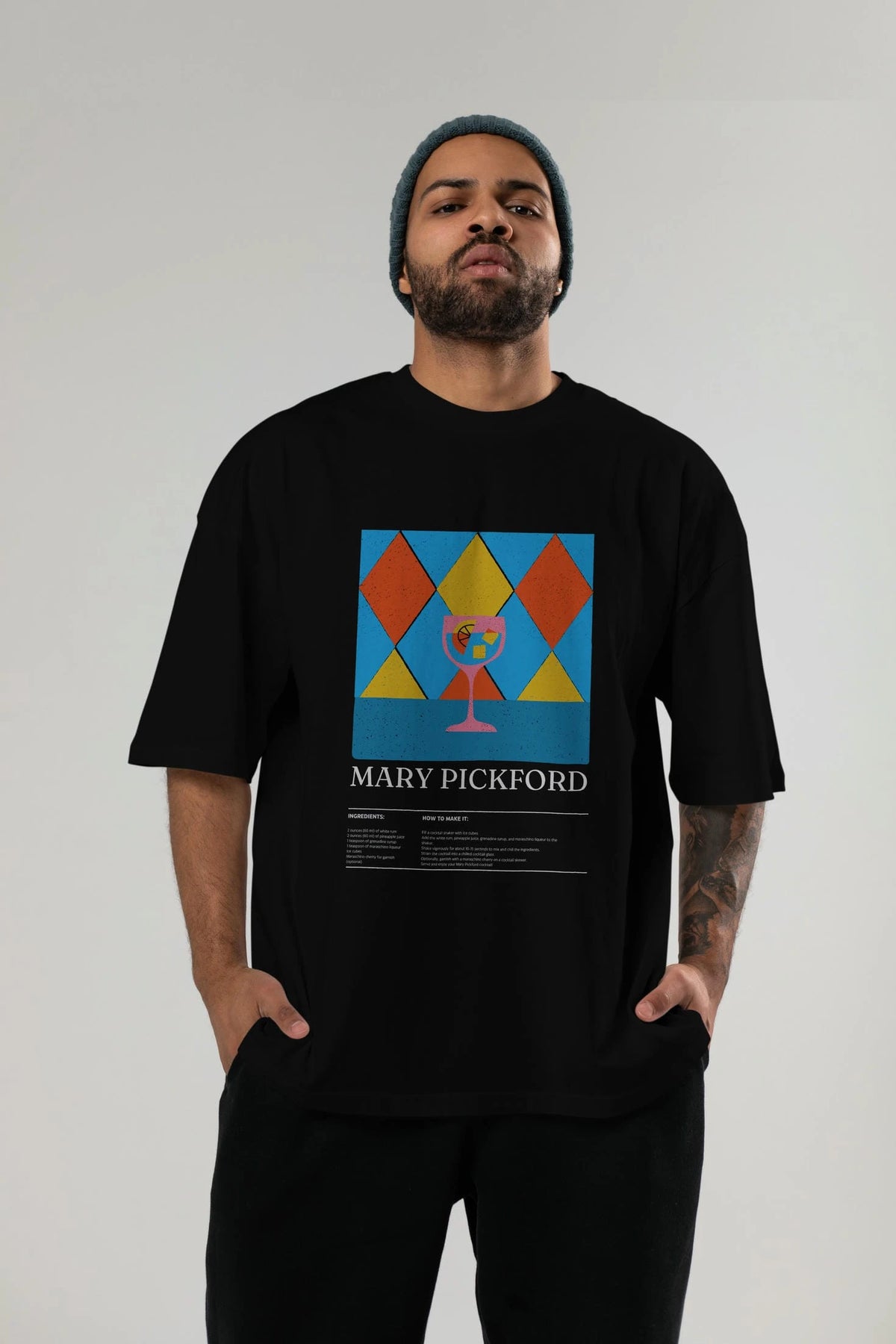Mary Pickford Kokteyl Ön Baskılı Oversize t-shirt Erkek Kadın %100 Pamuk Bisiklet Yaka tişort