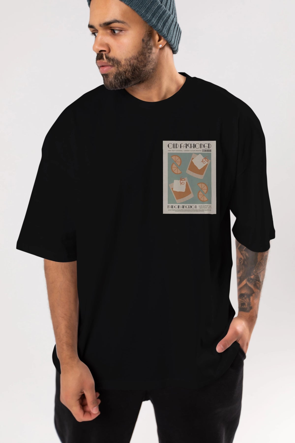 Old Fashioned 2 Ön Sol Baskılı Oversize t-shirt Erkek Kadın Unisex %100 Pamuk Bisiklet Yaka tişort