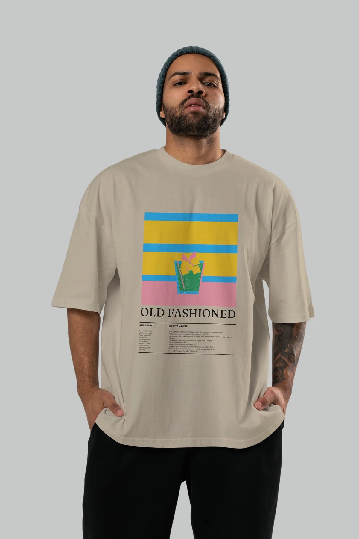 Old Fashioned Kokteyl Ön Baskılı Oversize t-shirt Erkek Kadın %100 Pamuk Bisiklet Yaka tişort