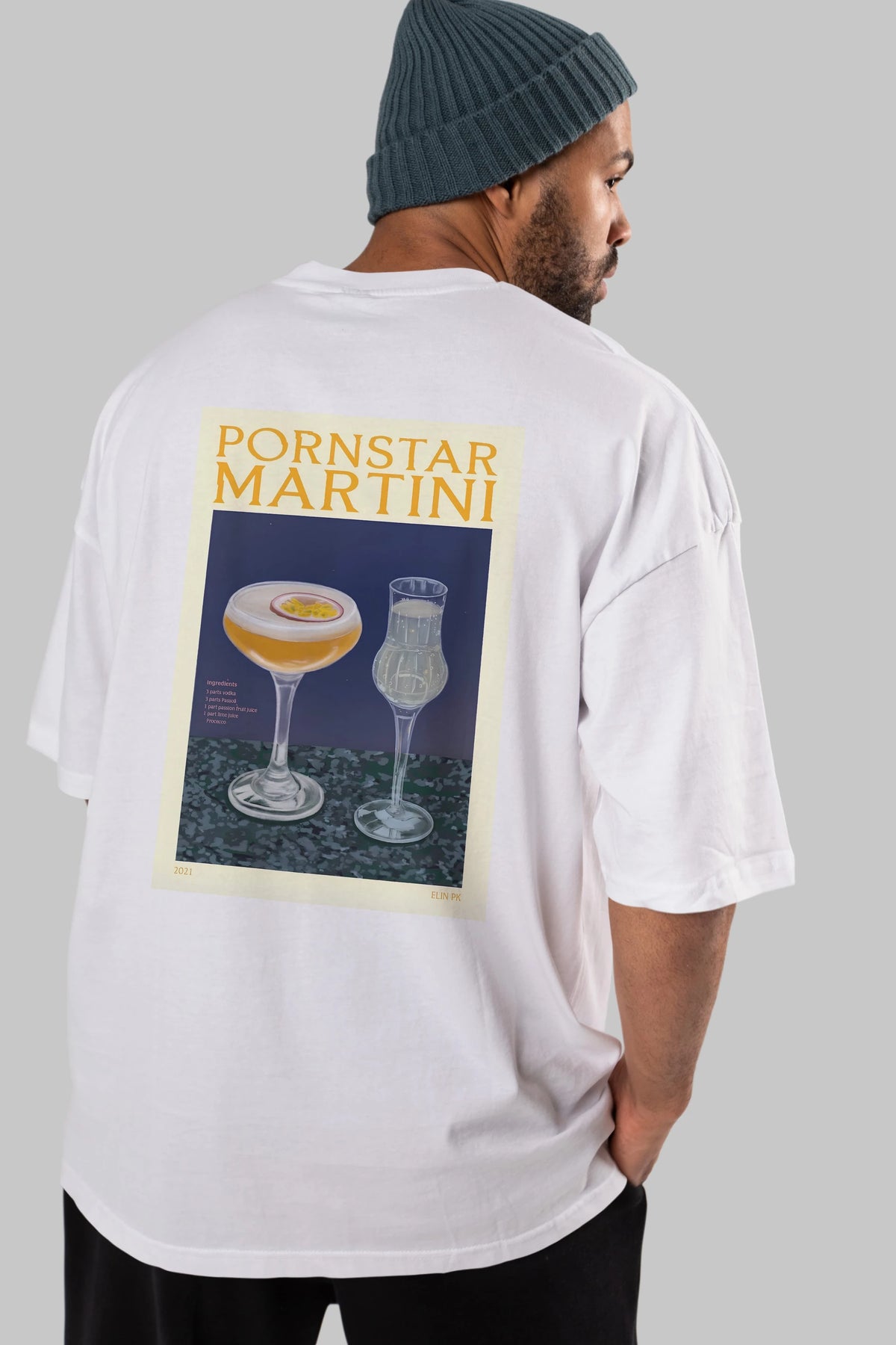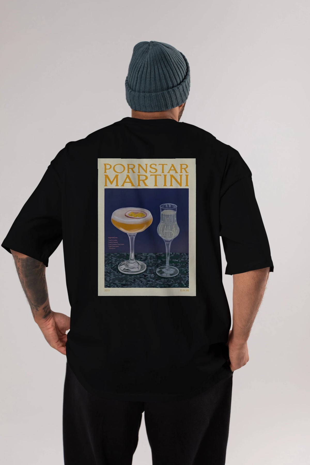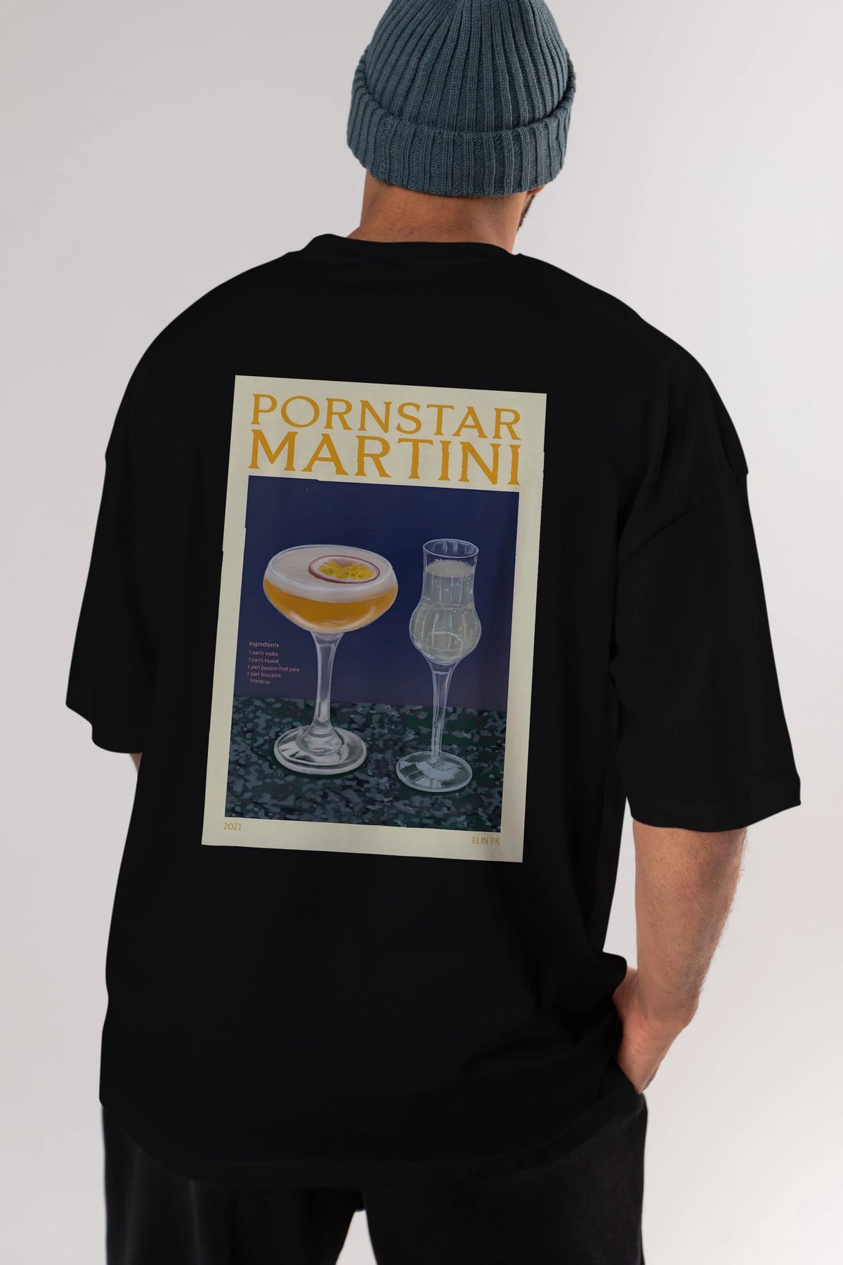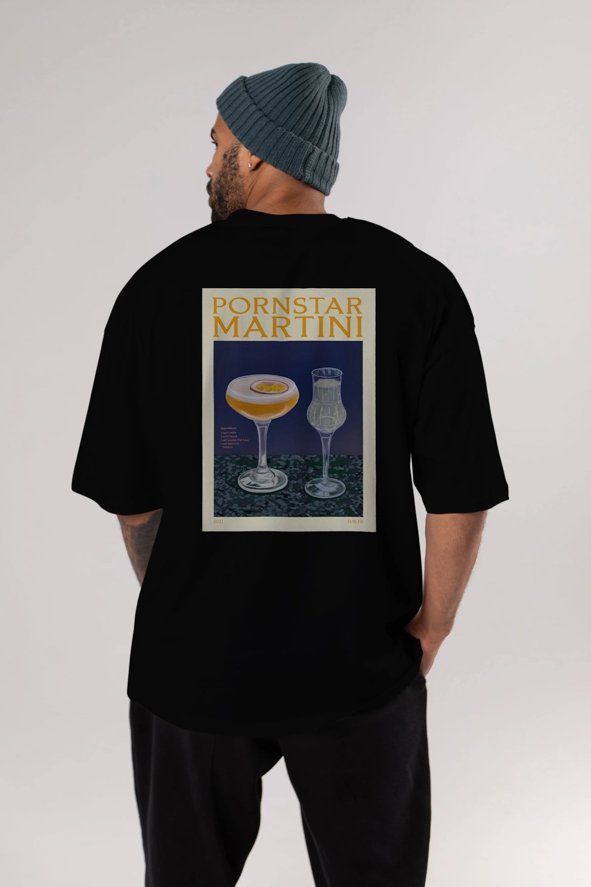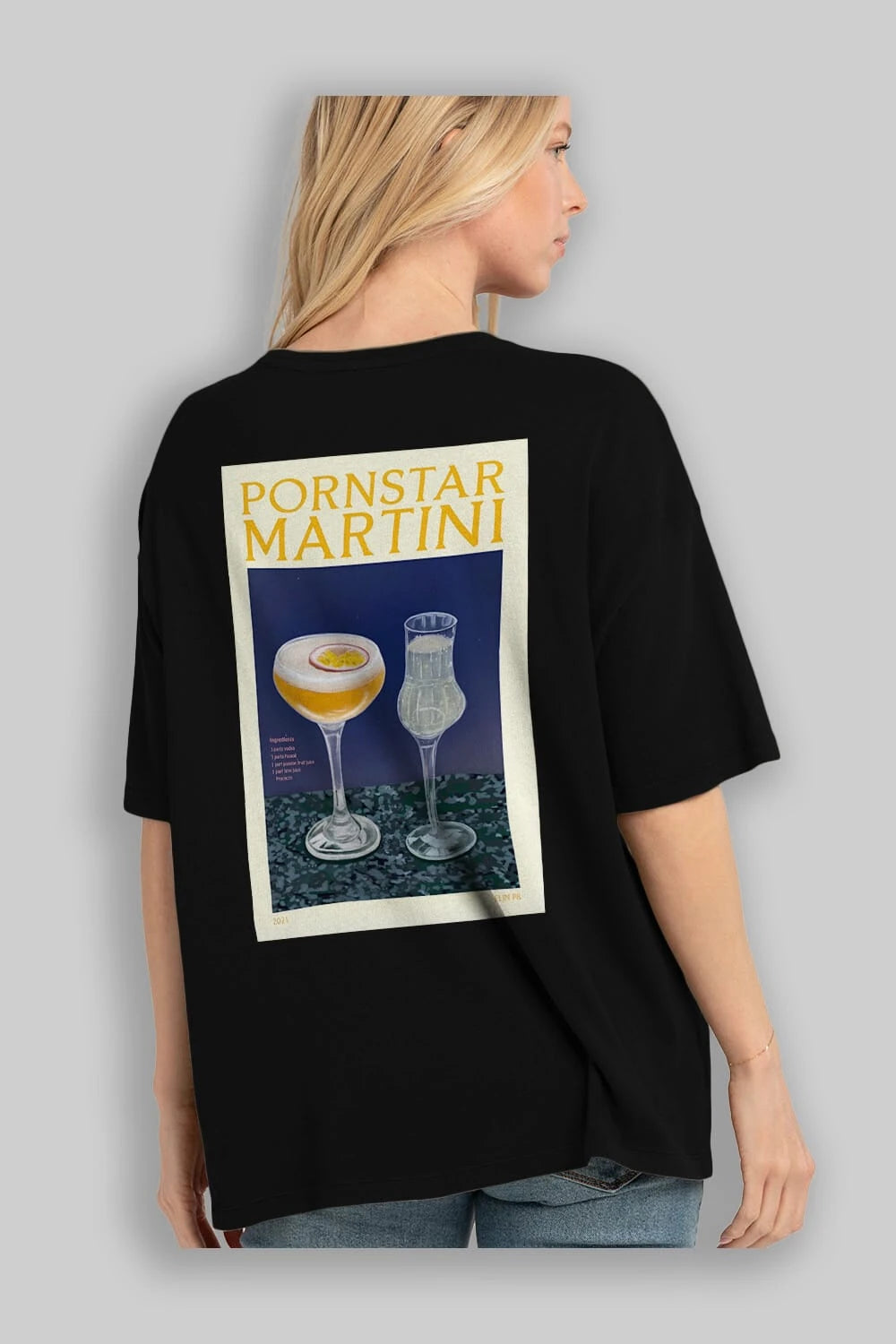 P.rnstar Martini Arka Baskılı Oversize t-shirt Erkek Kadın Unisex %100 Pamuk Bisiklet Yaka tişort