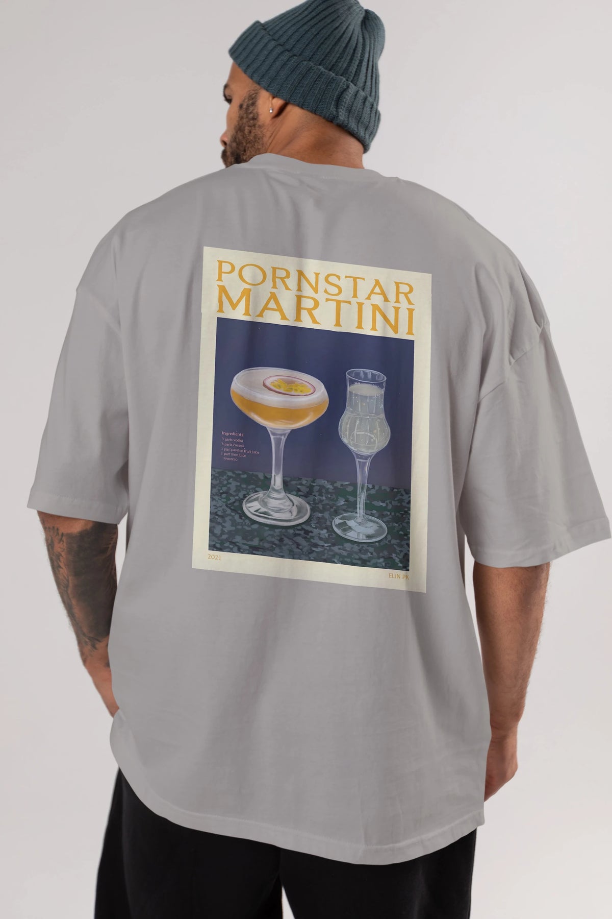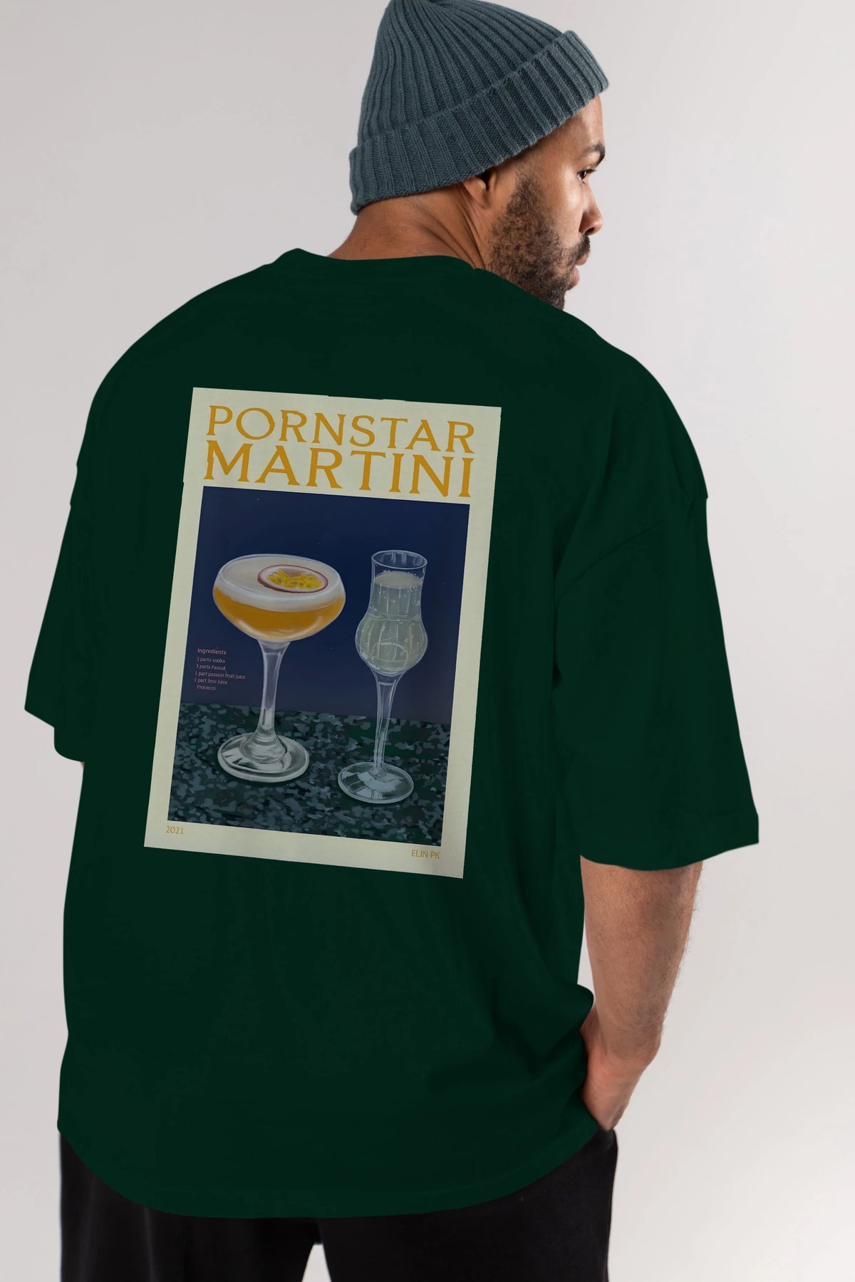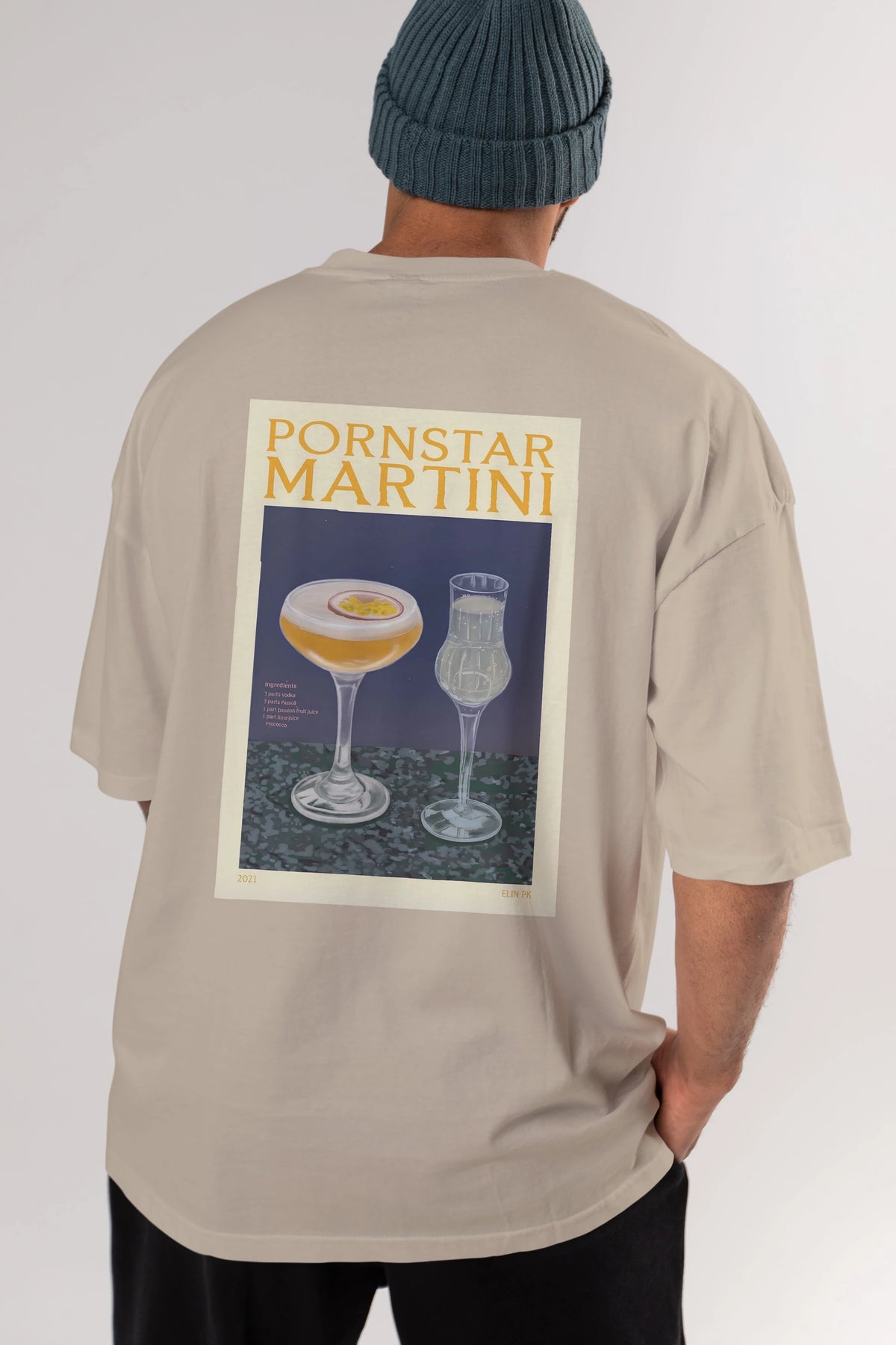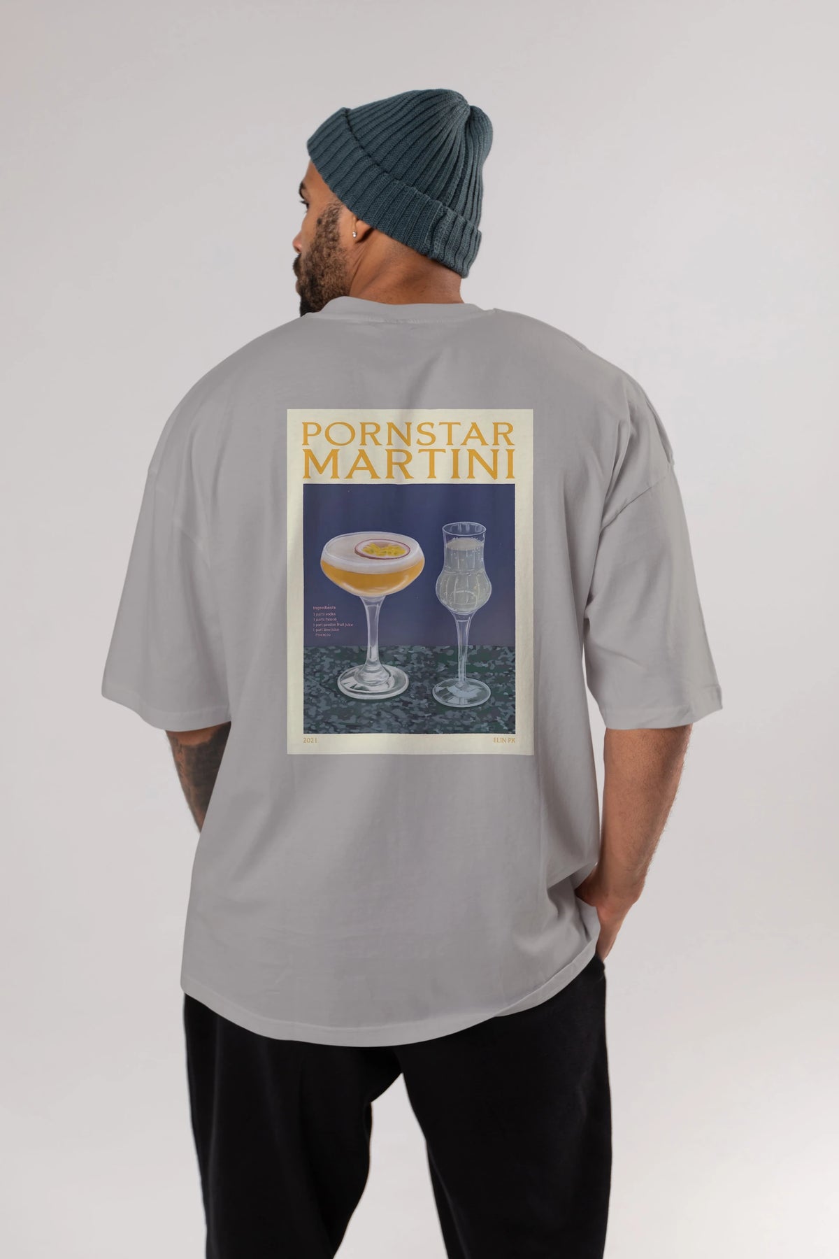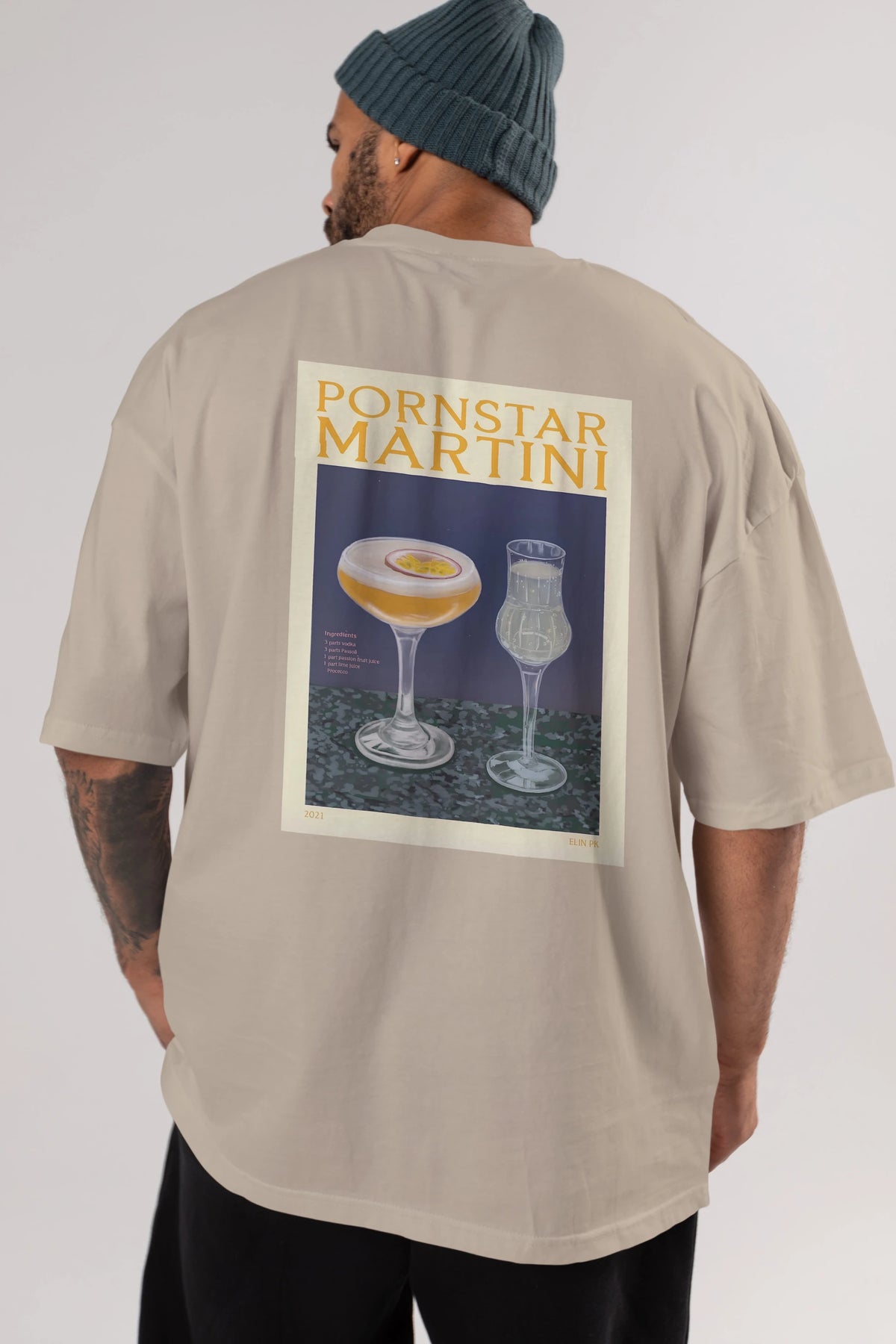 P.rnstar Martini Arka Baskılı Oversize t-shirt Erkek Kadın Unisex %100 Pamuk Bisiklet Yaka tişort