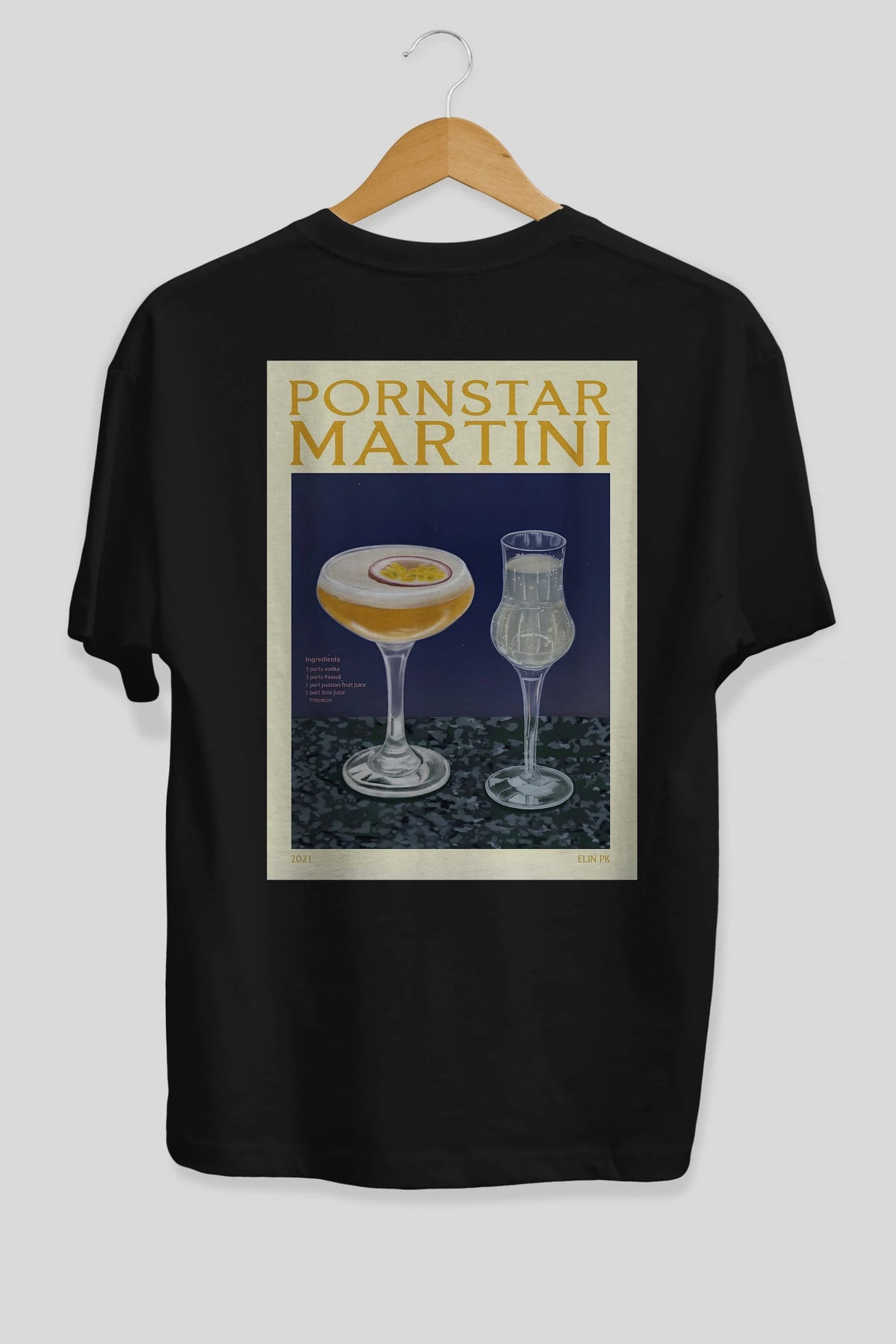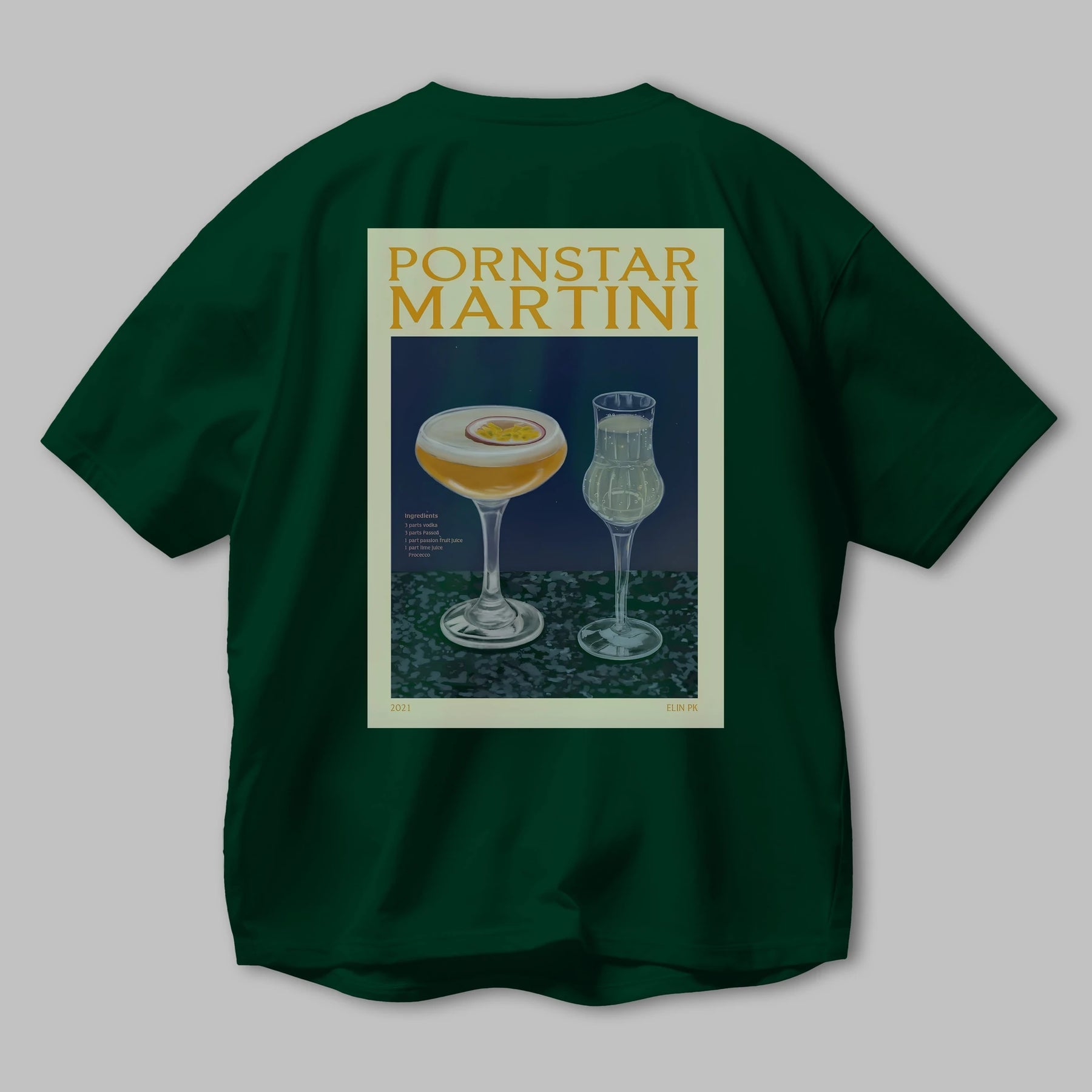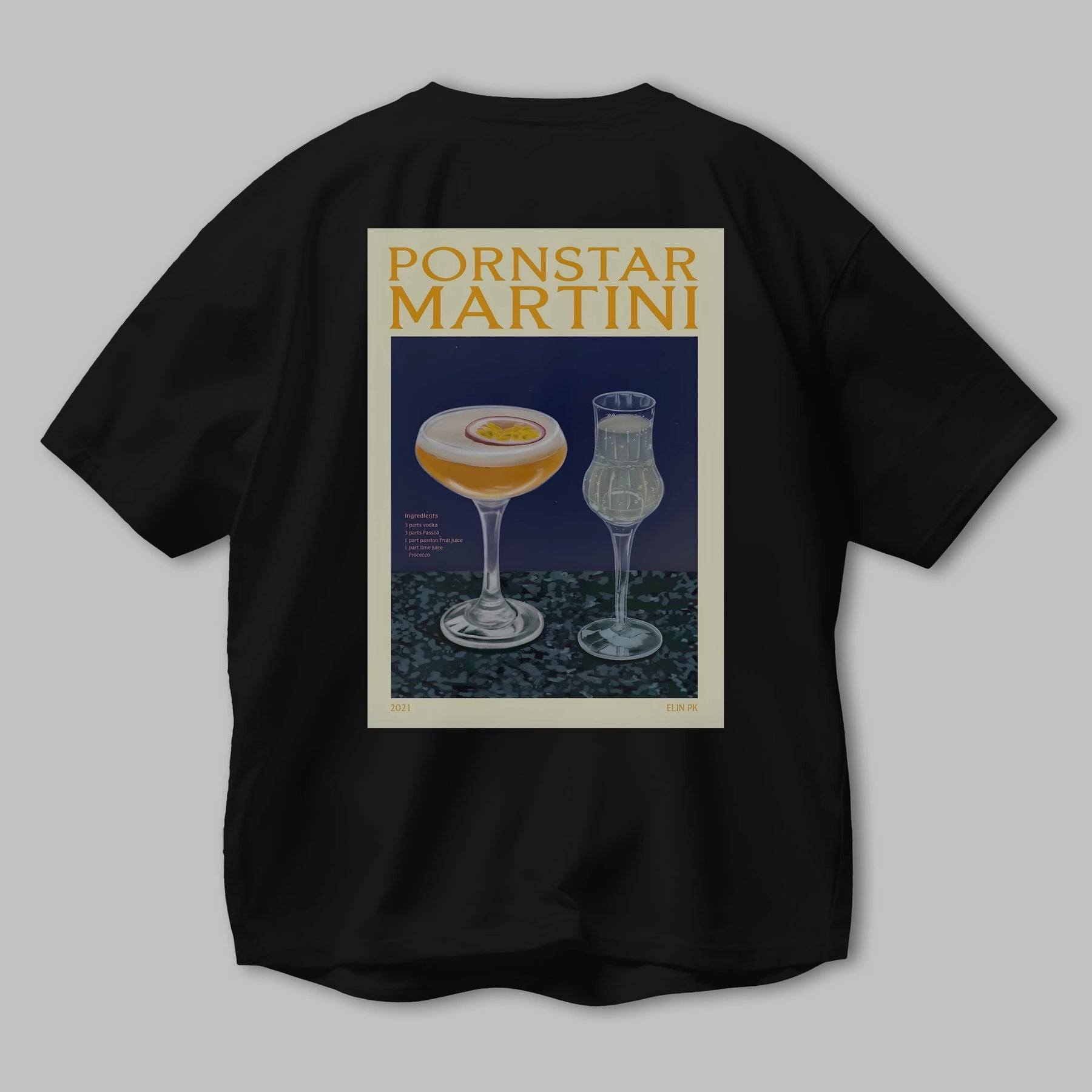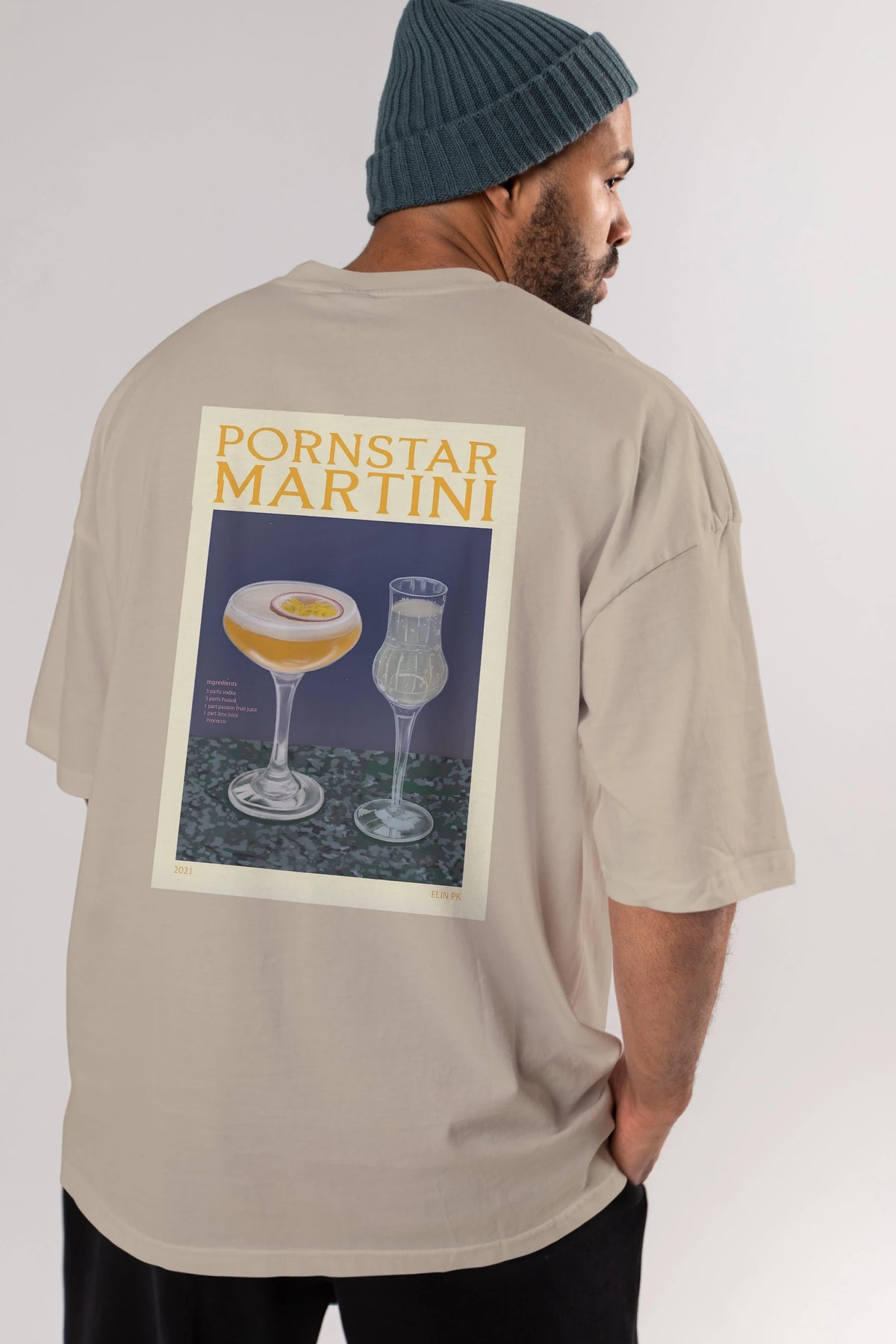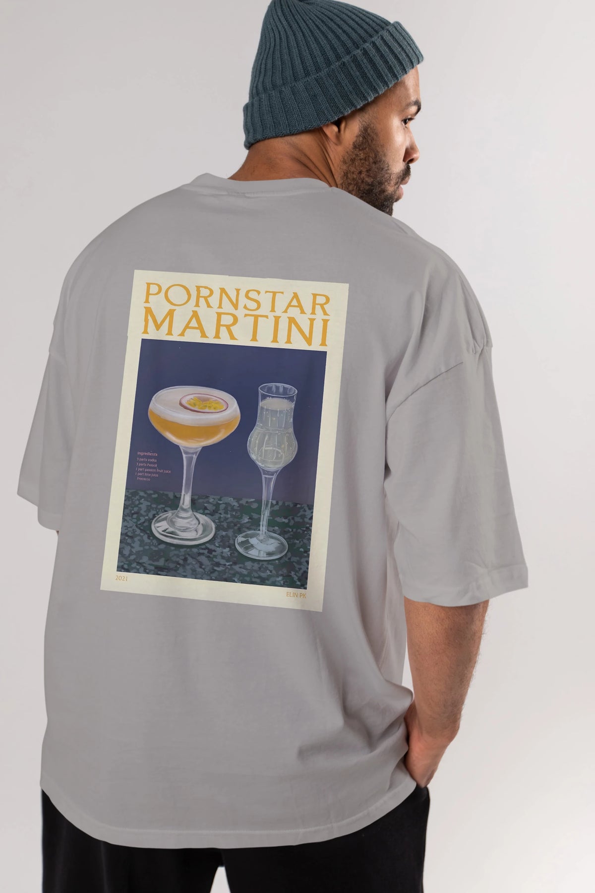 P.rnstar Martini Arka Baskılı Oversize t-shirt Erkek Kadın Unisex %100 Pamuk Bisiklet Yaka tişort