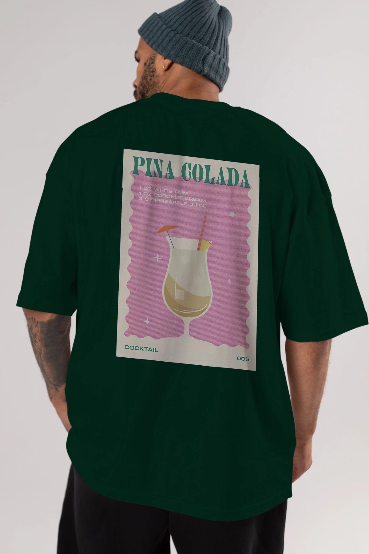 Pina Colada 3 Arka Baskılı Oversize t-shirt Erkek Kadın Unisex %100 Pamuk Bisiklet Yaka tişort