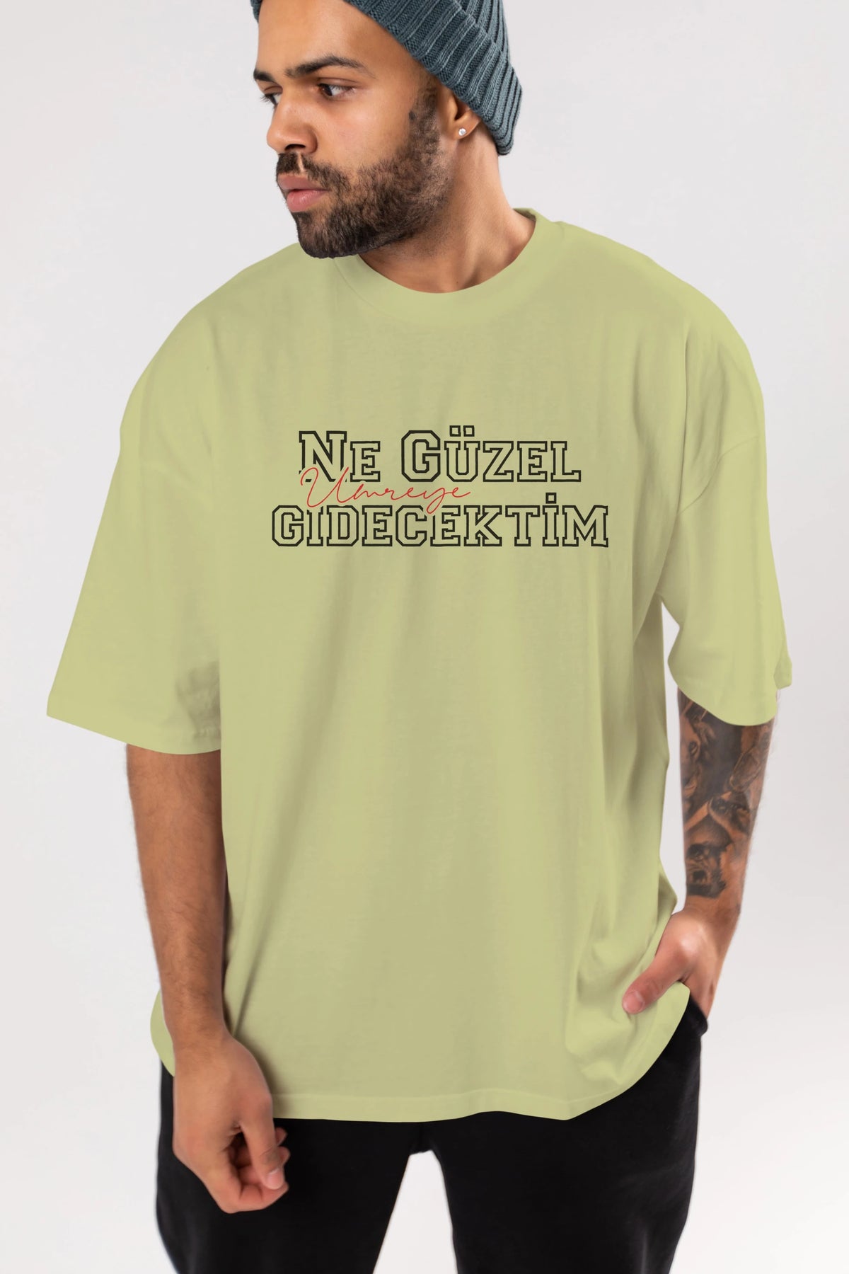 Ne Güzel Umreye Gidecektim Ön Baskılı Oversize t-shirt %100 pamuk Erkek Kadın Unisex