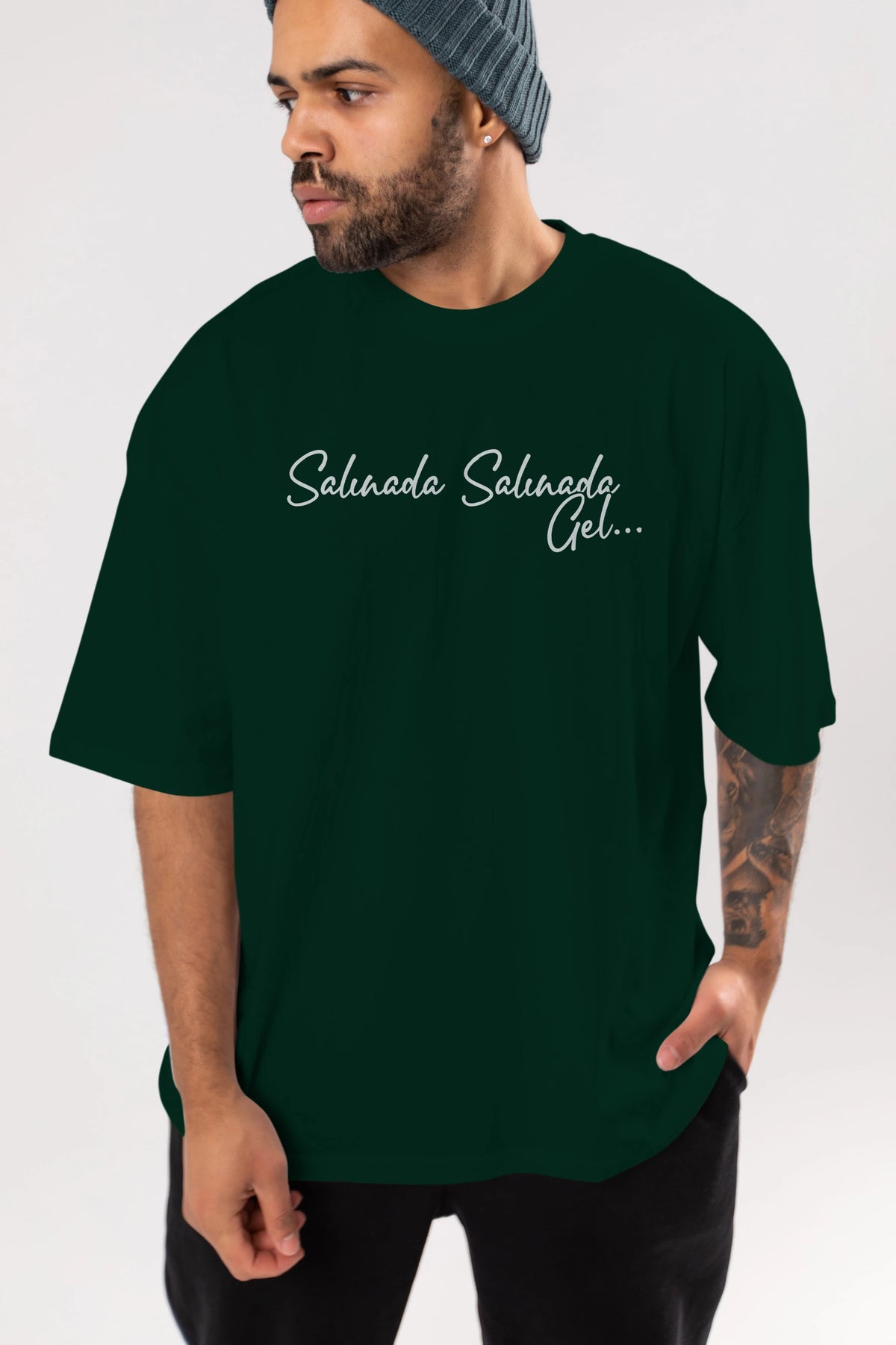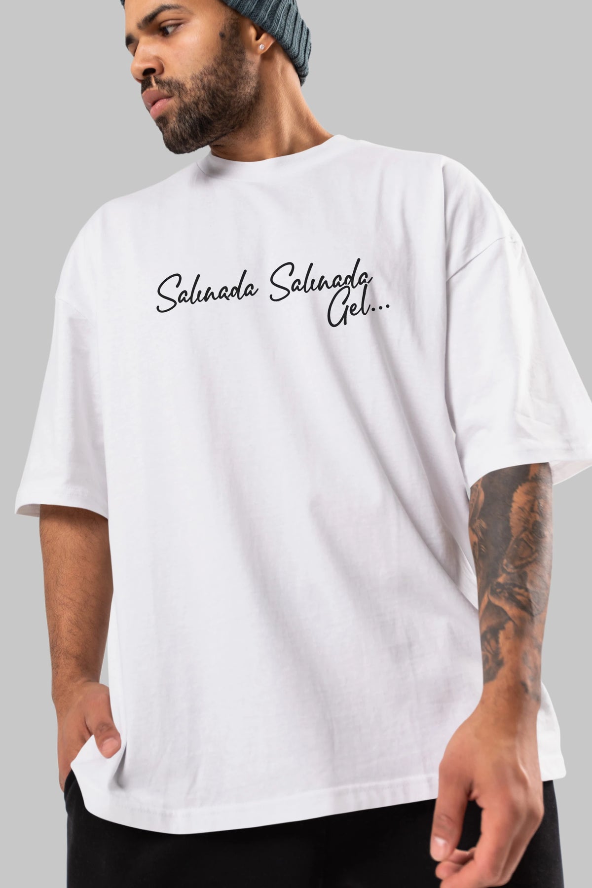 Salınada Salına Gel Ön Baskılı Oversize t-shirt %100 pamuk Erkek Kadın Unisex