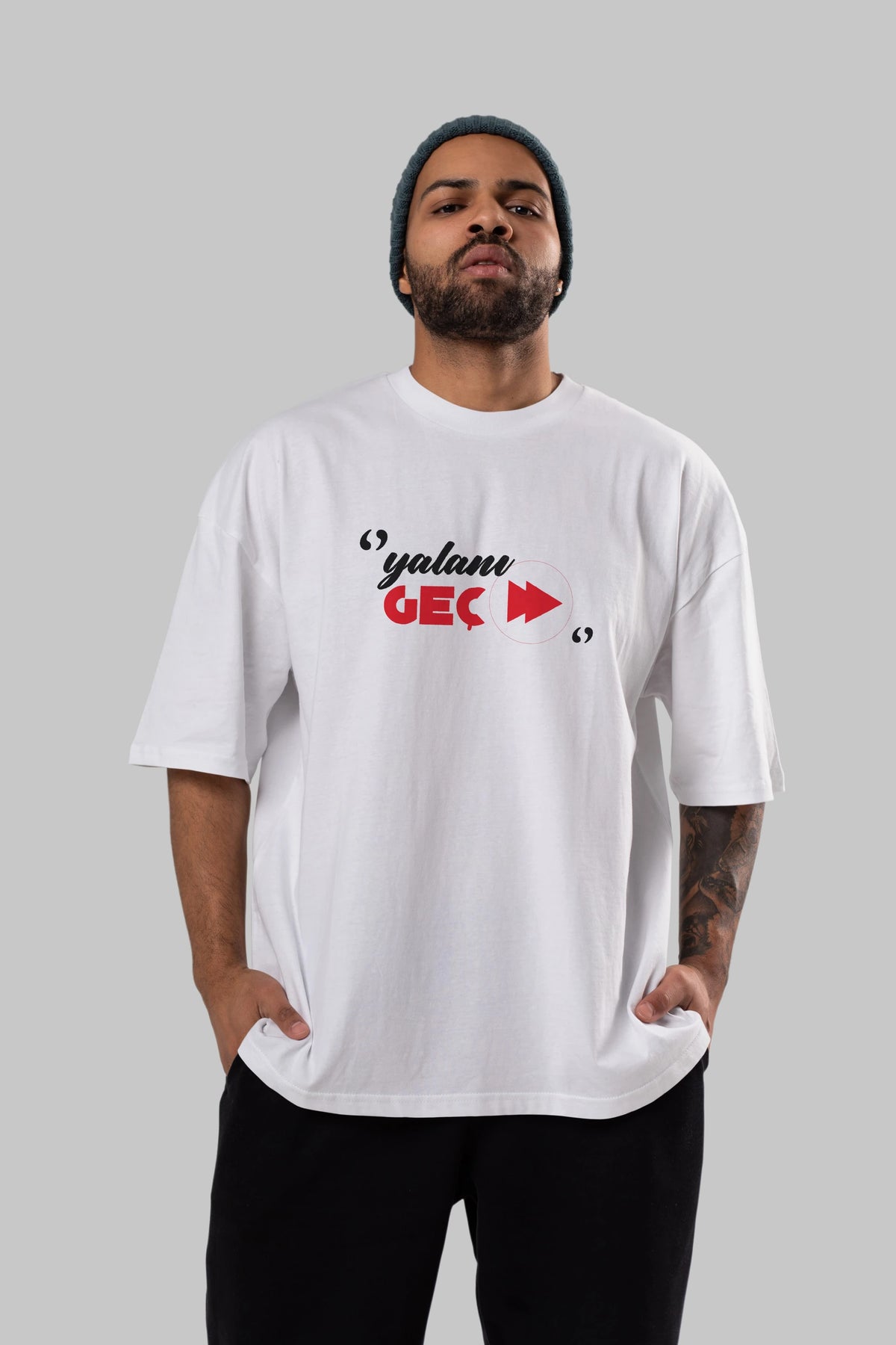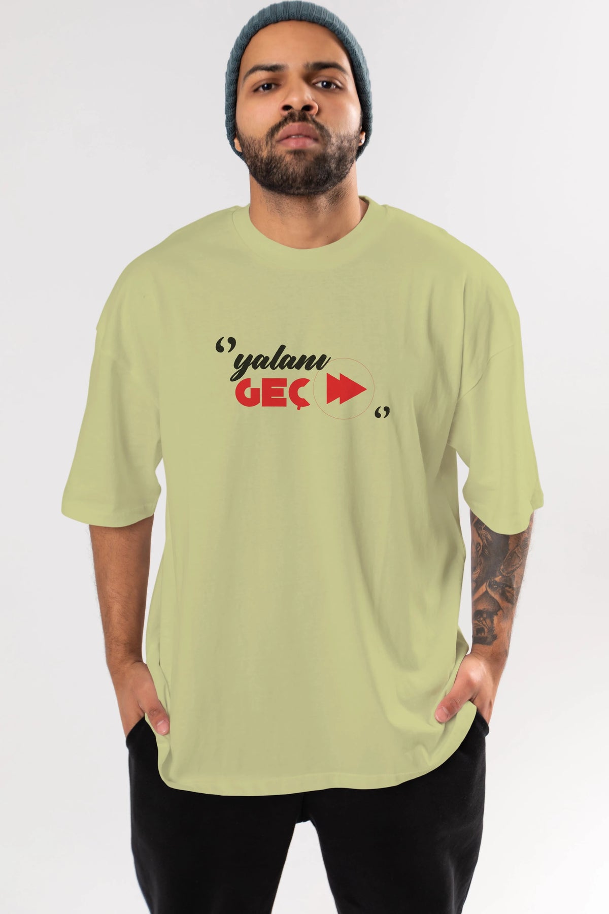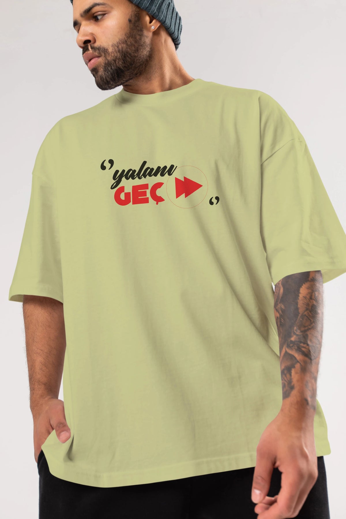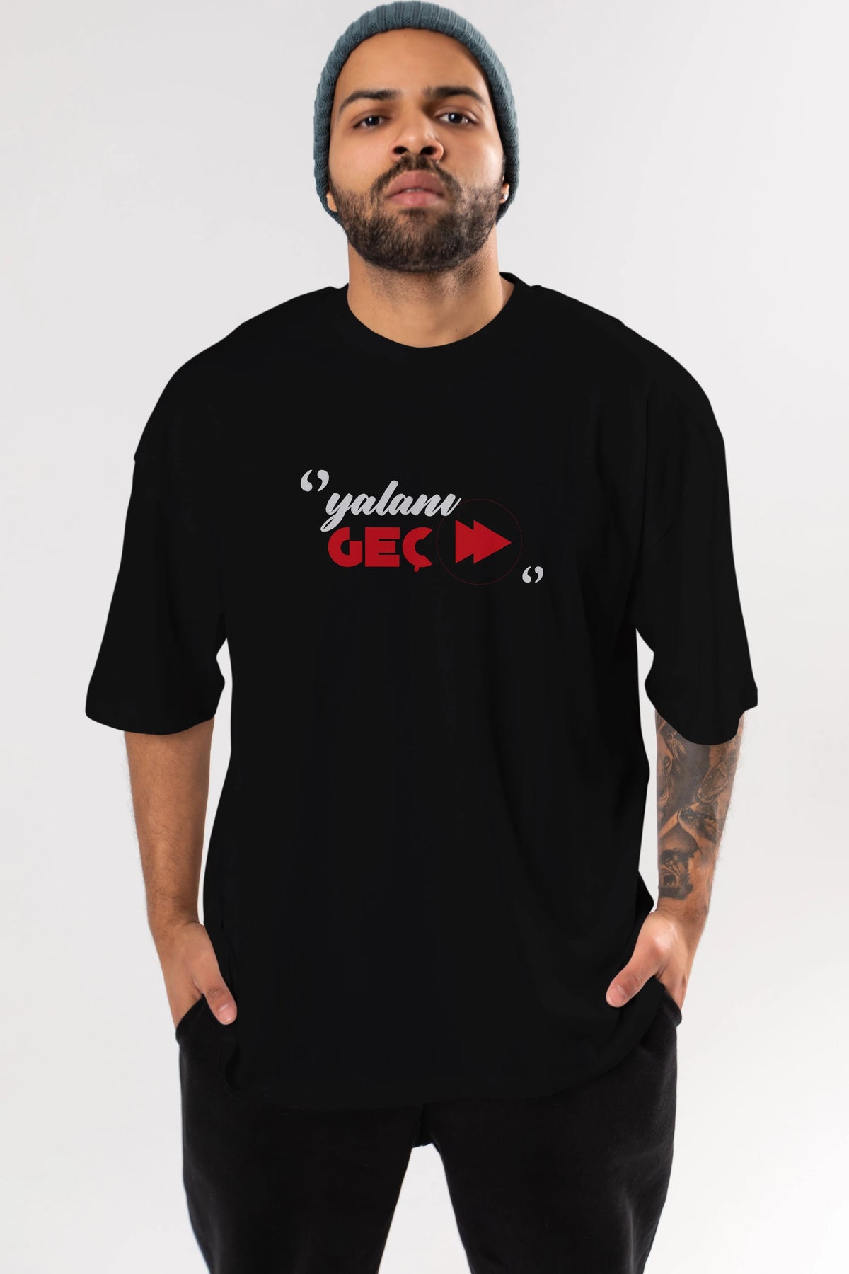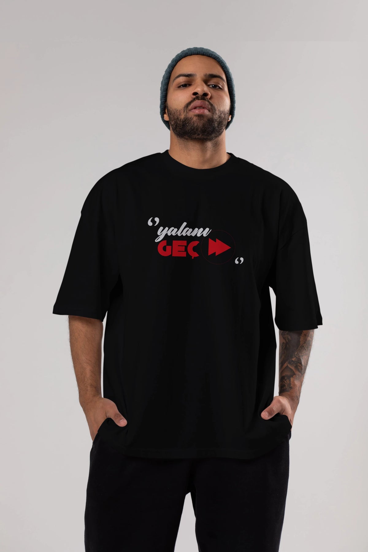 Yalanı Geç Ön Baskılı Oversize t-shirt %100 pamuk Erkek Kadın Unisex