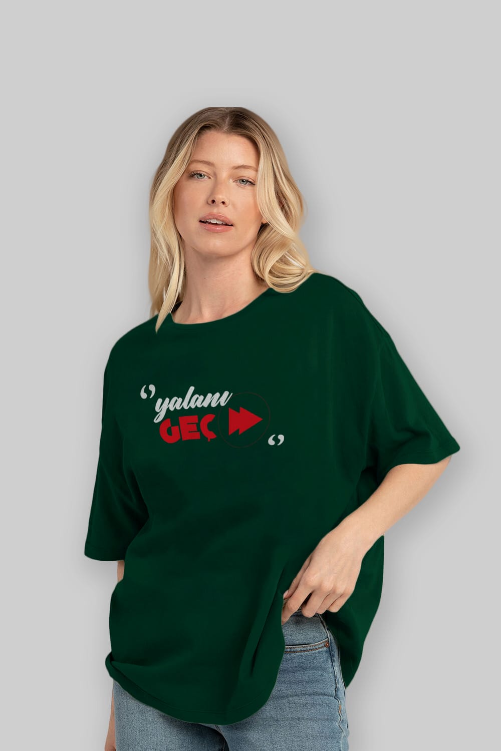 Hem erkekler hem de kadınlar için uygun, taze, modern bir baskıya sahip baskılı oversize t-shirt.