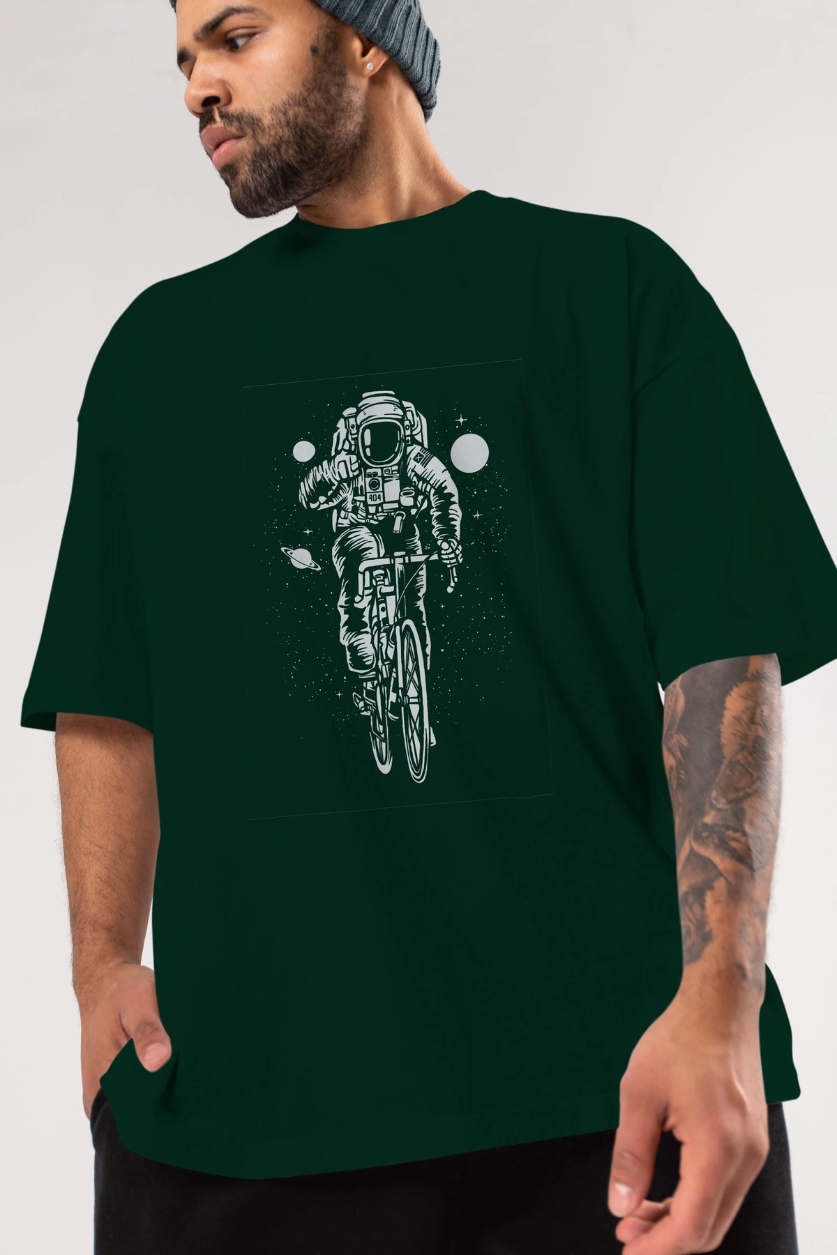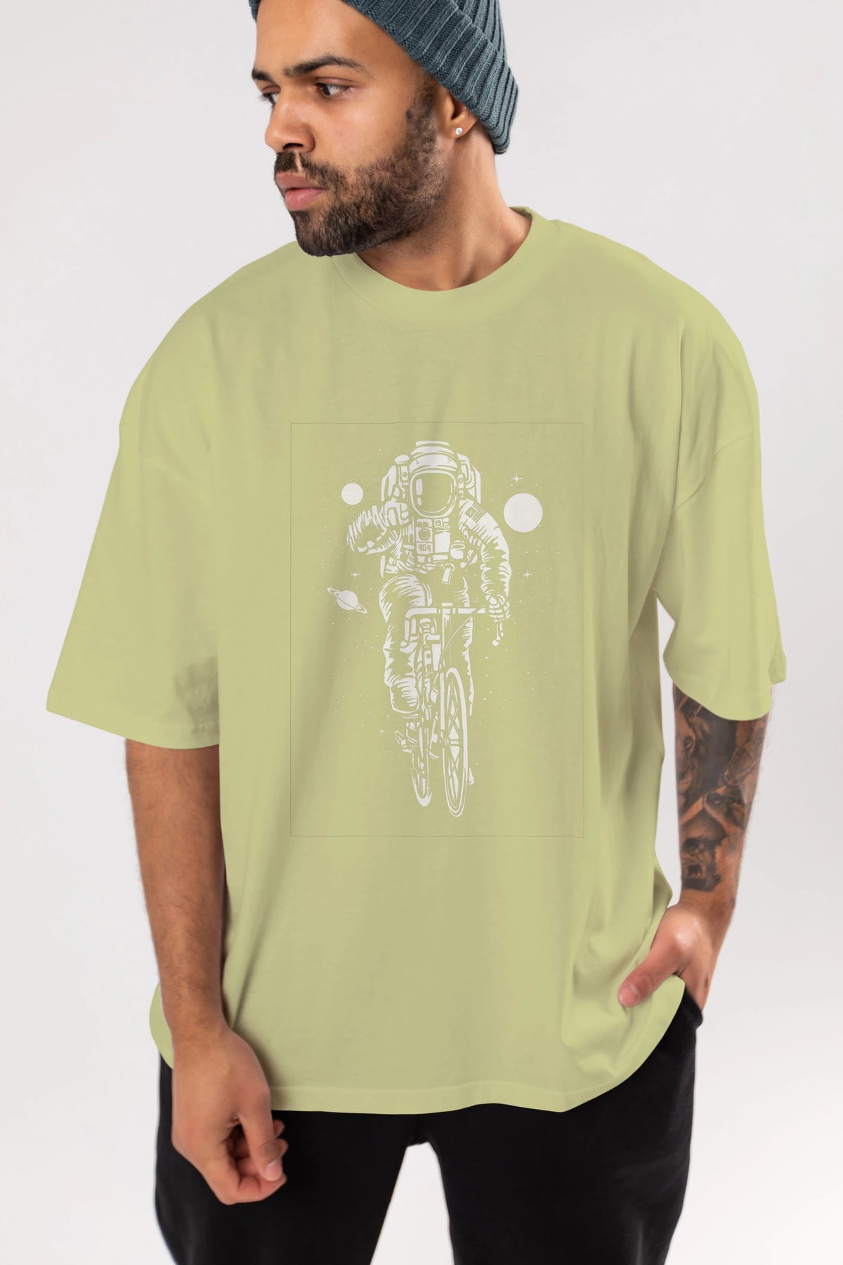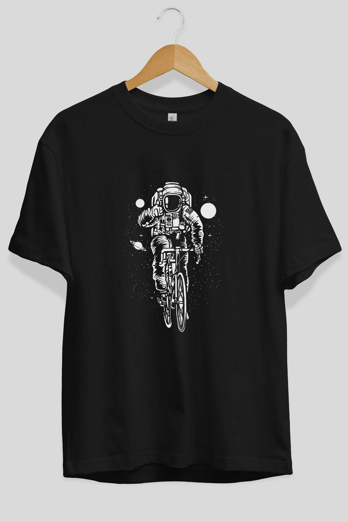 Astronaut Bicycle Ön Baskılı Oversize t-shirt Erkek Kadın Unisex %100 Pamuk tişort